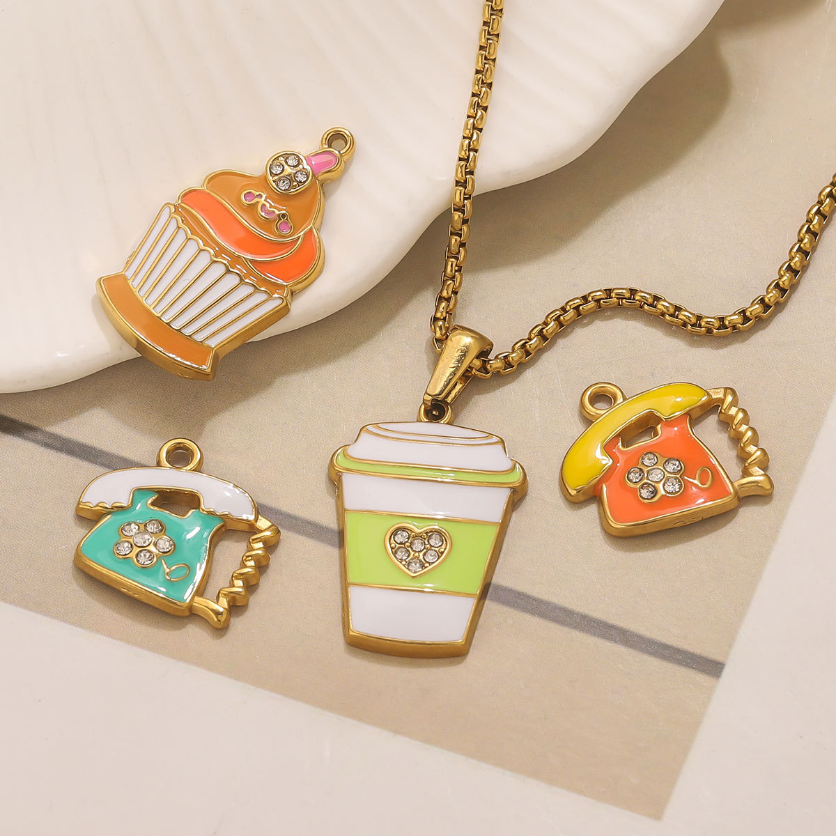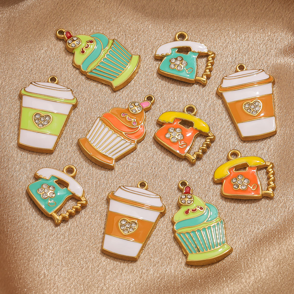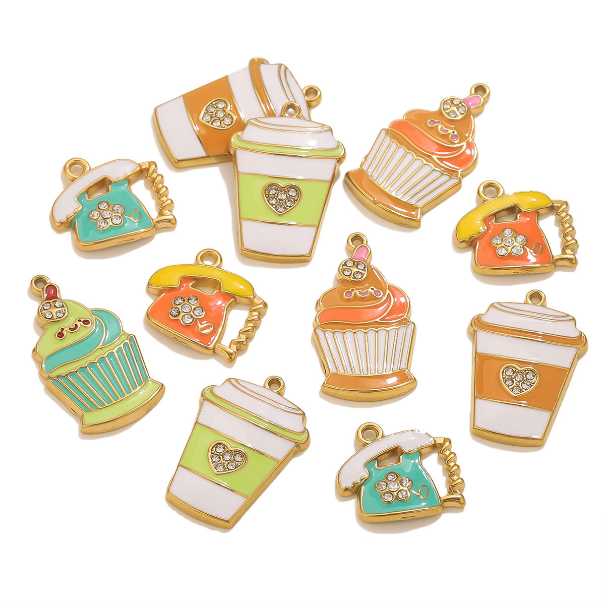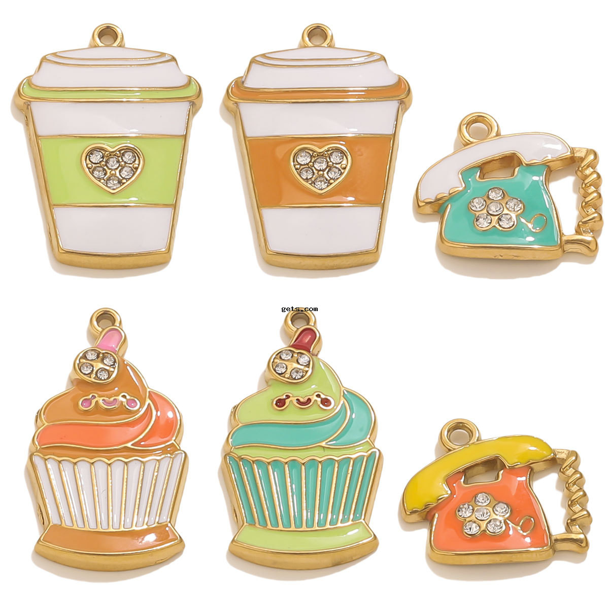 Colgantes de Acero Inoxidable, acero inoxidable 304, chapado en color dorado, Bricolaje & diferentes estilos para la opción & esmalte & con diamantes de imitación, más colores para la opción, 3PCs/Bolsa, Vendido por Bolsa
