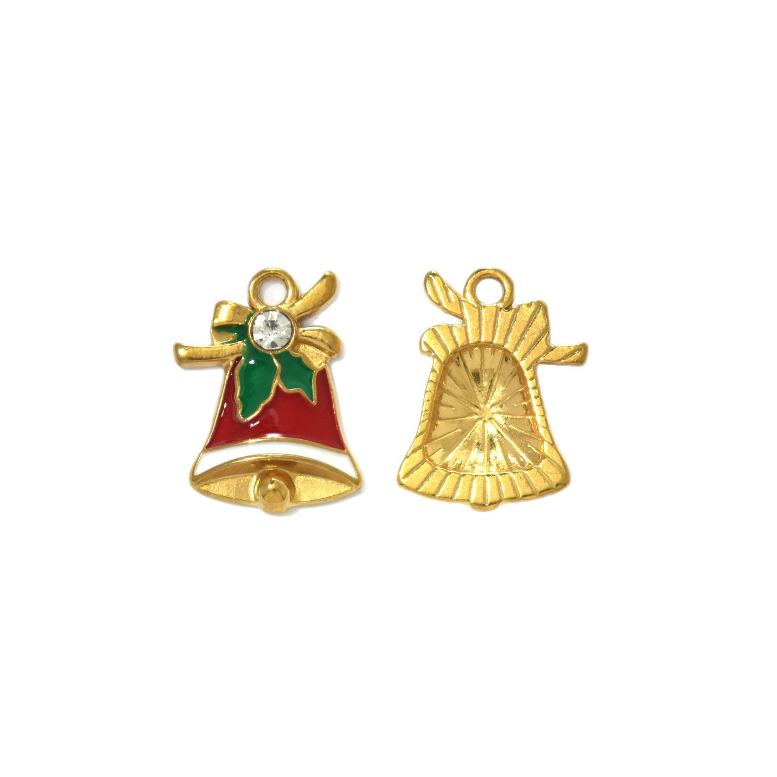 Colgantes de Acero Inoxidable, acero inoxidable 304, chapado en color dorado, Diseño de Navidad & Bricolaje & esmalte & con diamantes de imitación, más colores para la opción, 10PCs/Bolsa, Vendido por Bolsa