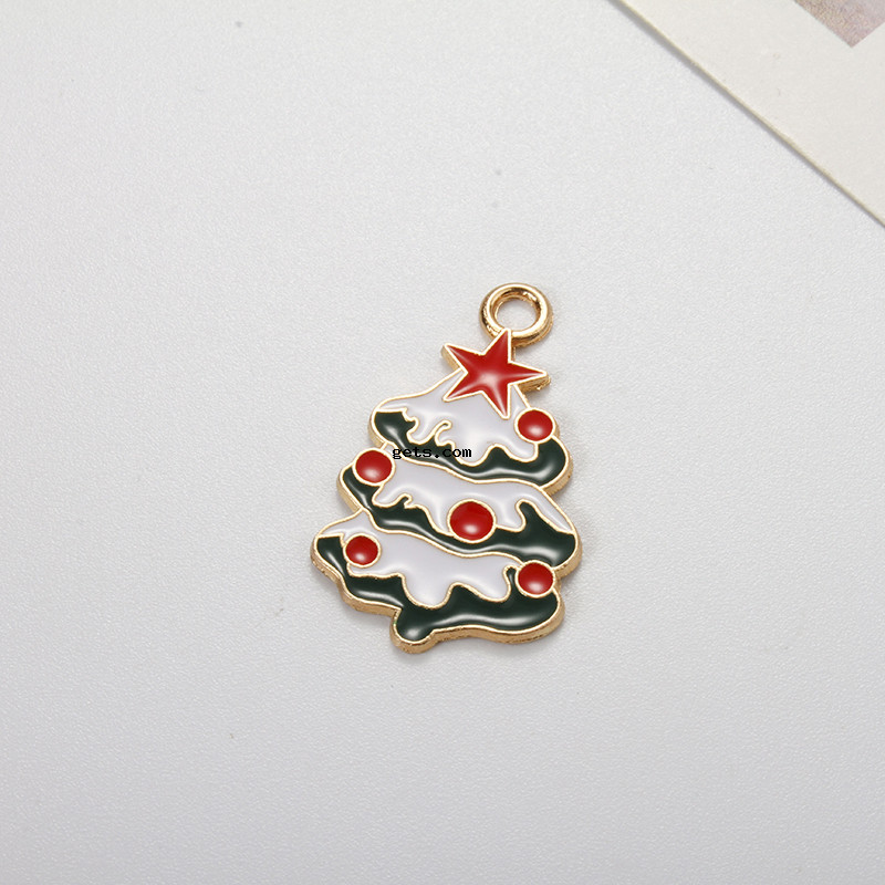 Colgantes de Aleación de Zinc Estilo Navidad, Árbol de Navidad, chapado en color dorado, Bricolaje & esmalte, color mixto, 29.50x17.20x1.15mm, diámetro interior:aproximado 2.26mm, Vendido por UD
