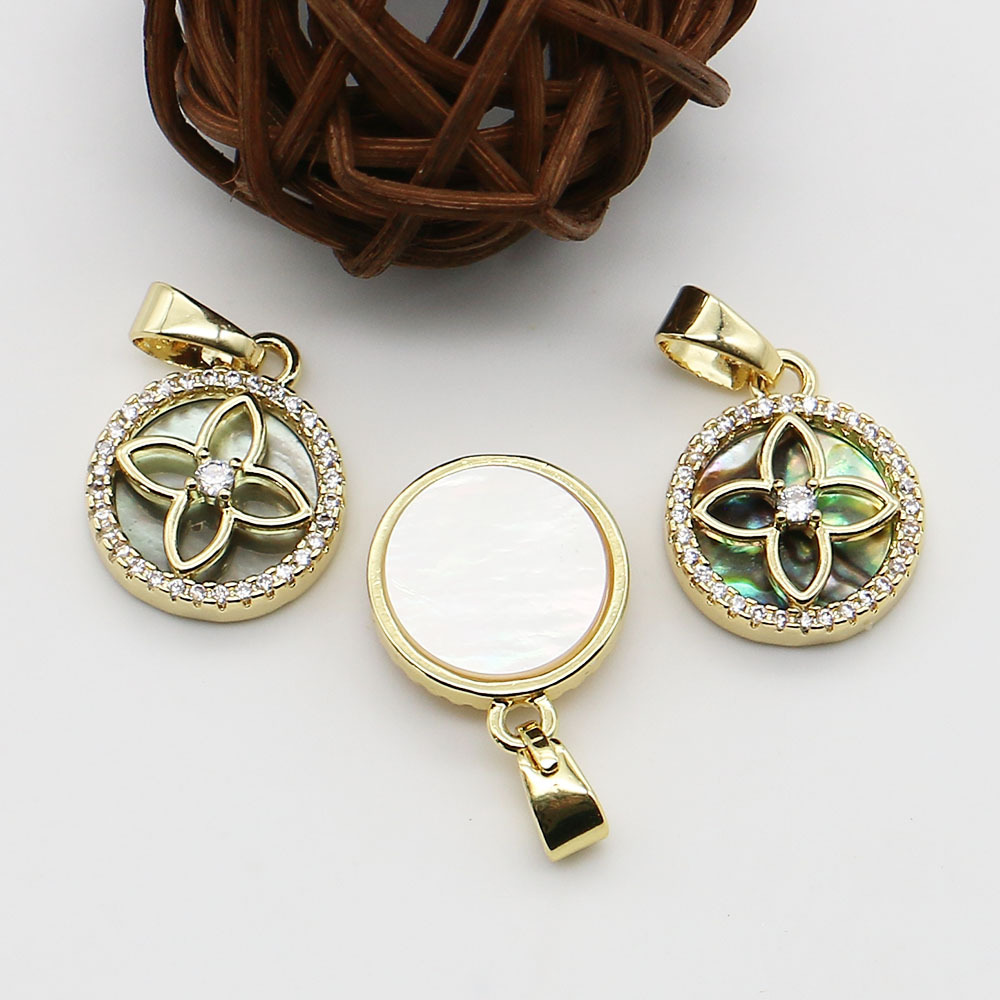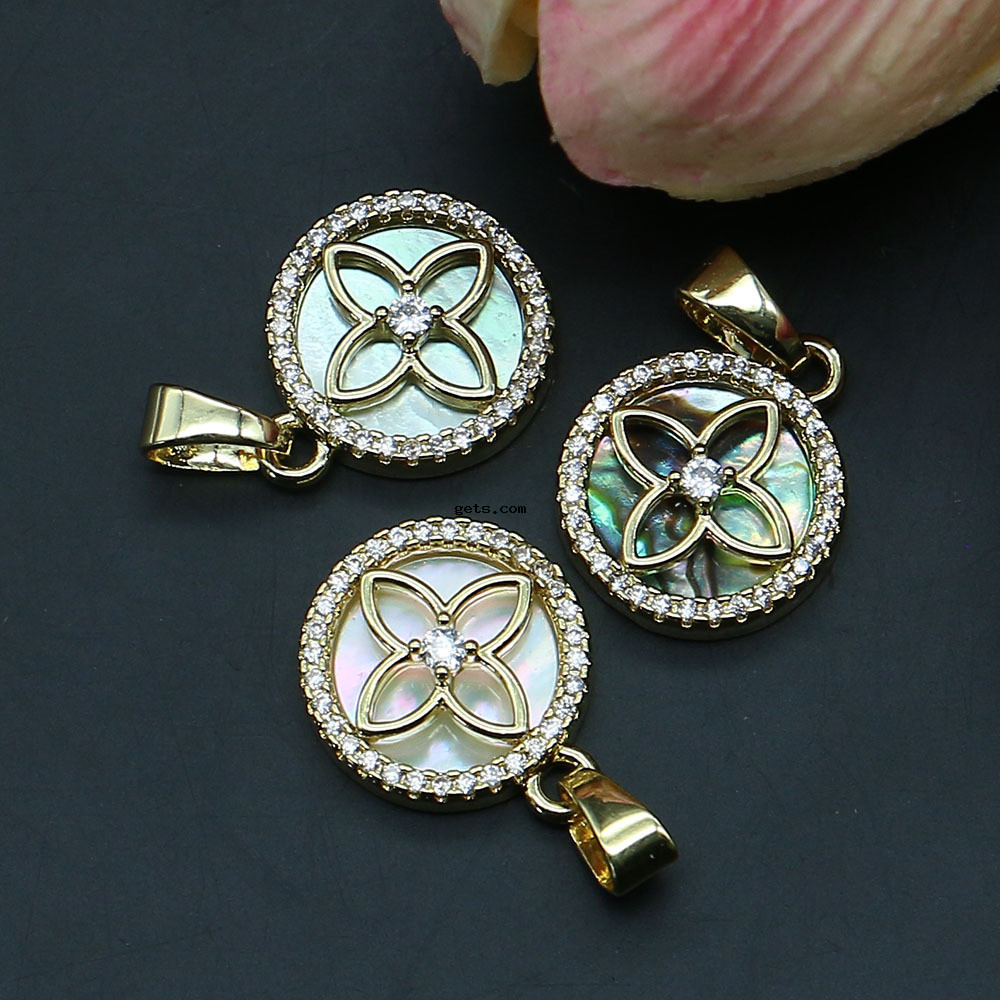 Colgantes de Nácar, con metal, Redondo aplanado, chapado en color dorado, Bricolaje & diferentes estilos para la opción & con diamantes de imitación, 13x16mm, Vendido por UD