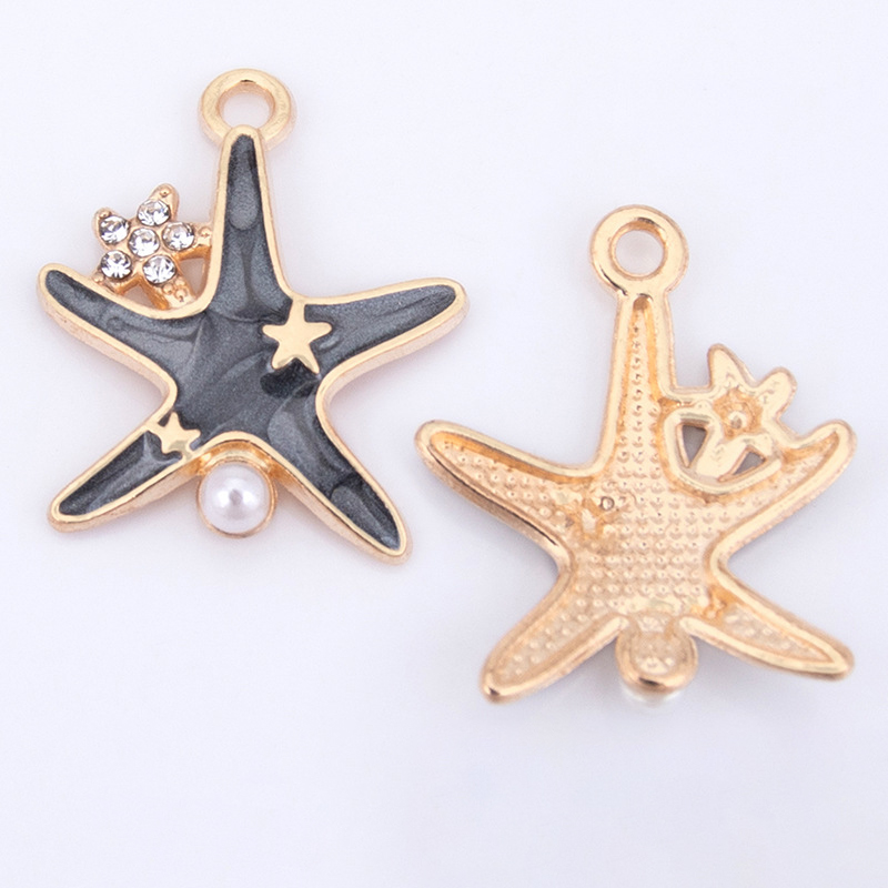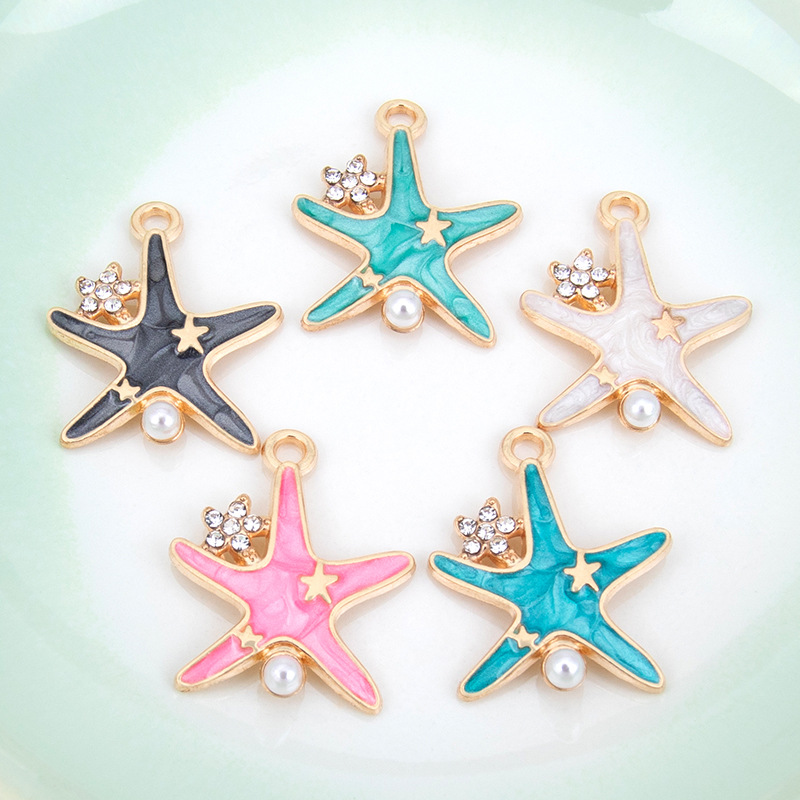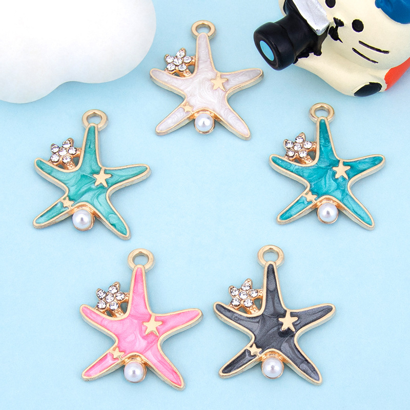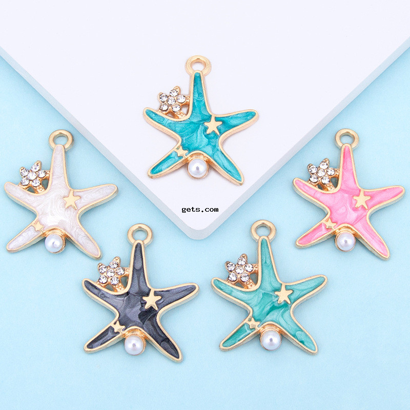 Colgantes de esmalte de la aleación del cinc, aleación de zinc, con Perlas plásticas, Estrella de Mar, chapado en color dorado, Bricolaje & micro arcilla de zirconia cúbica, más colores para la opción, 19x23mm, Vendido por UD