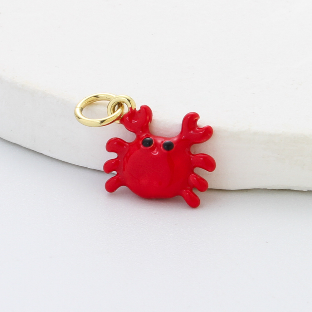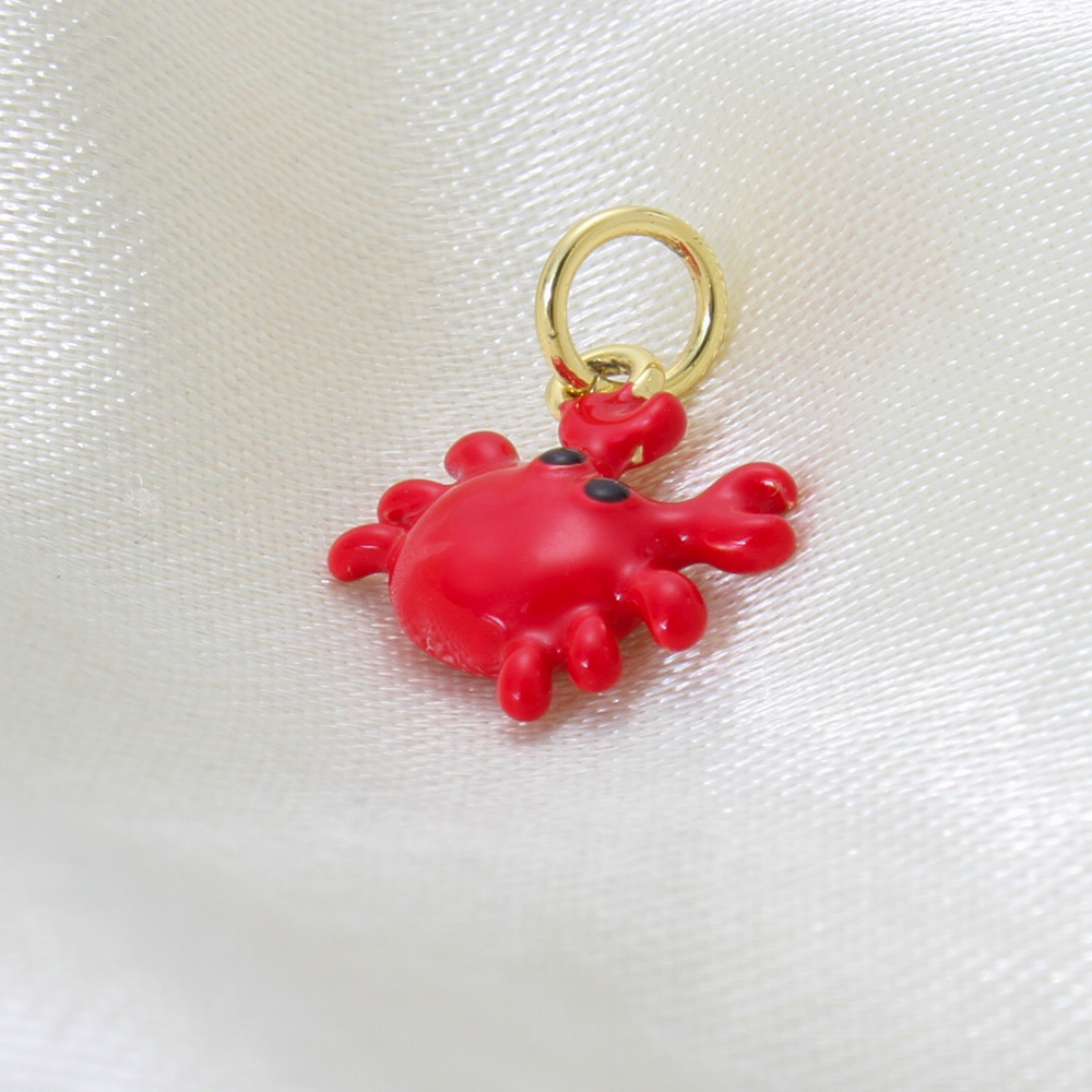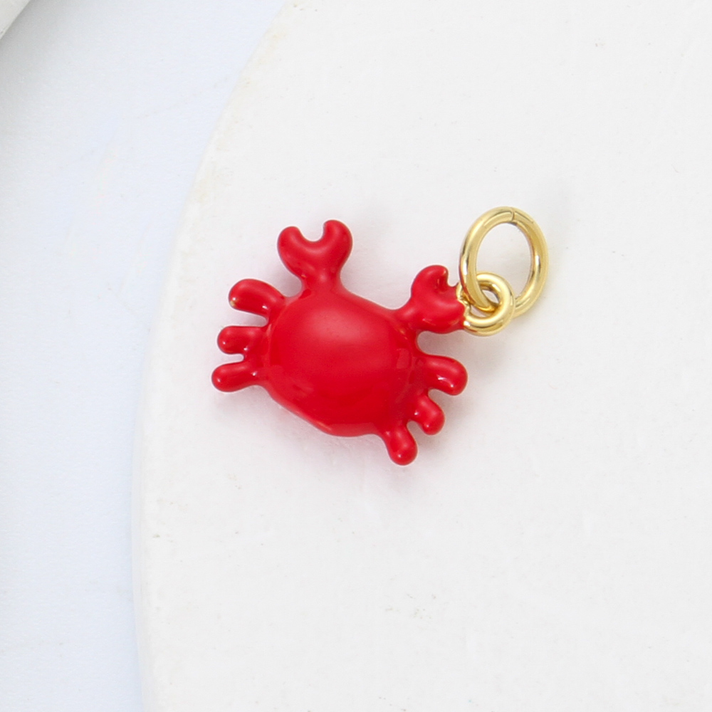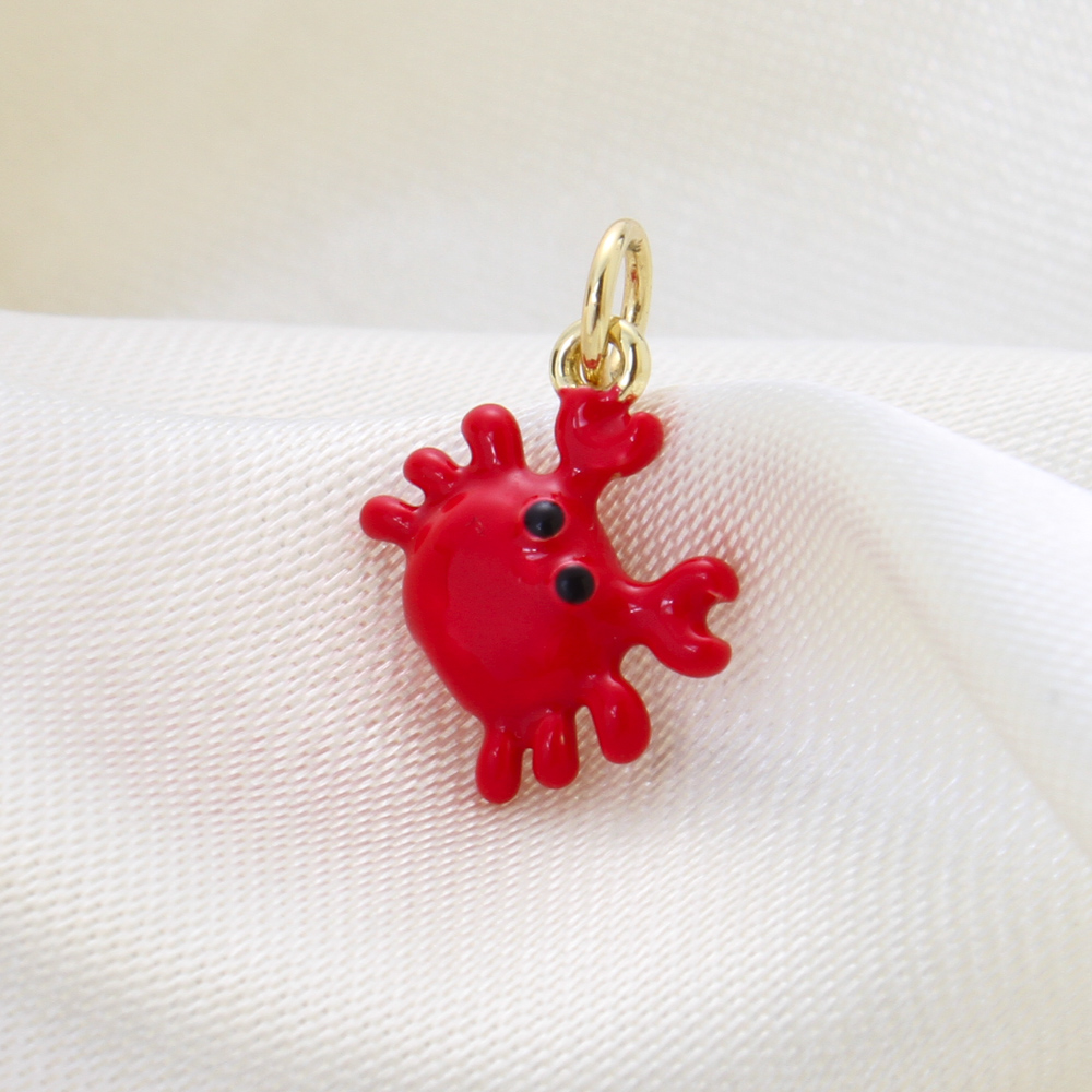 Colgantes de la joyería de cobre amarillo, metal, Cangrejo, chapado, Bricolaje & esmalte, Rojo, libre de níquel, plomo & cadmio, 10x12.40x3.40mm, Vendido por UD