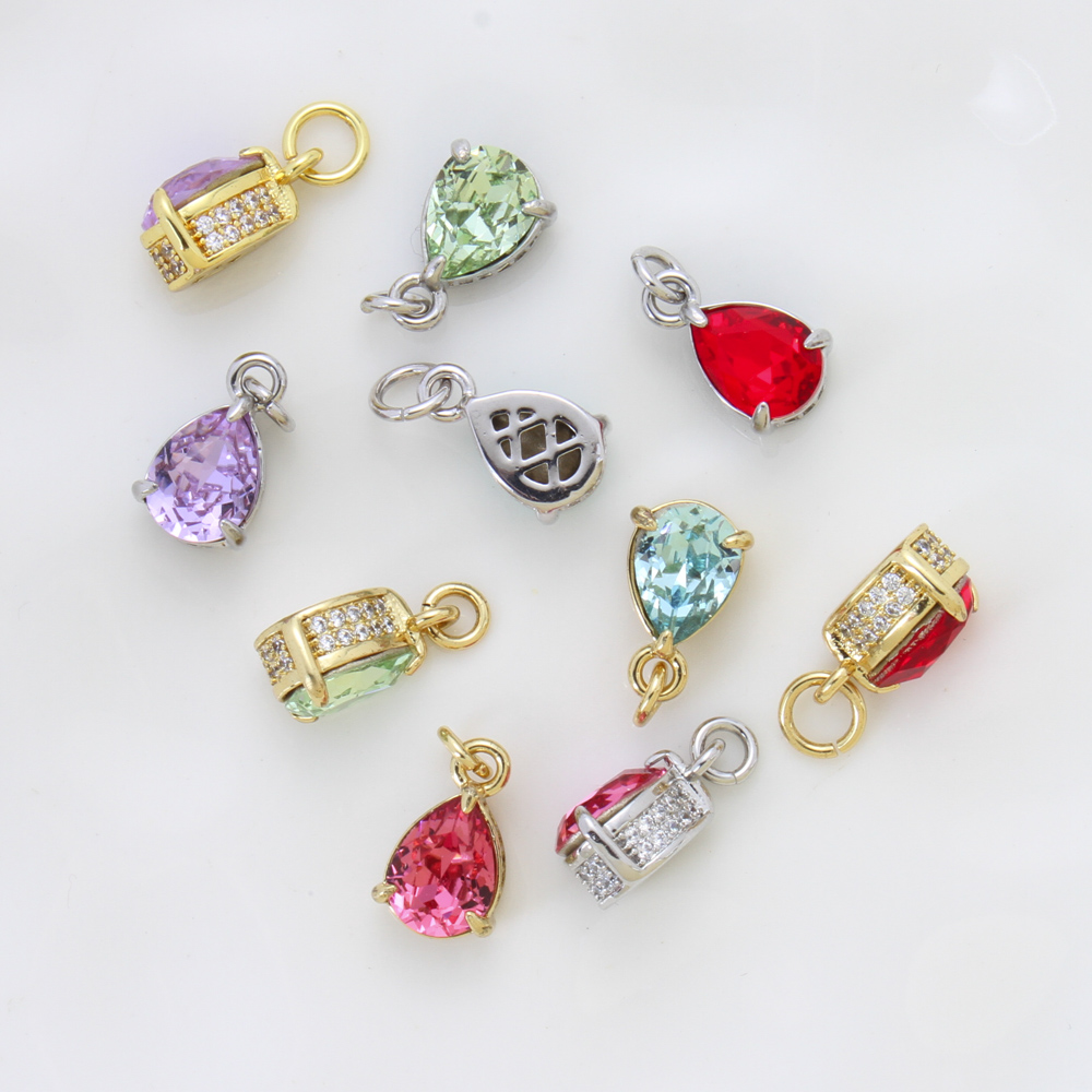 - Colgantes de latón cúbicos Circonia (CZ), metal, Gota