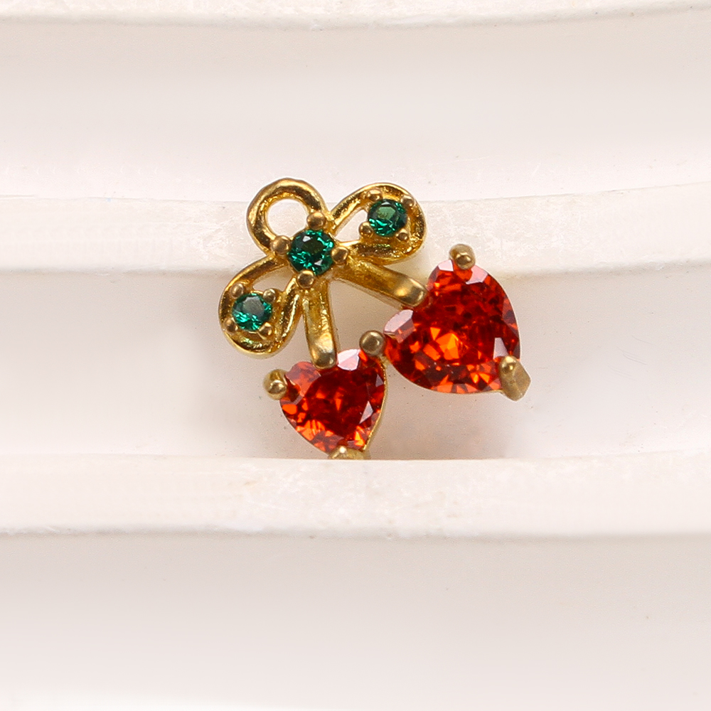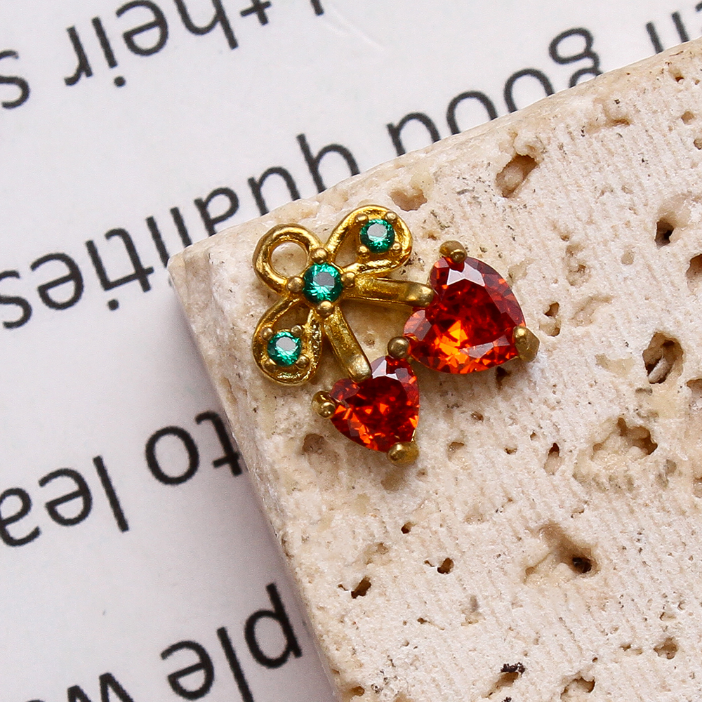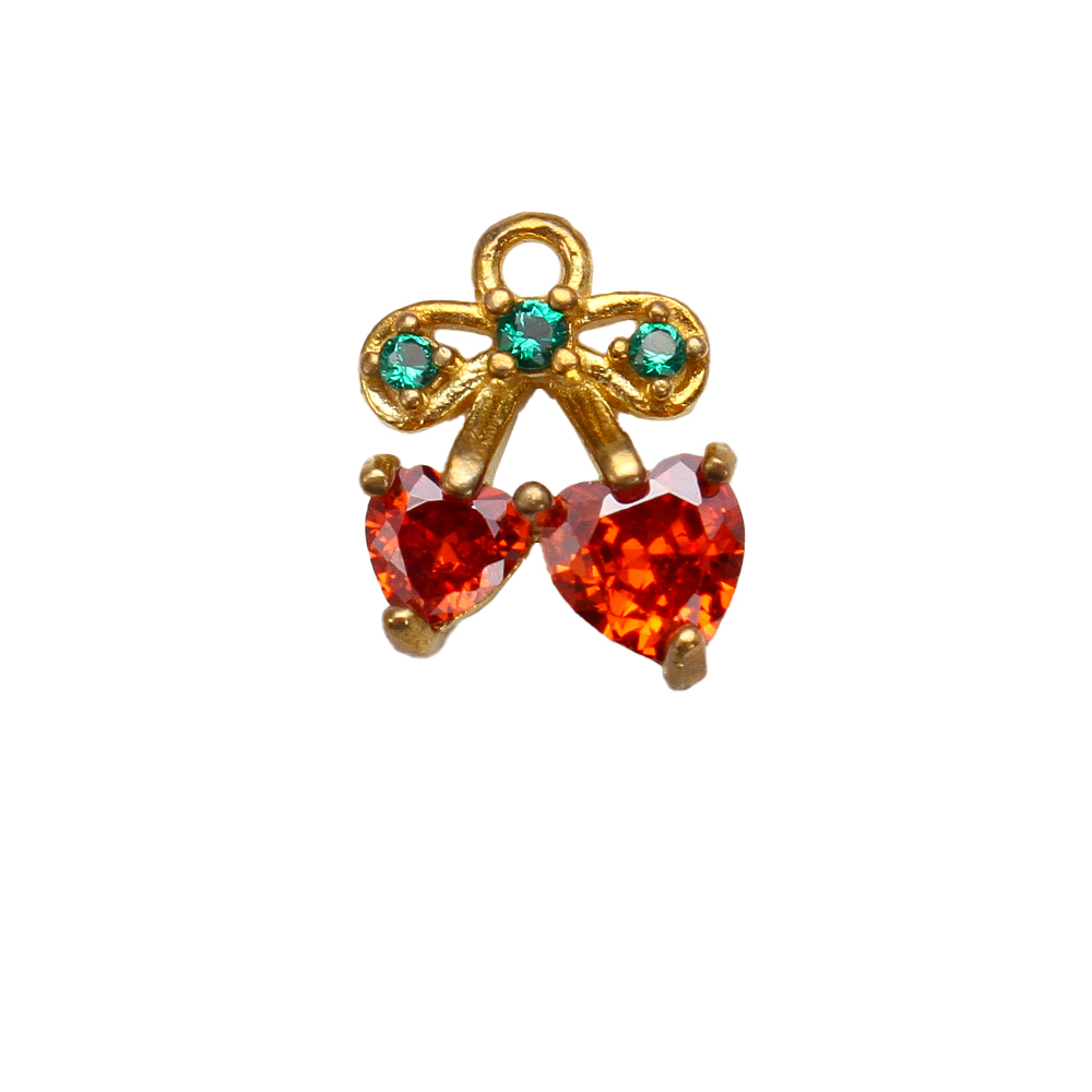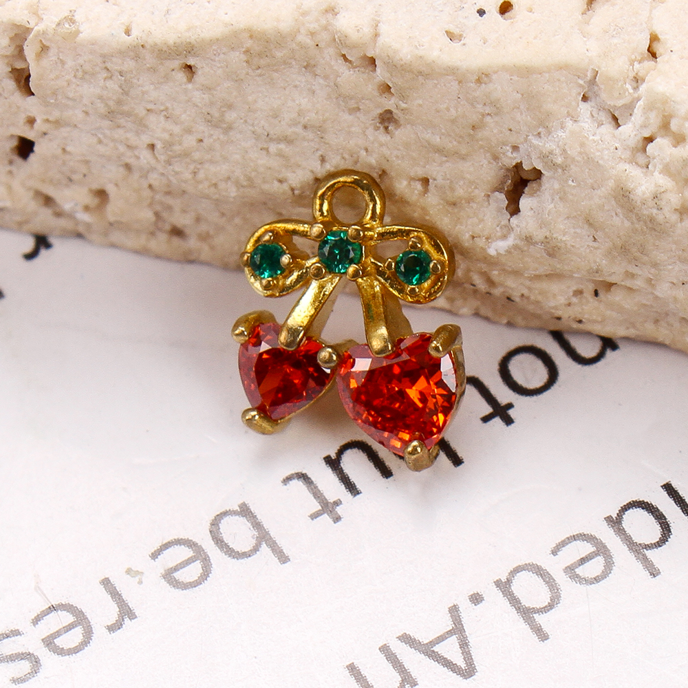 Colgantes de latón de imitación de diamante, metal, Cereza, chapado, Bricolaje & con diamantes de imitación, dorado, libre de níquel, plomo & cadmio, 9.45x3.58x11.68mm, diámetro interior:aproximado 5.09mm, Vendido por UD