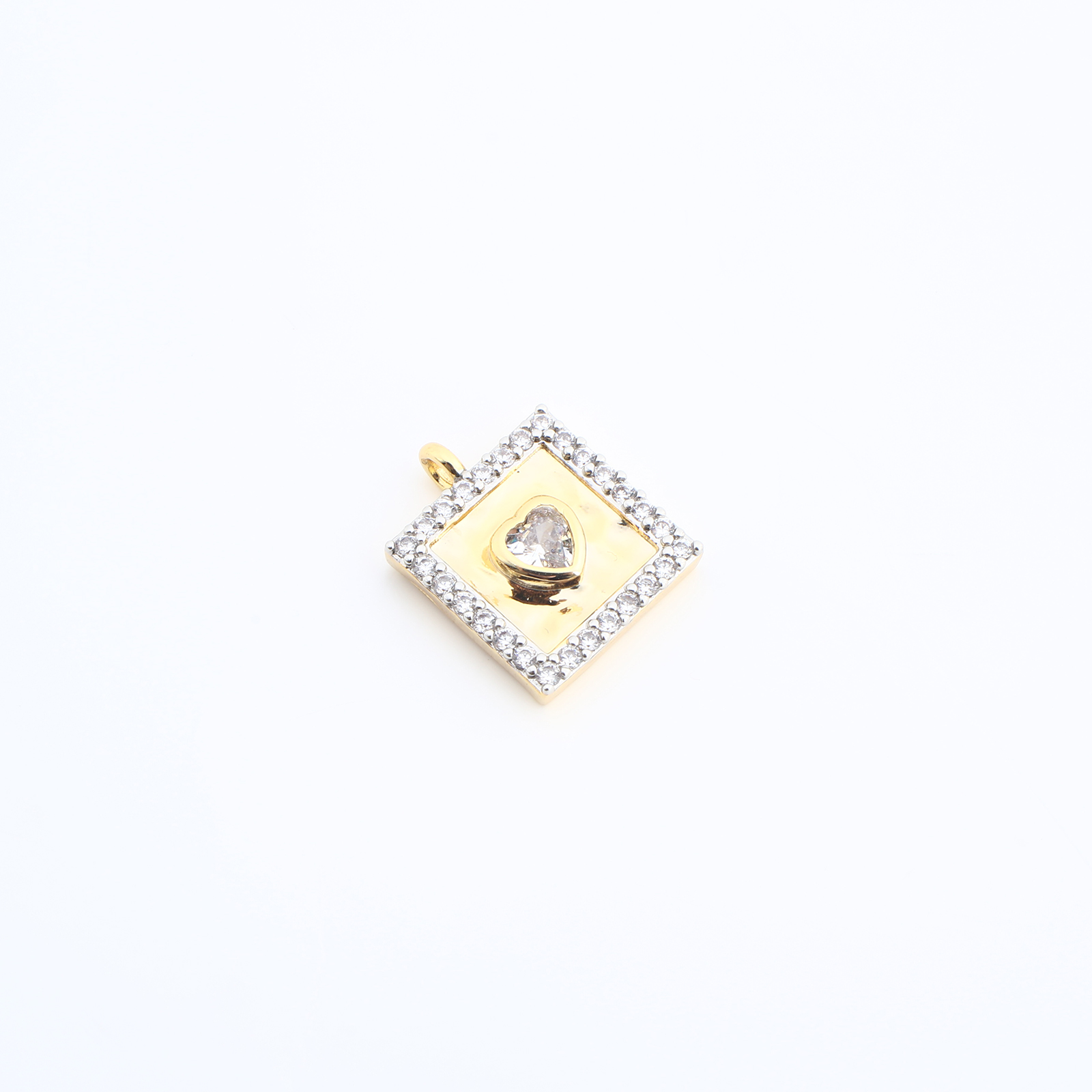 Colgantes de latón de imitación de diamante, metal, Patrón Geométrico, chapado en color dorado, Bricolaje & con diamantes de imitación, 16x13x3mm, Vendido por UD
