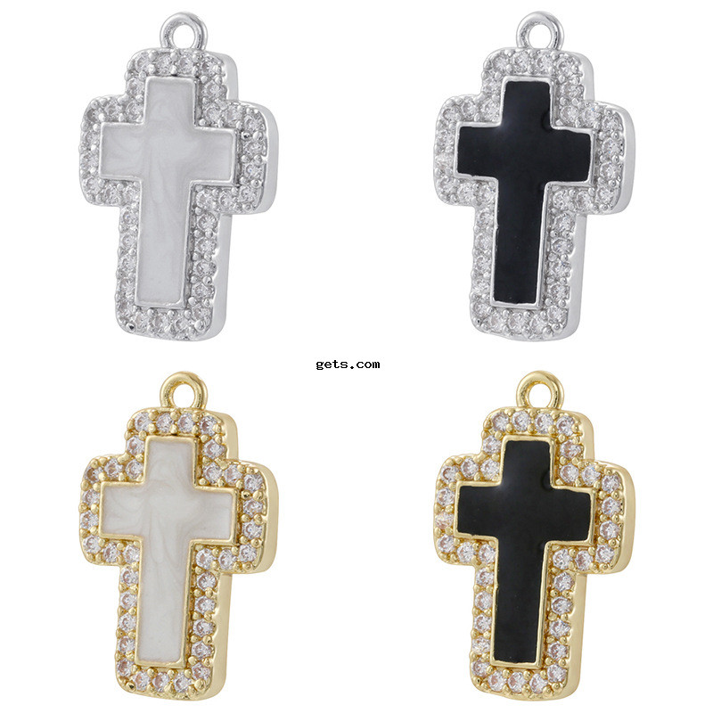 Colgantes de latón de imitación de diamante, metal, Cruces, chapado en color dorado, Bricolaje & esmalte & con diamantes de imitación, más colores para la opción, 11x17mm, Vendido por UD