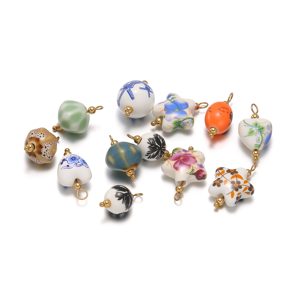 - Colgantes de porcelana, con acero inoxidable 304, chapado en color dorado