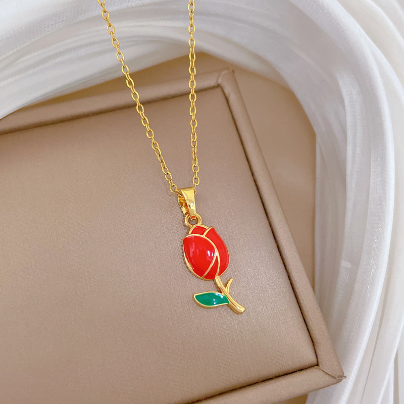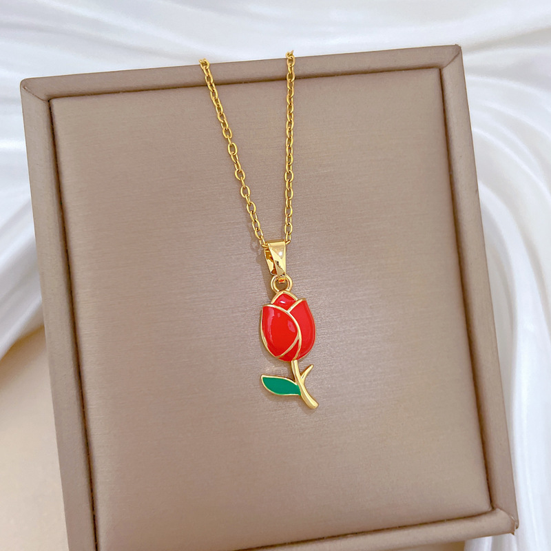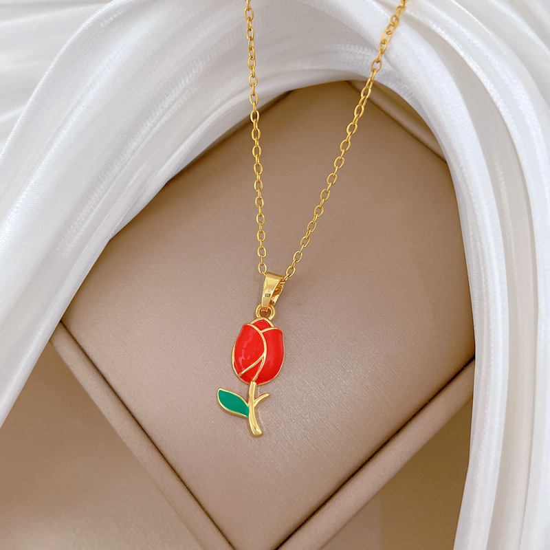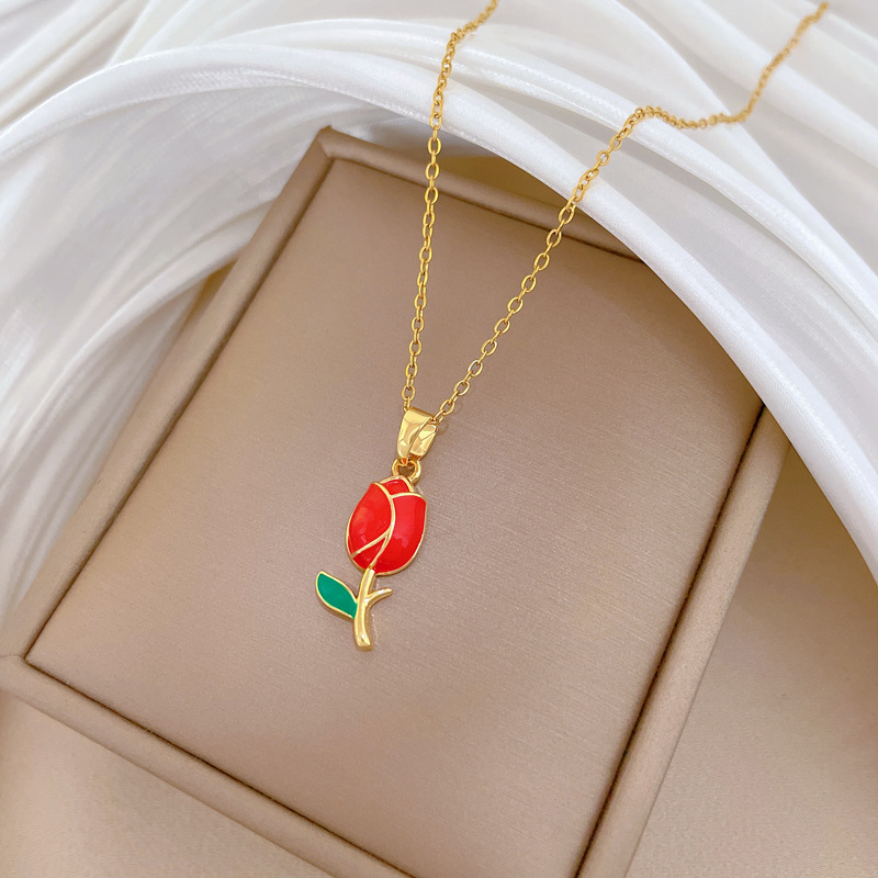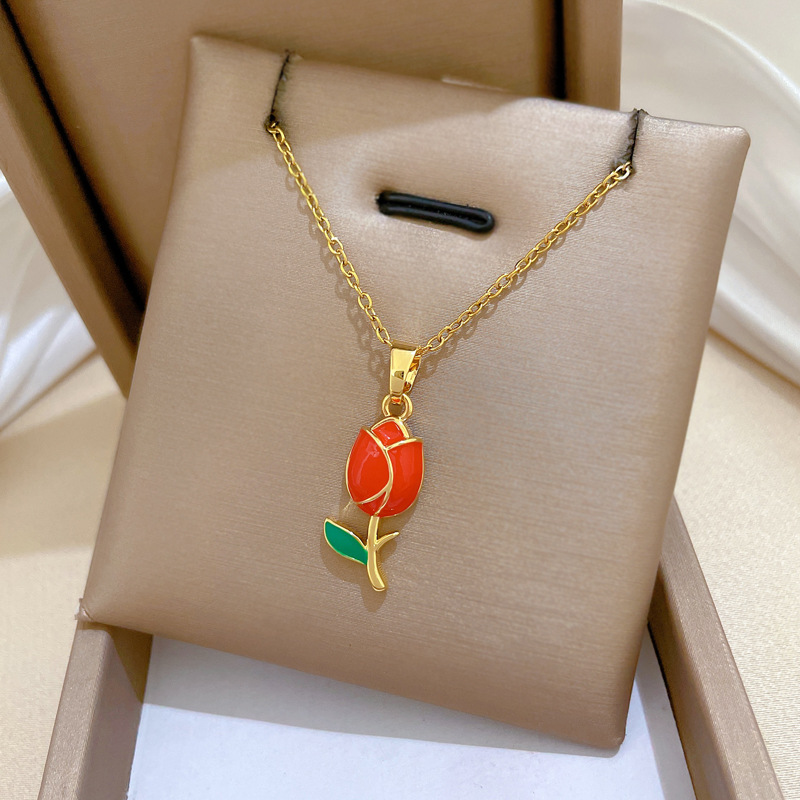 Collar de Acero Titanio, Partículas de acero, con metal, Rosa, Joyería & para mujer & esmalte, dorado, Vendido por UD