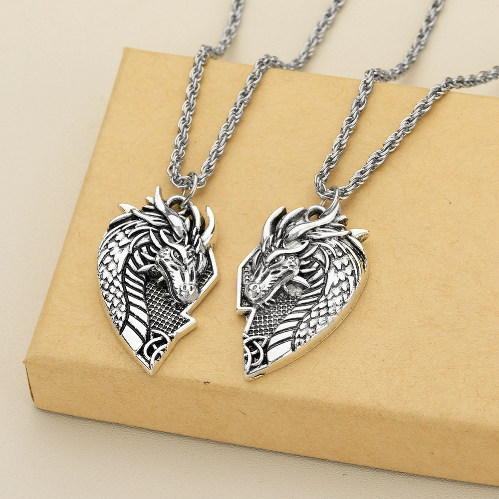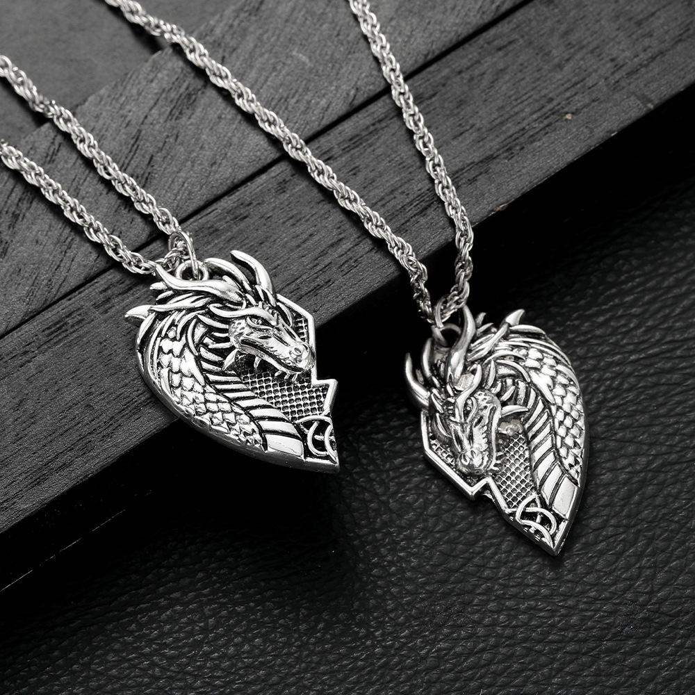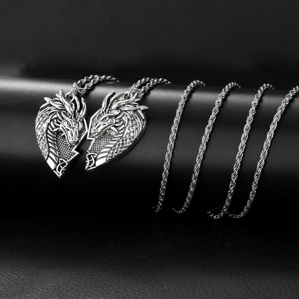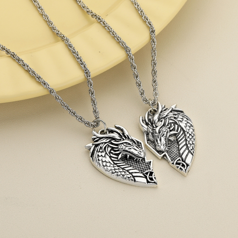 Collar de Aleación de Zinc, con cadena de hierro, chapado en color de plata antigua