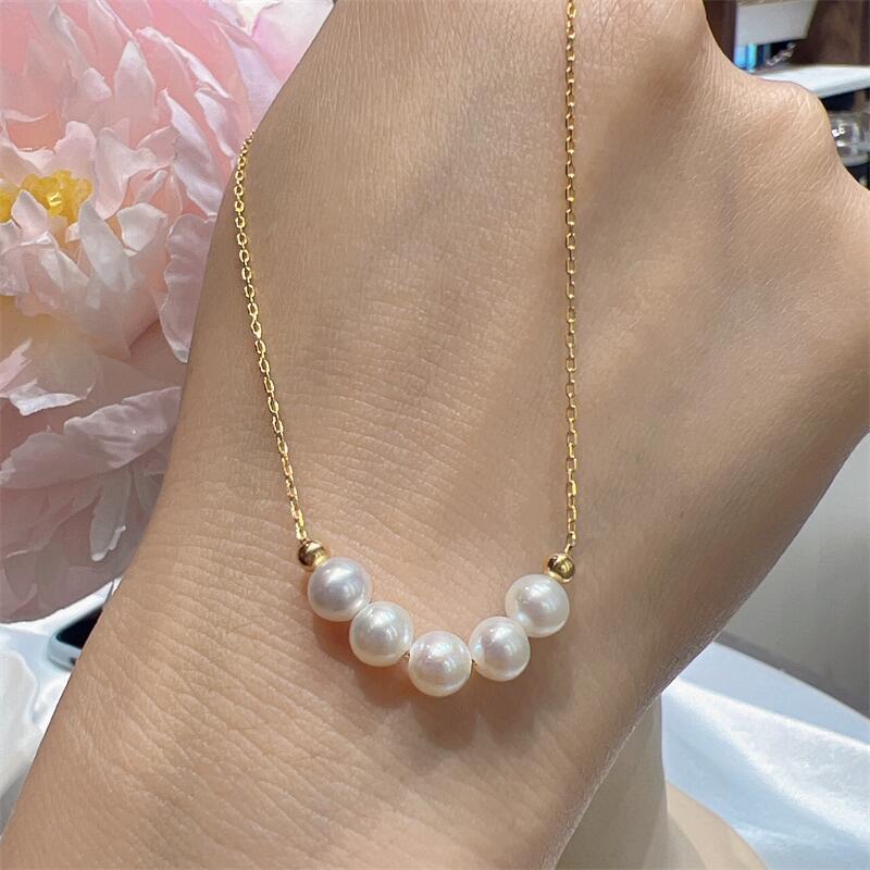 Collar de Perlas Natural de Freshwater, Perlas cultivadas de agua dulce, con aleación de zinc, chapado en color dorado, Joyería, más colores para la opción, 6-7MM, Vendido por UD