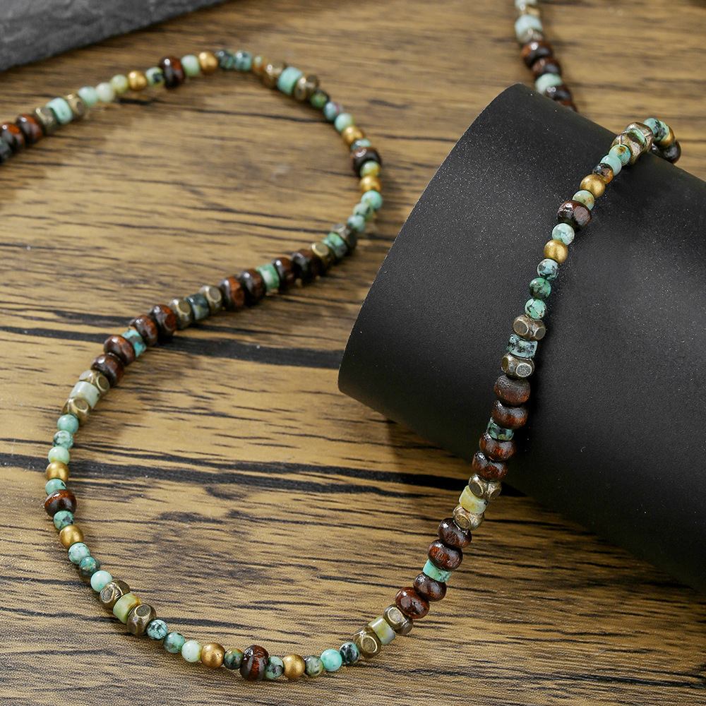 - Collar de cadena suéter turquesa, Turquesa sintético, pulido