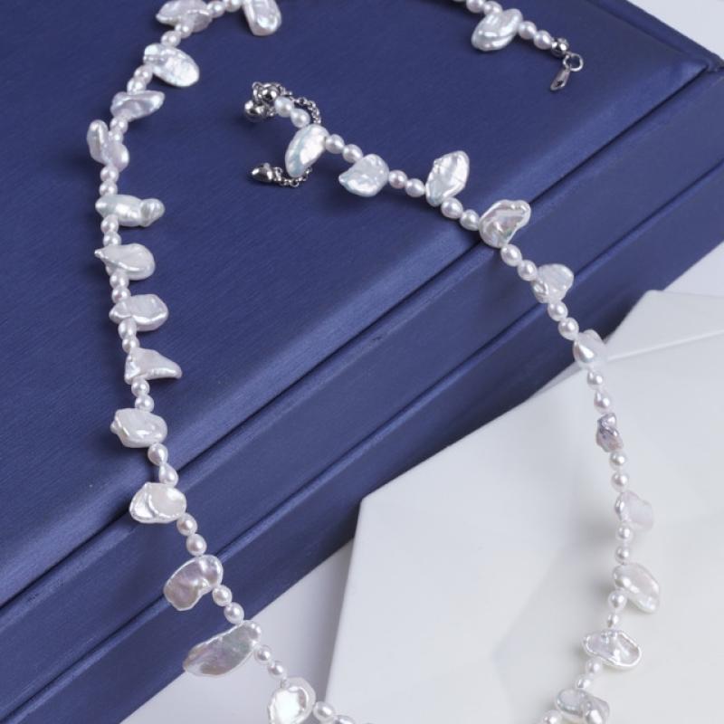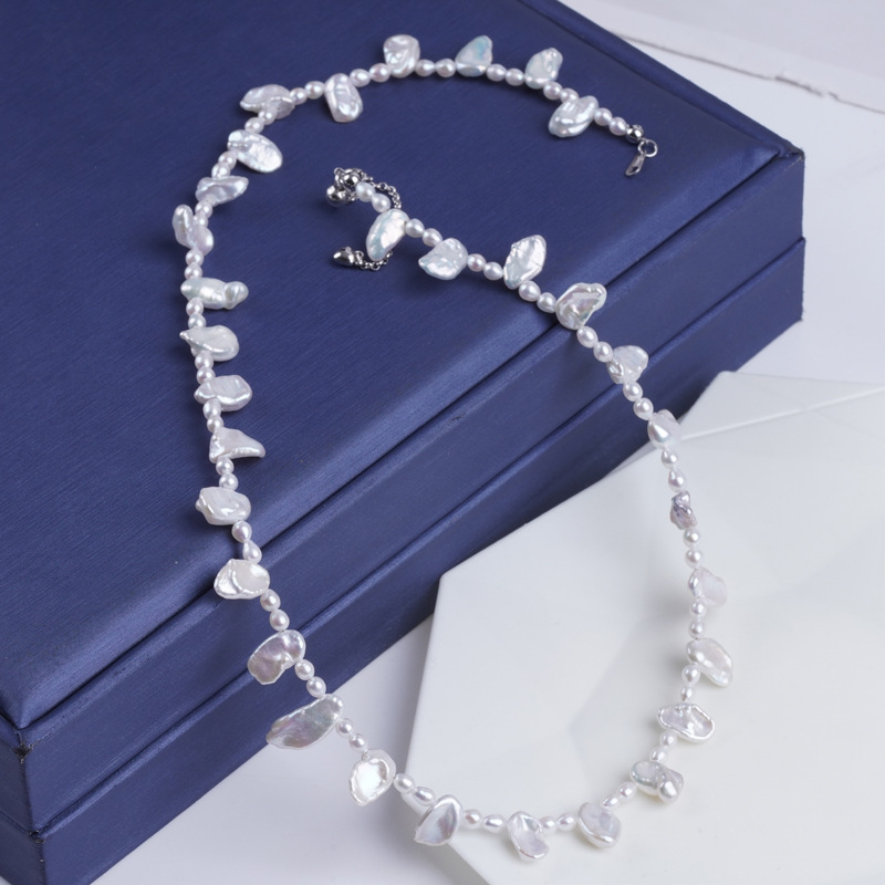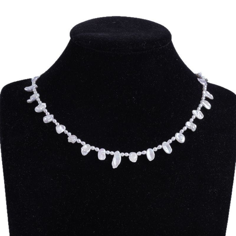 Collar en Plata de Ley 925 con Perlas, Perlas cultivadas de agua dulce, con plata de ley 925, Barroco, Joyería, Blanco, 180x200x50mm, Vendido por Sarta