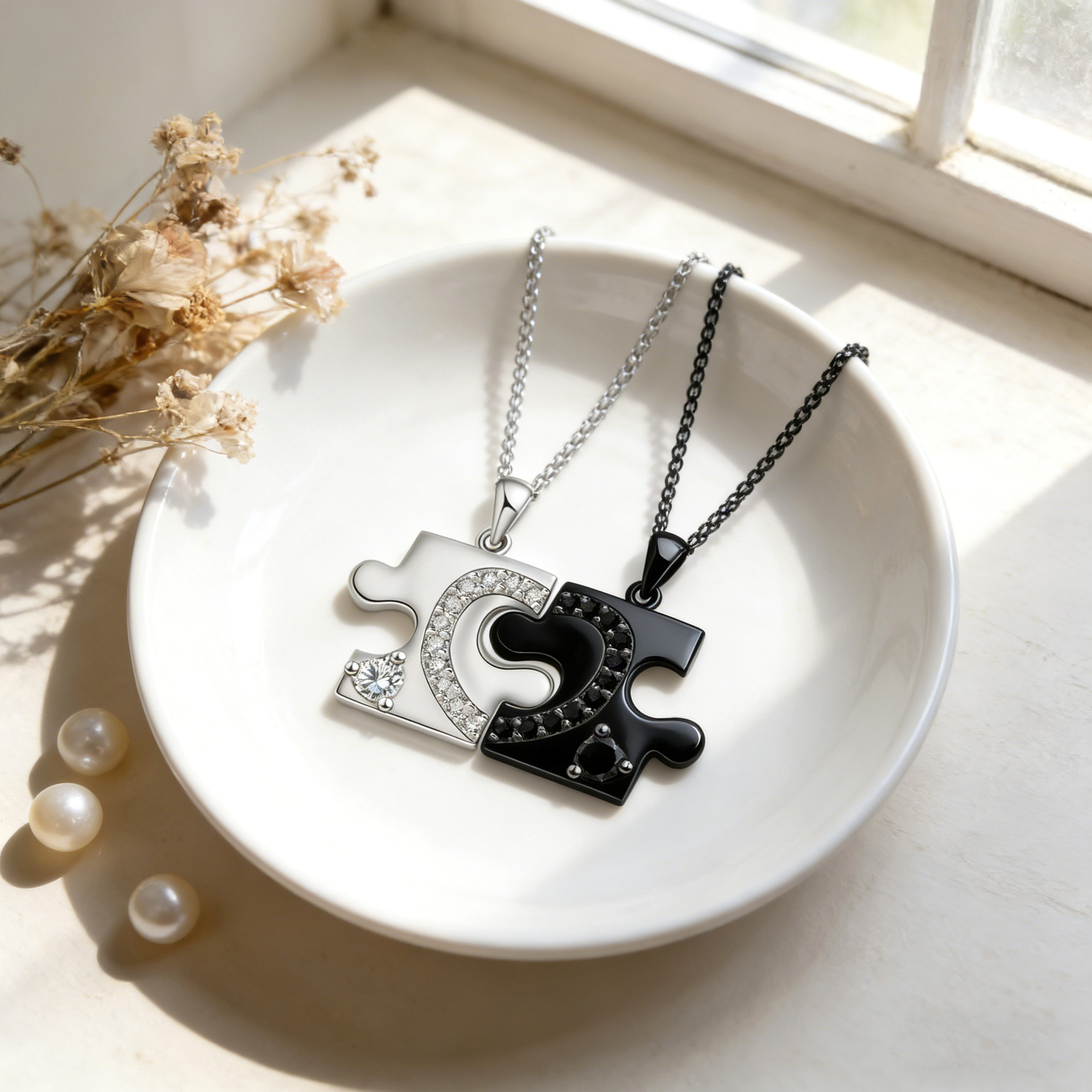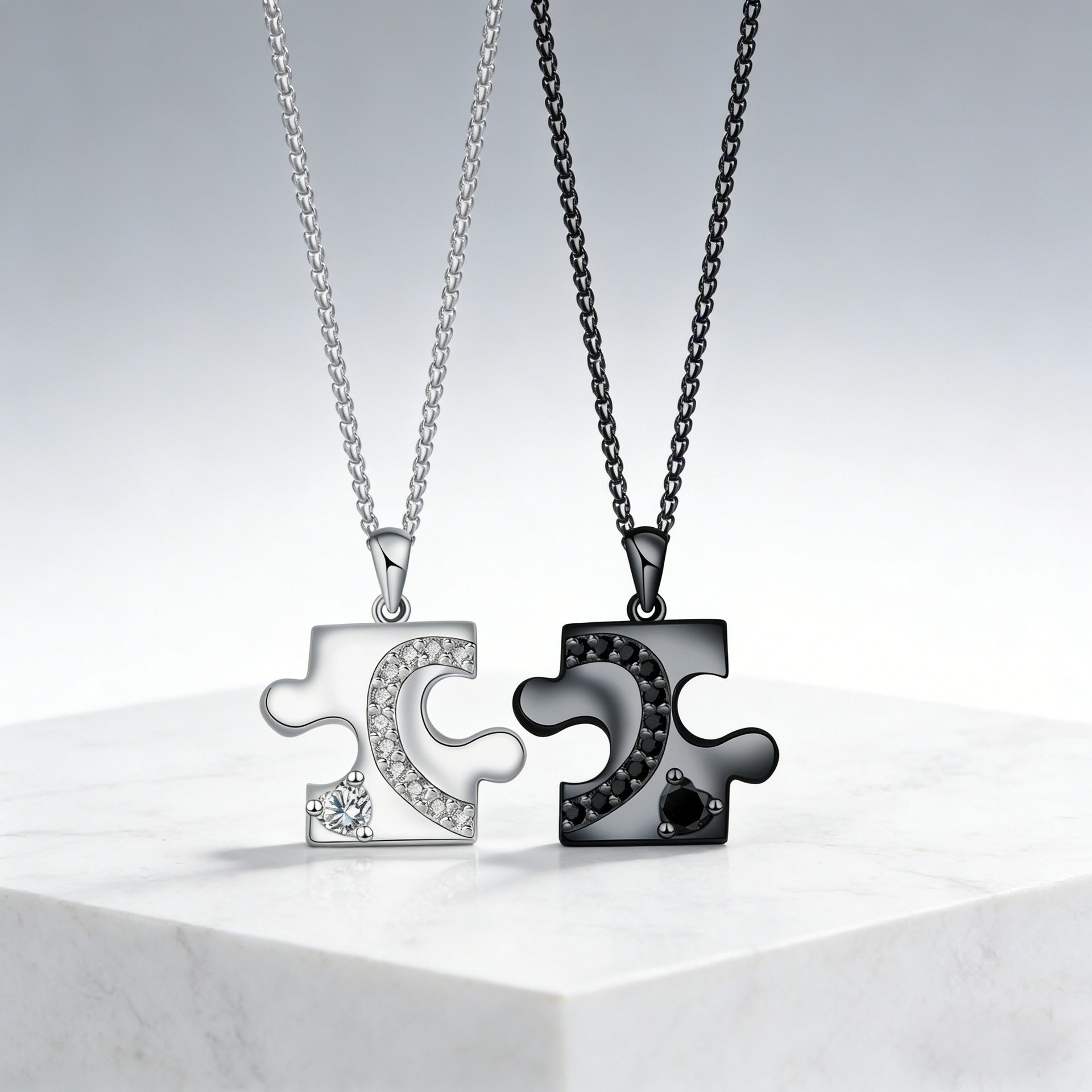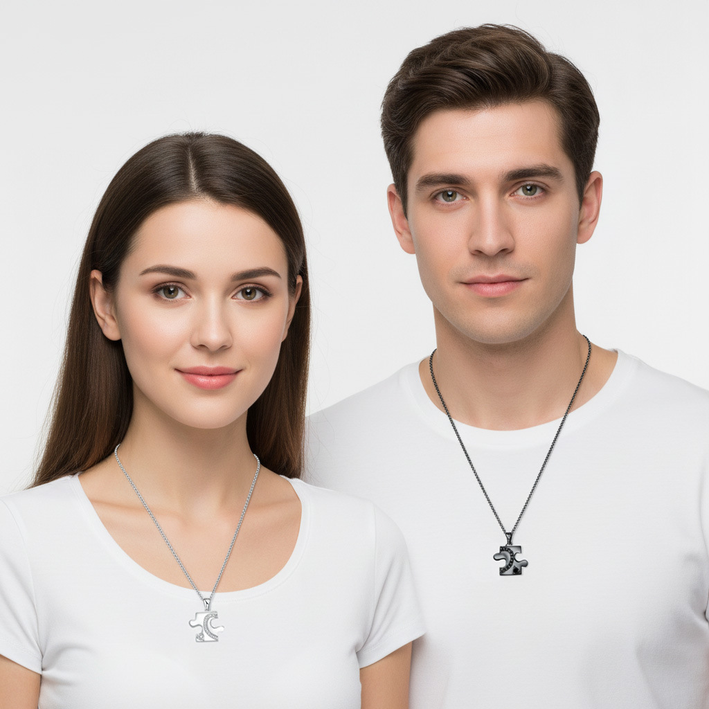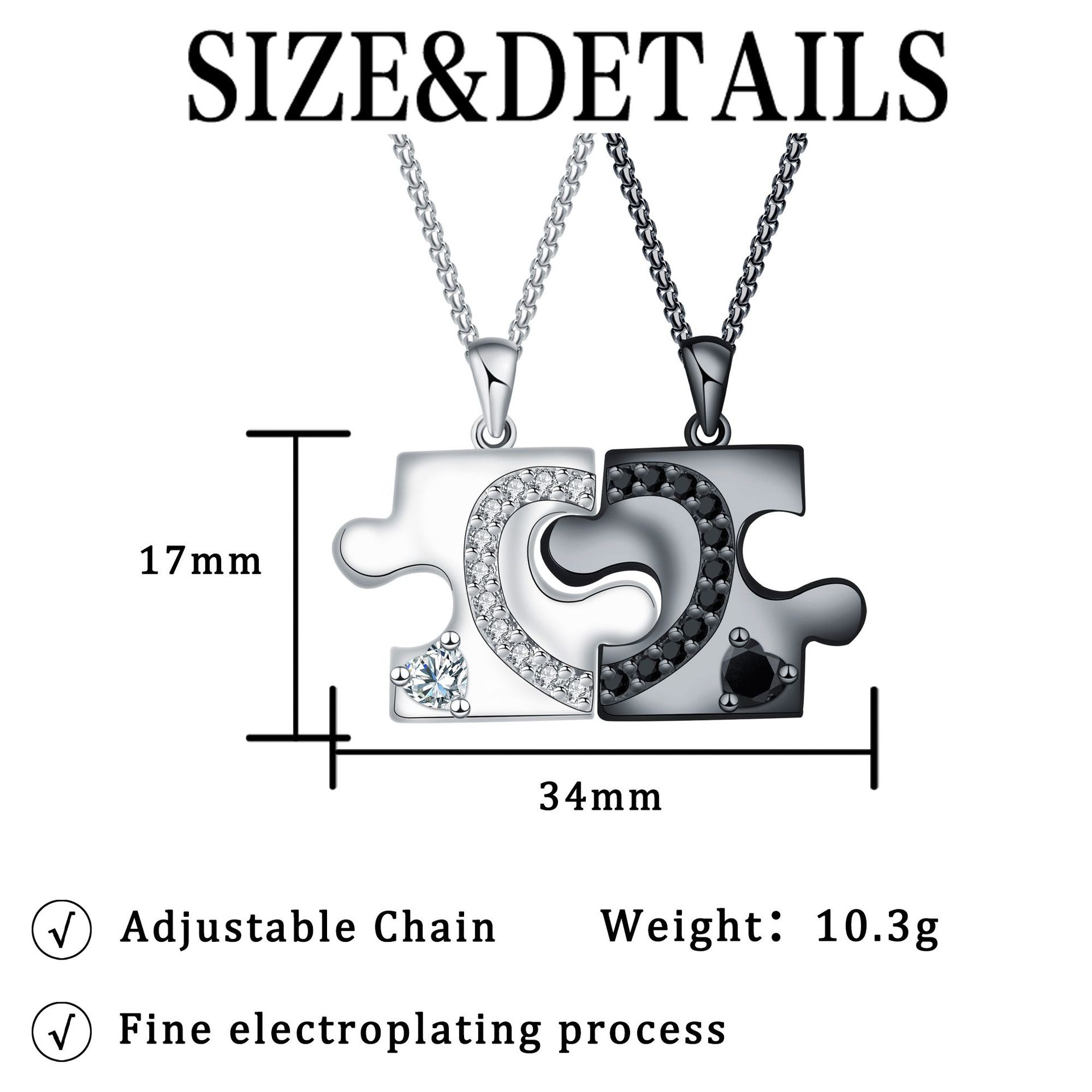 Collares de Pareja, metal, con cadena de acero inoxidable, con 5cm extender cadena, chapado, 2 piezas & ajustable & cadena Rolo & micro arcilla de zirconia cúbica & para la pareja, libre de níquel, plomo & cadmio, 34x17mm, longitud:aproximado 45 cm, 2PCs/Set, Vendido por Set