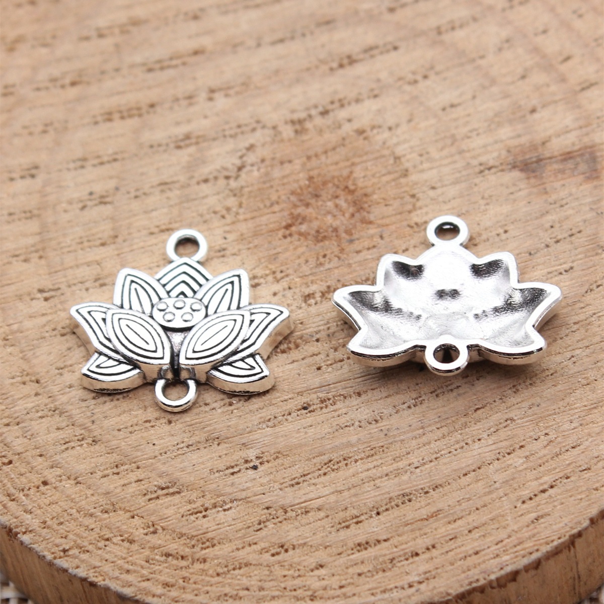Conector de aleación de Zinc de flor, chapado en color de plata antigua, 3/3 aro