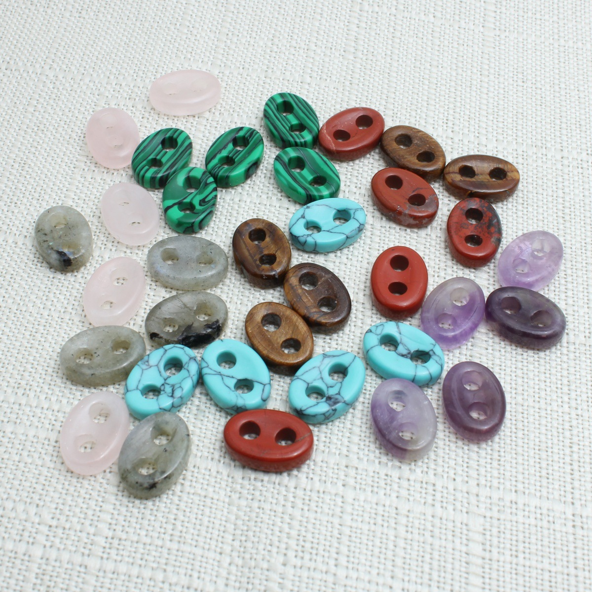 Red jasperMalachitelabradoritaTiger eye stoneTurquoiseRose quartzAmethyst