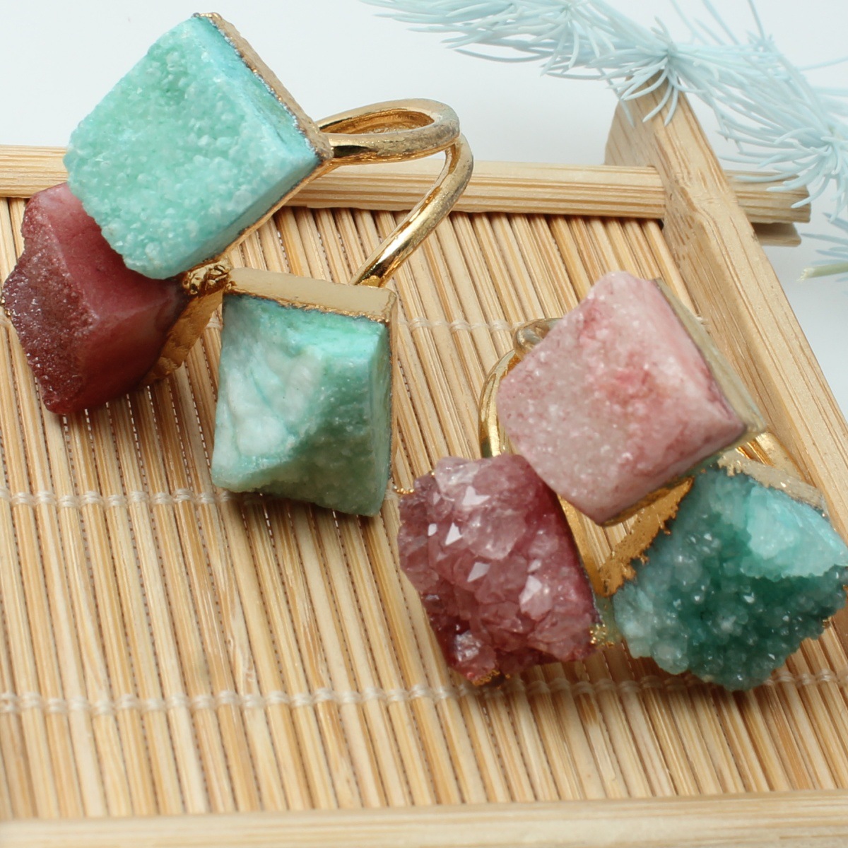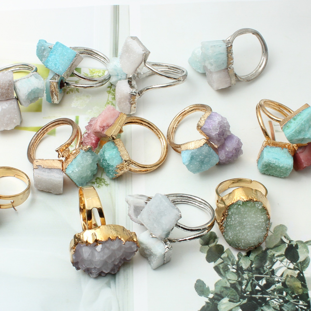 - Anillo de dedo de cuarzo natural, con metal, unisexo & ajustable