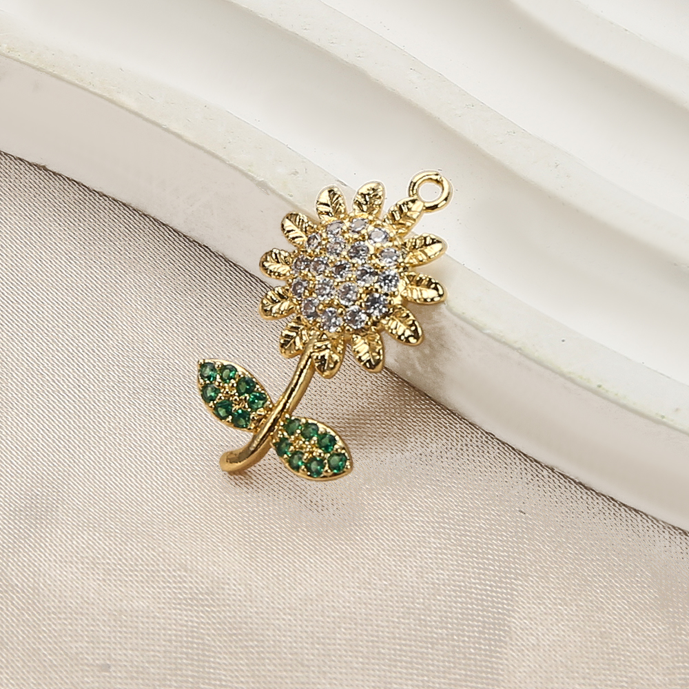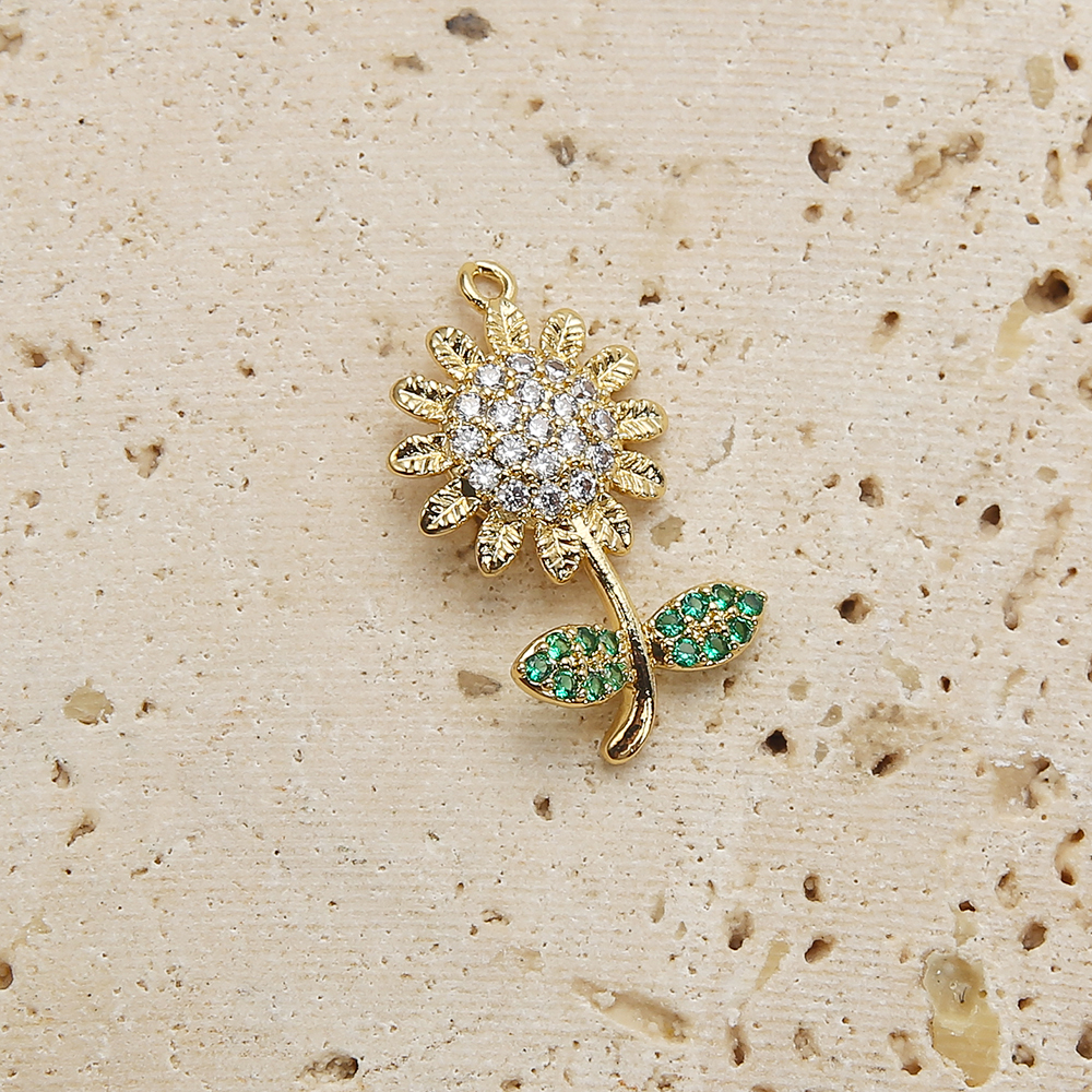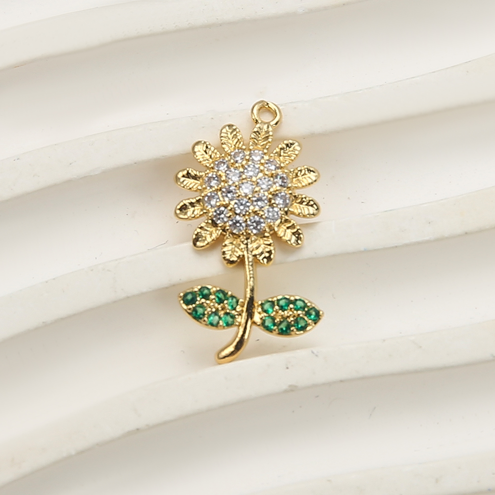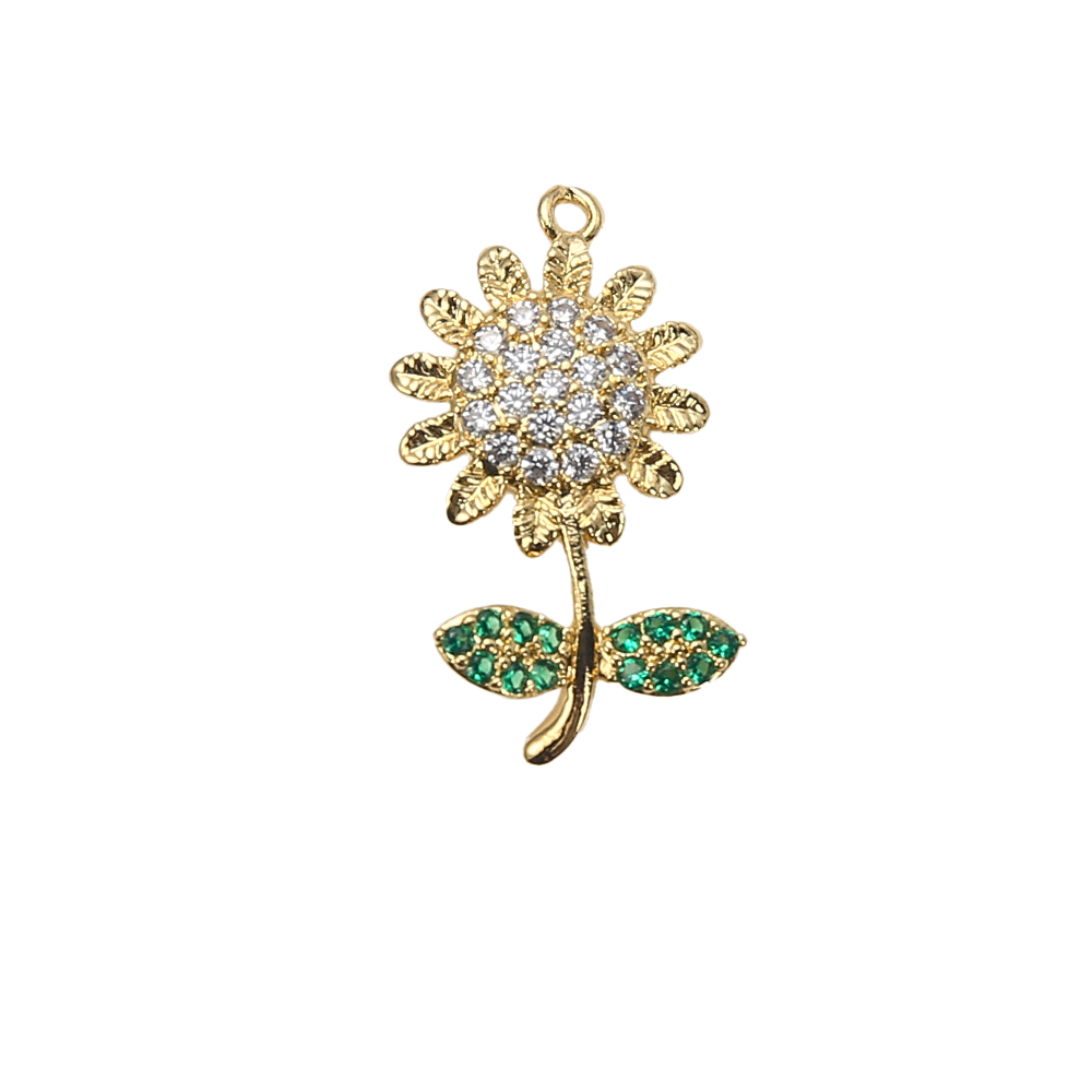 Cúbicos Circonia Colgante Latón Micro pavimenta, metal, Girasol, chapado en color dorado, Bricolaje & micro arcilla de zirconia cúbica, dorado, libre de níquel, plomo & cadmio, 15.24x3.07x24.17mm, 20PCs/Bolsa, Vendido por Bolsa