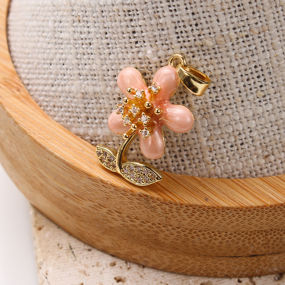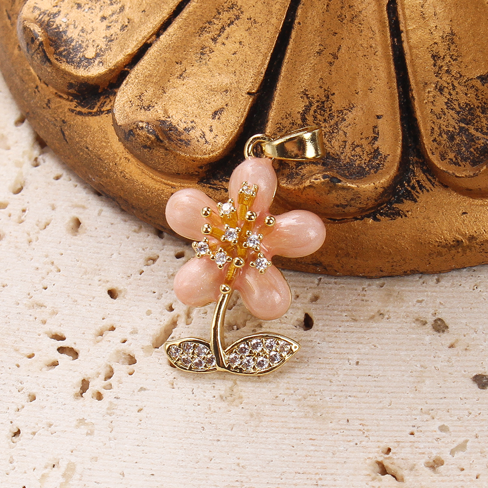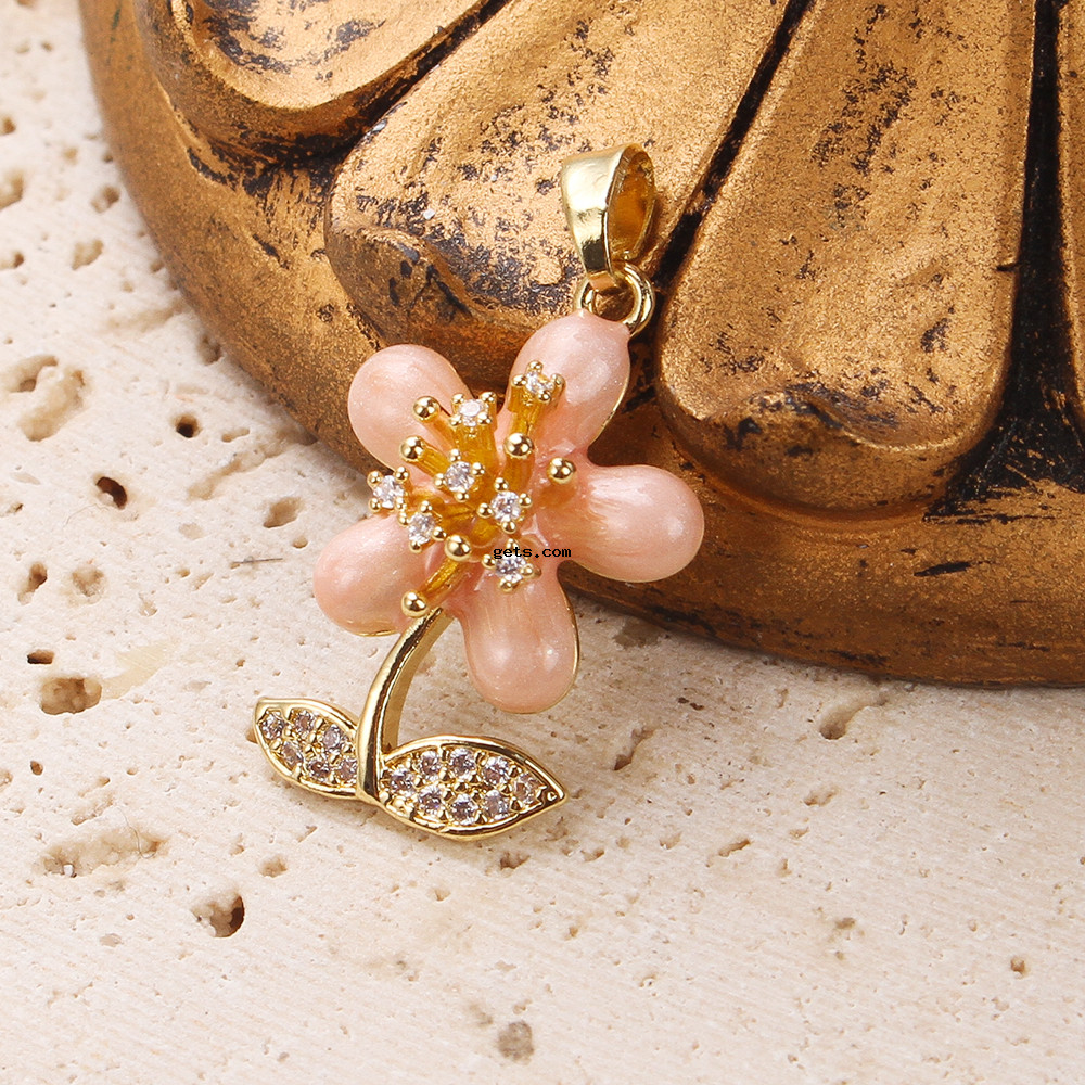 - Cúbicos Circonia Colgante Latón Micro pavimenta, metal, Flor