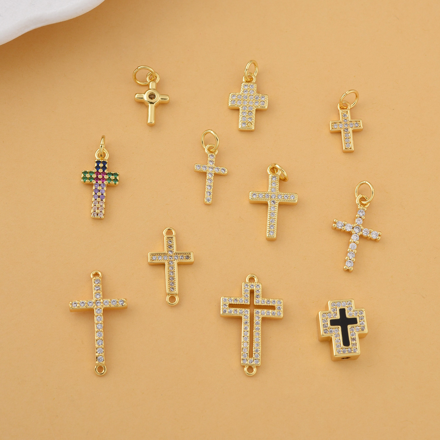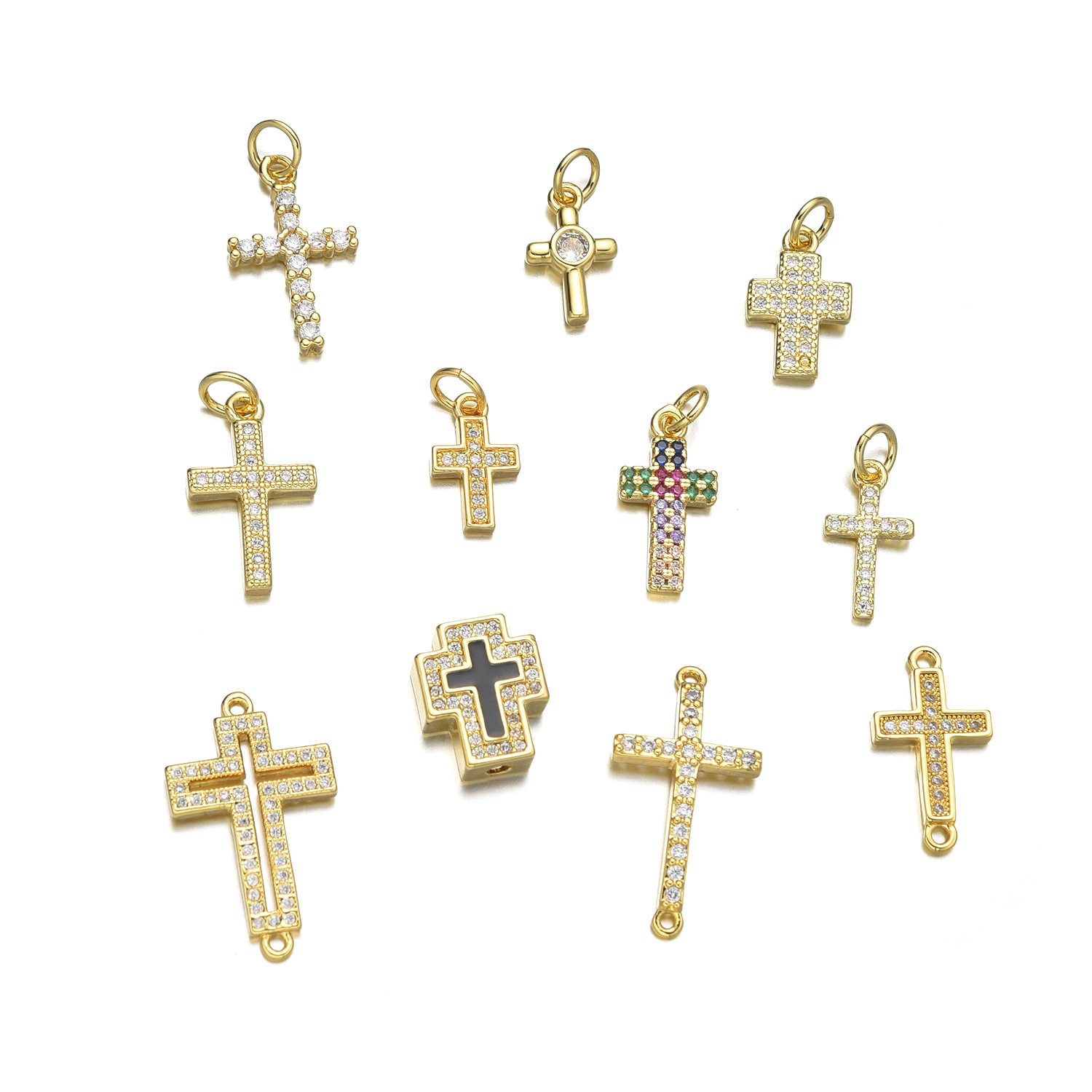 - Cúbicos Circonia Colgante Latón Micro pavimenta, metal, Cruces