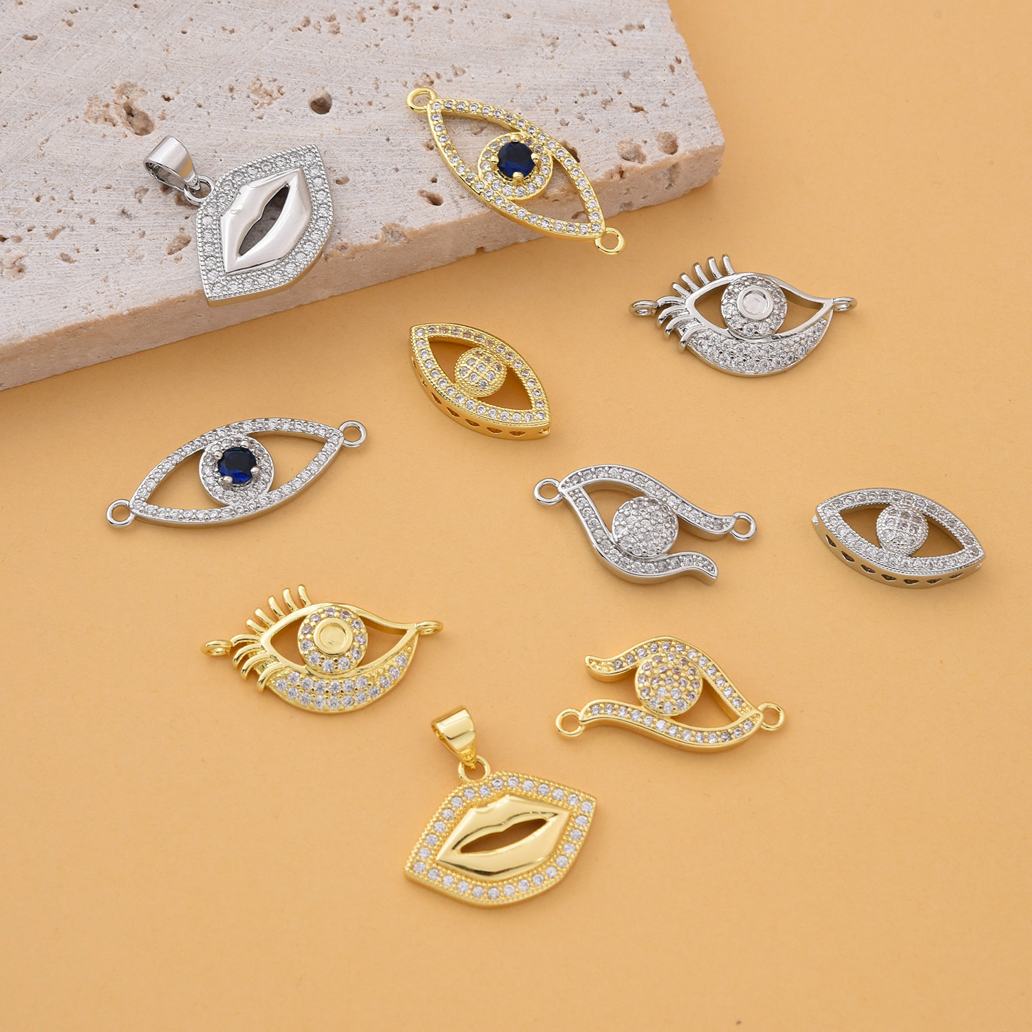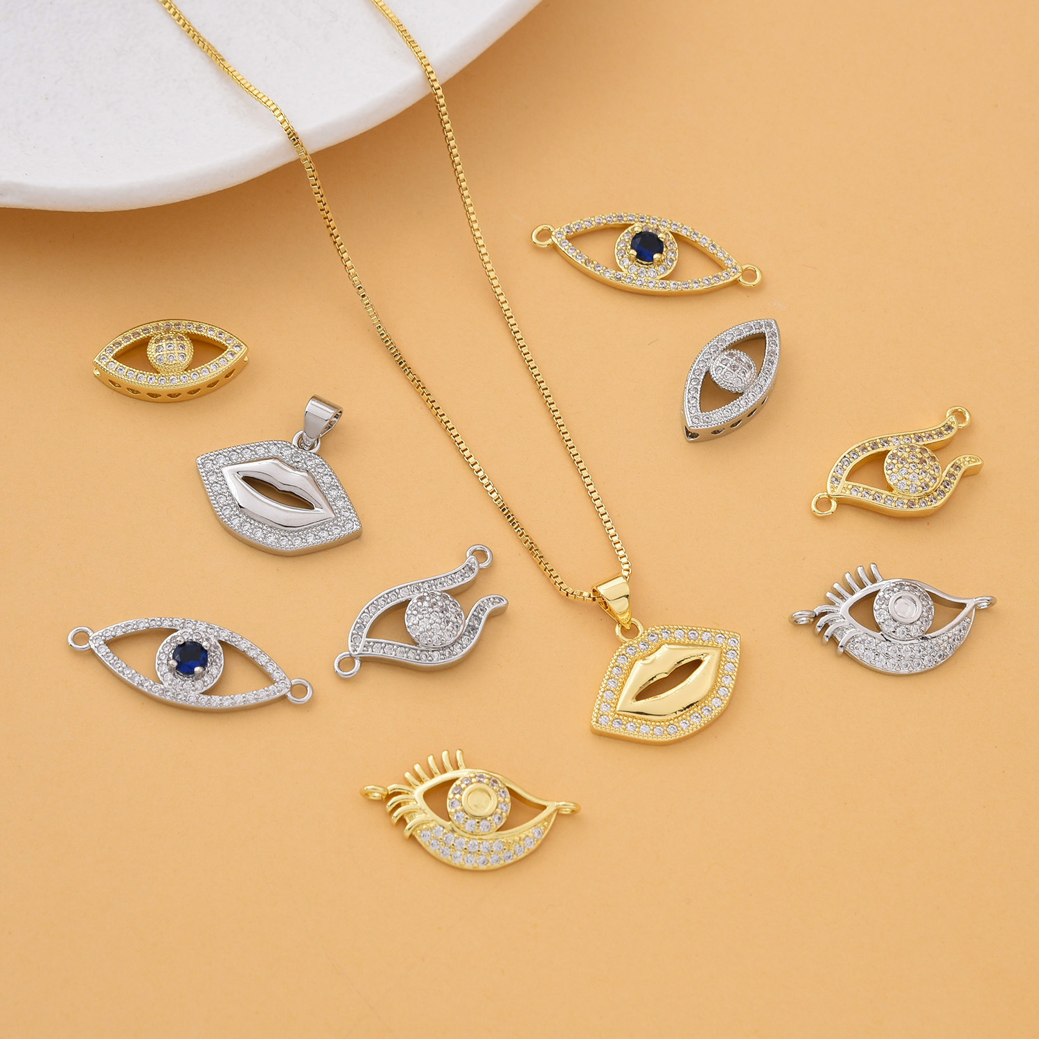 Cúbicos Circonia Colgante Latón Micro pavimenta, metal, Esférico, chapado en color dorado, Bricolaje & patrón de malvado de ojo & micro arcilla de zirconia cúbica, más colores para la opción, libre de níquel, plomo & cadmio, 20x9x47mm, Vendido por UD