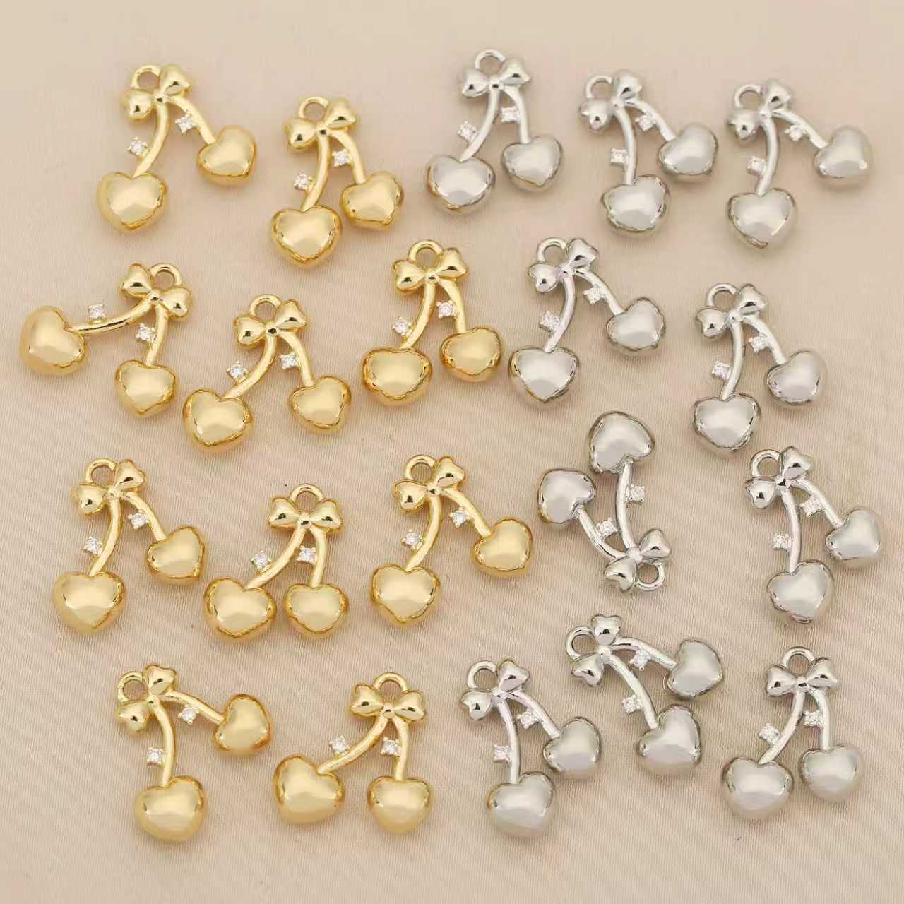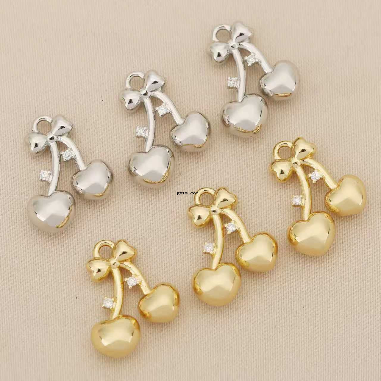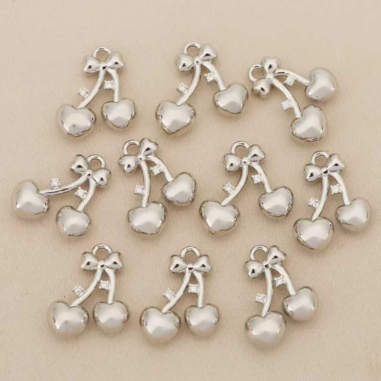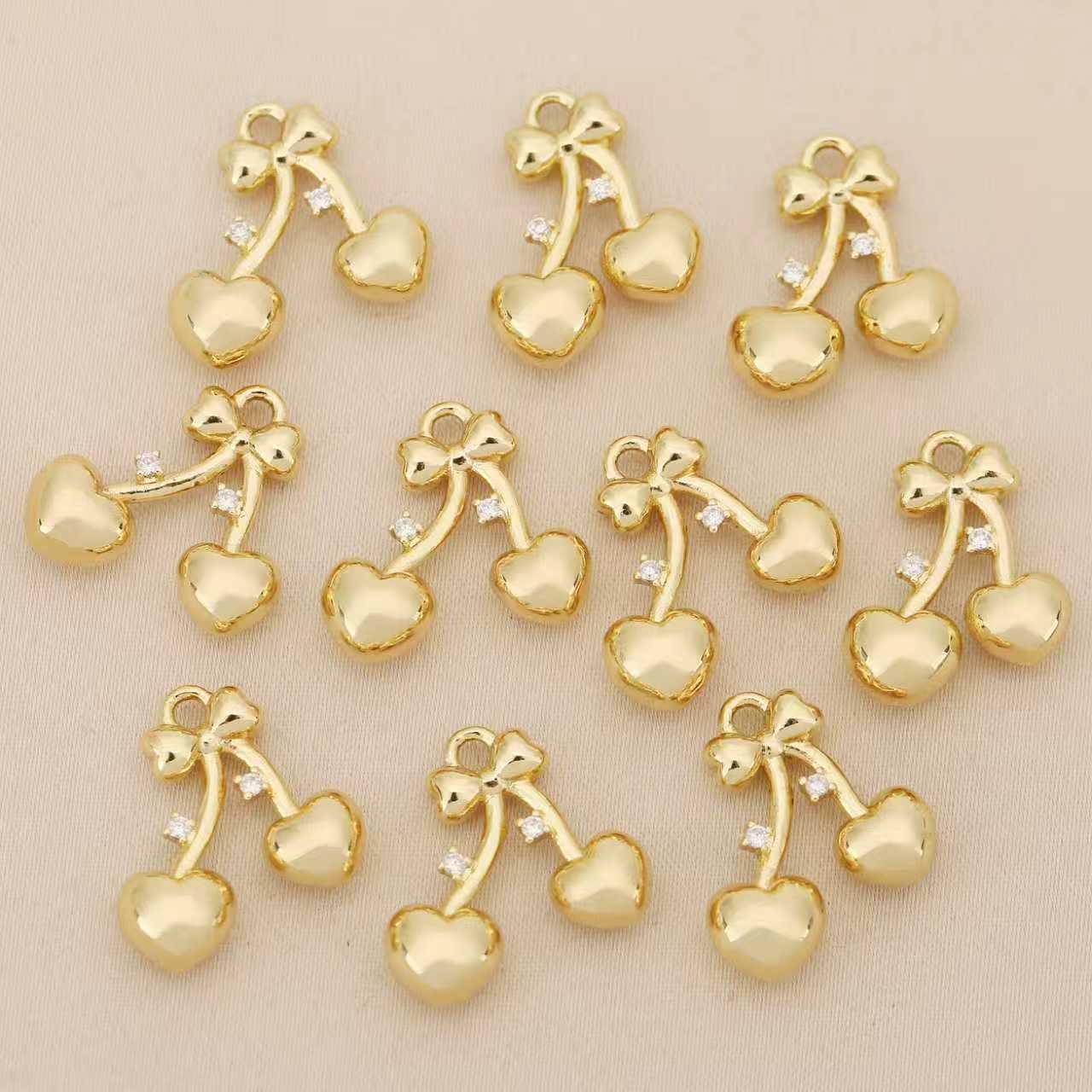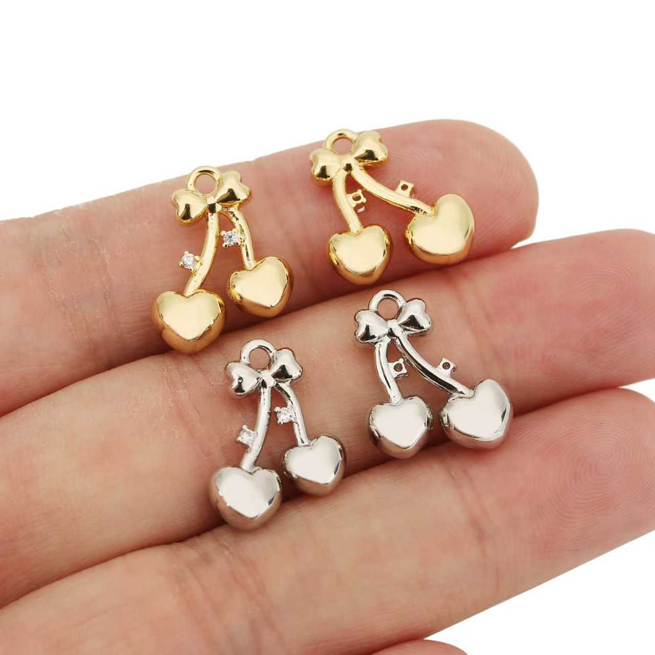 Cúbicos Circonia Colgante Latón Micro pavimenta, metal, Cereza, chapado, Bricolaje & micro arcilla de zirconia cúbica, más colores para la opción, libre de níquel, plomo & cadmio, 10PCs/Bolsa, Vendido por Bolsa