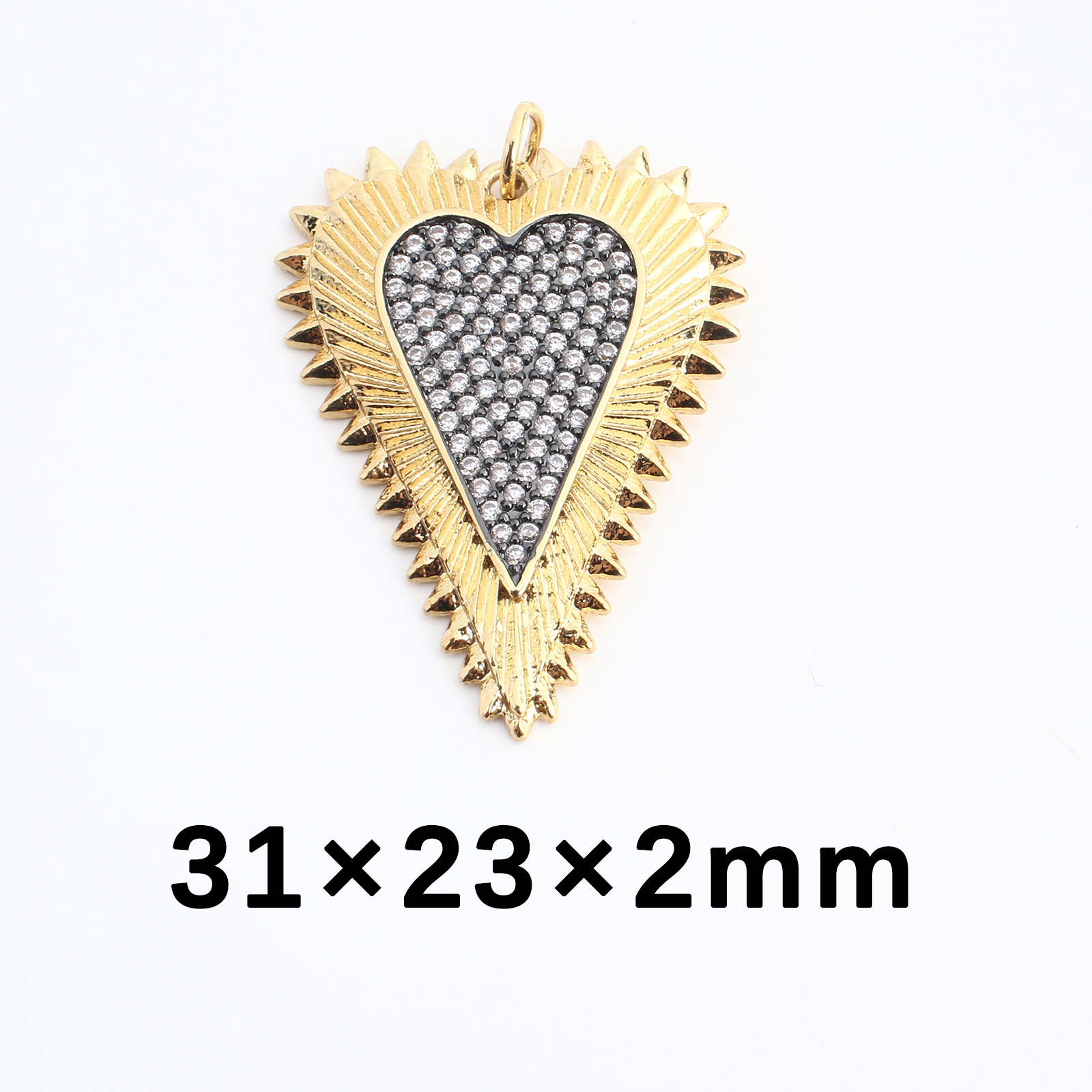Cúbicos Circonia Colgante Latón Micro pavimenta, metal, Corazón, Bricolaje & micro arcilla de zirconia cúbica, dorado, 31x23x2mm, Vendido por UD