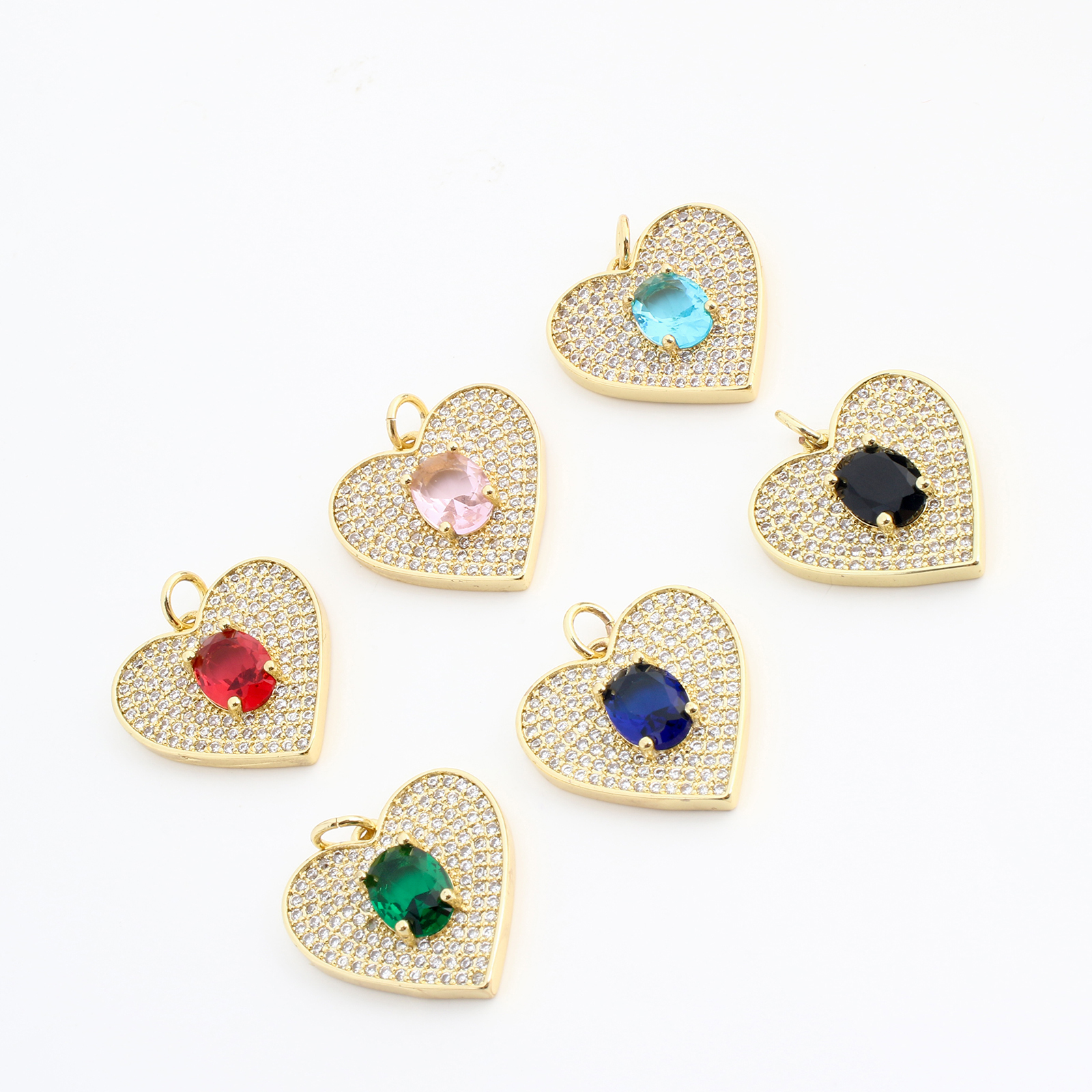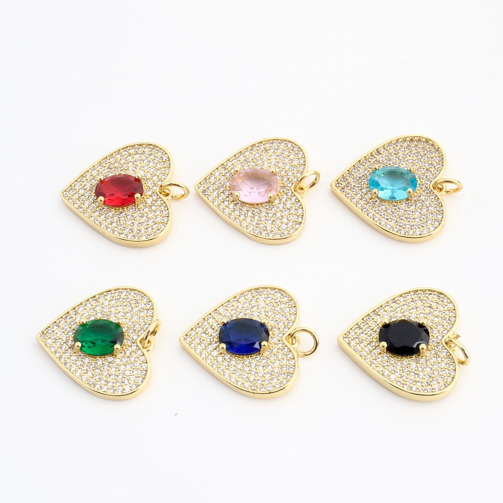 Cúbicos Circonia Colgante Latón Micro pavimenta, metal, Corazón