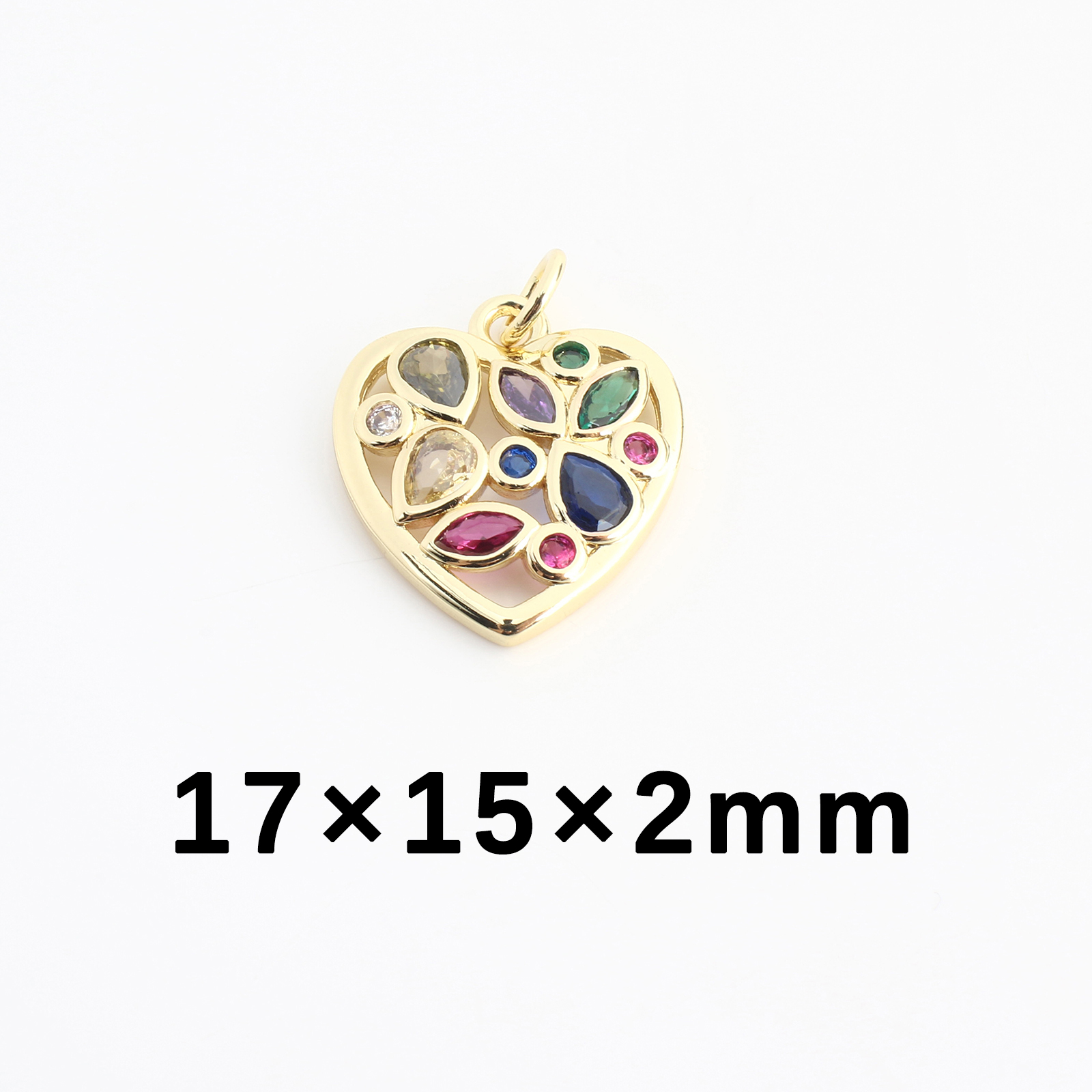 Cúbicos Circonia Colgante Latón Micro pavimenta, metal, Corazón, Bricolaje & micro arcilla de zirconia cúbica & hueco, dorado, 17x15x2mm, Vendido por UD