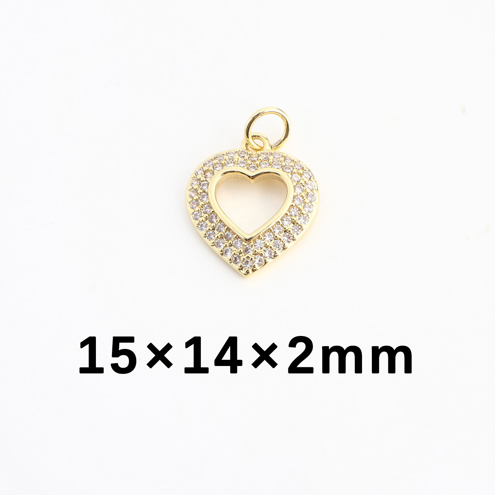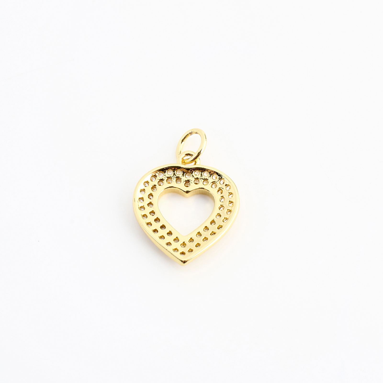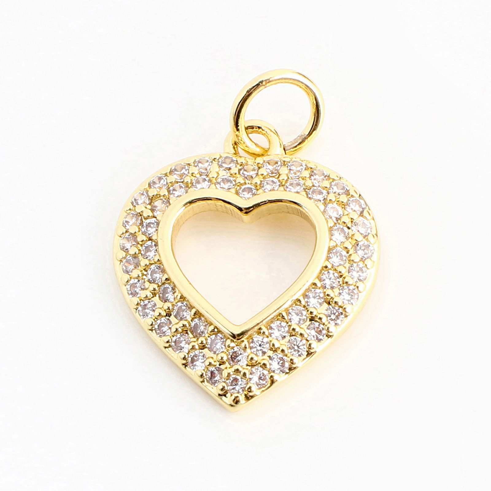 Cúbicos Circonia Colgante Latón Micro pavimenta, metal, Corazón, Bricolaje & micro arcilla de zirconia cúbica & hueco, dorado, 15x14x2mm, Vendido por UD