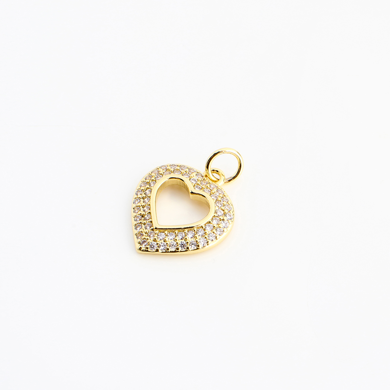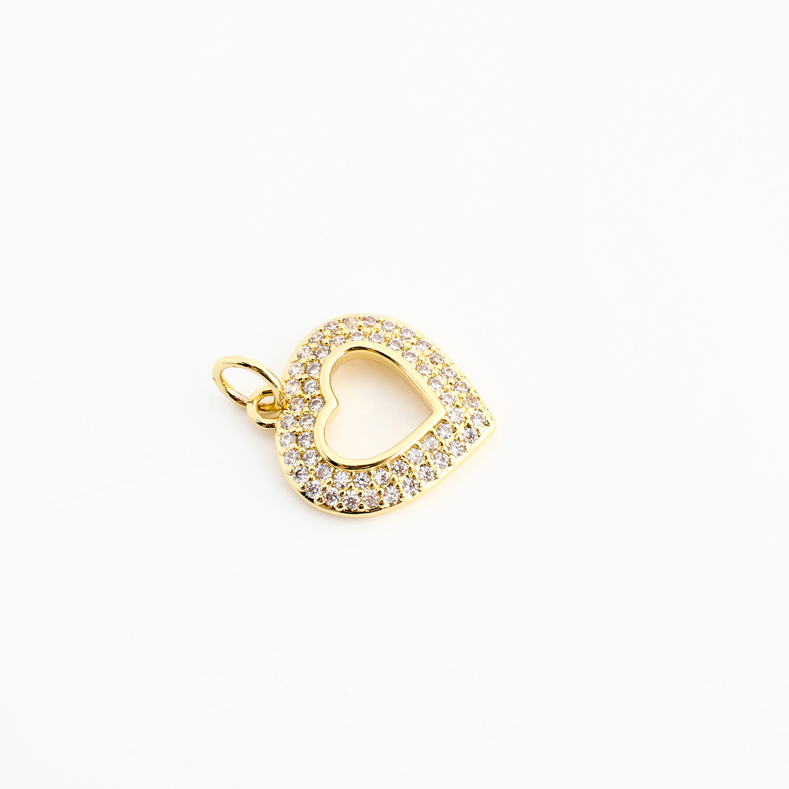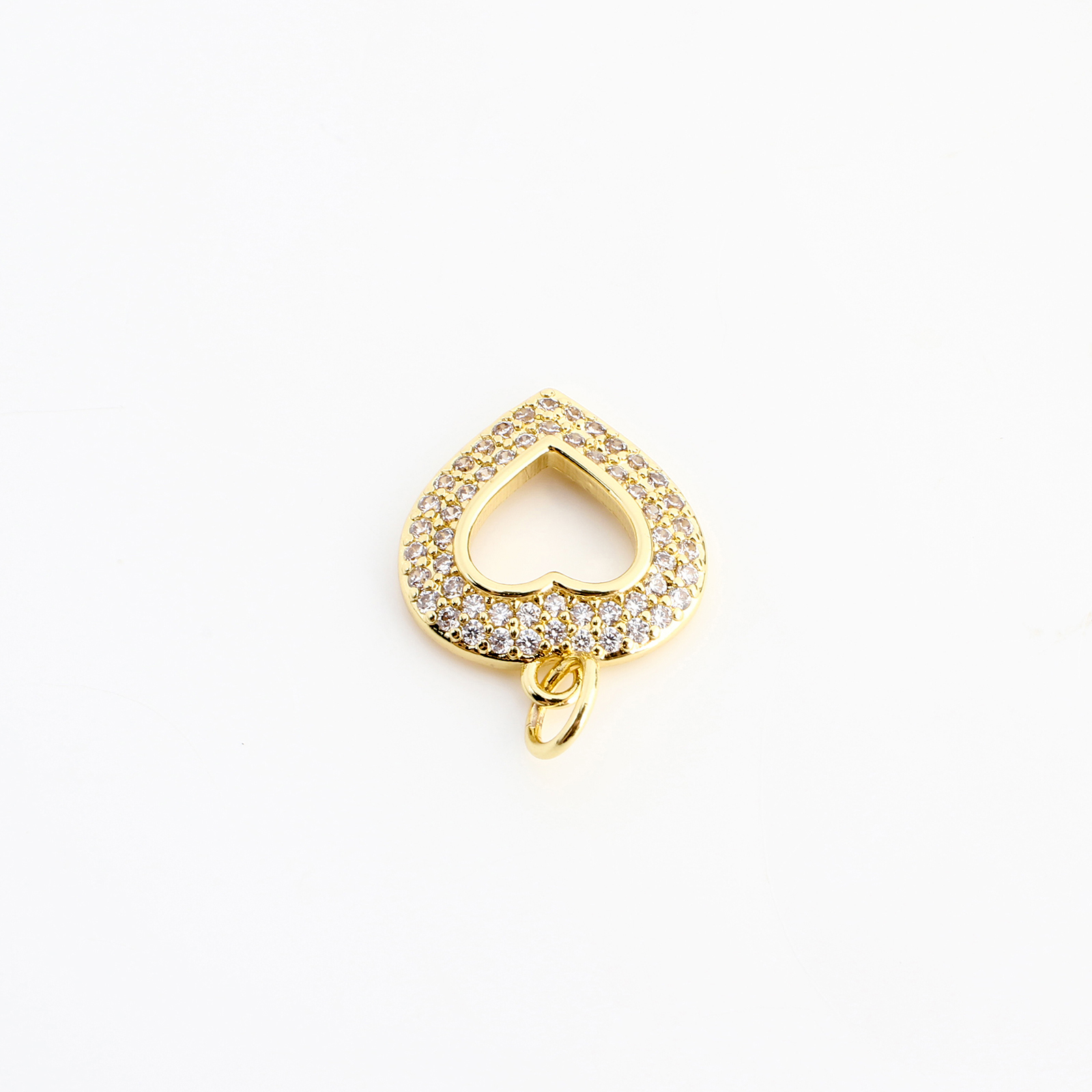 Cúbicos Circonia Colgante Latón Micro pavimenta, metal, Corazón, Bricolaje & micro arcilla de zirconia cúbica & hueco, dorado, 15x14x2mm, Vendido por UD
