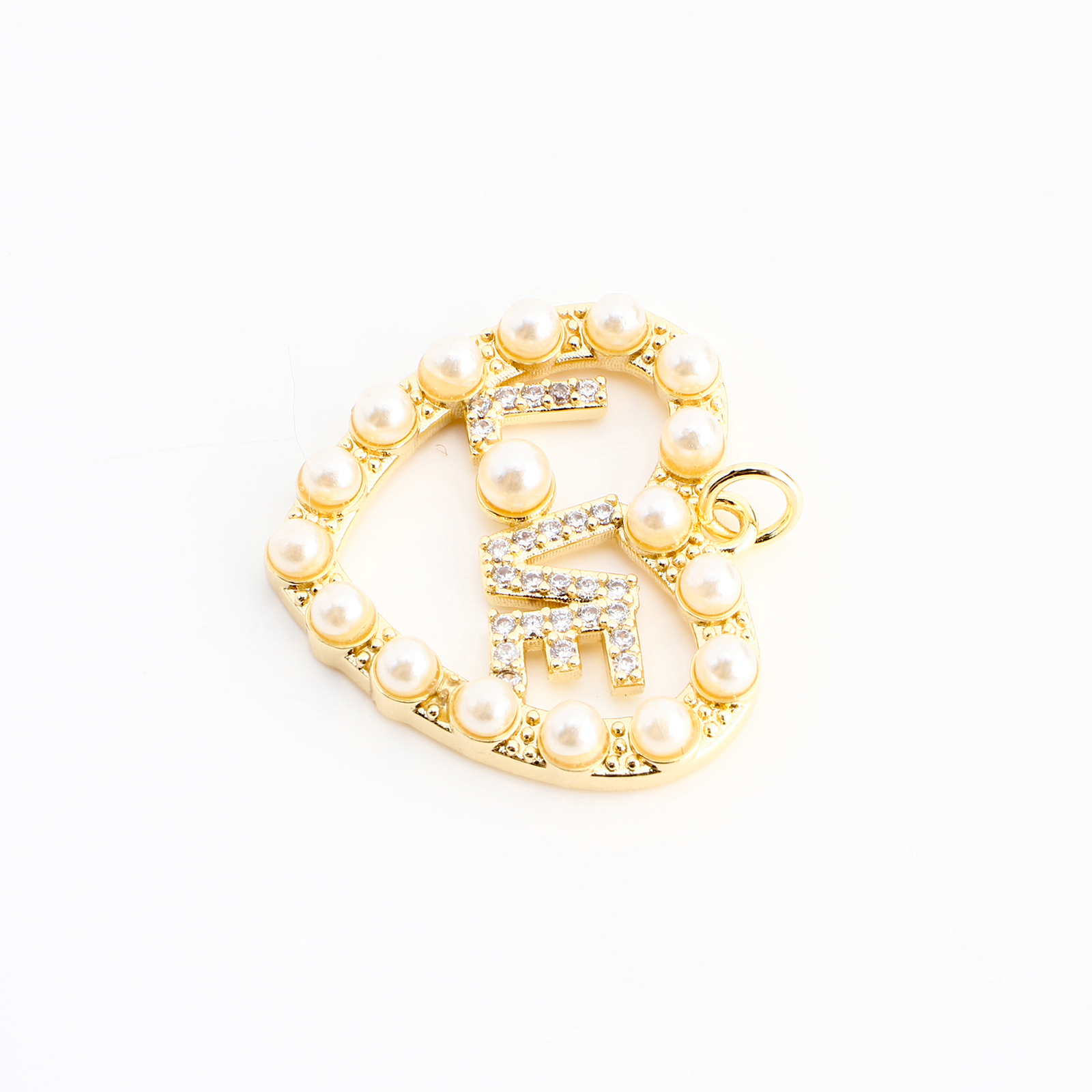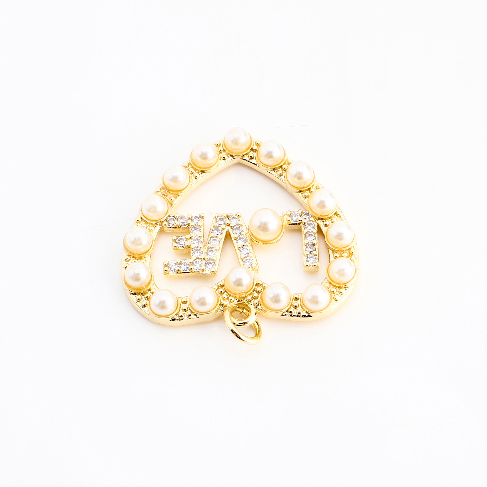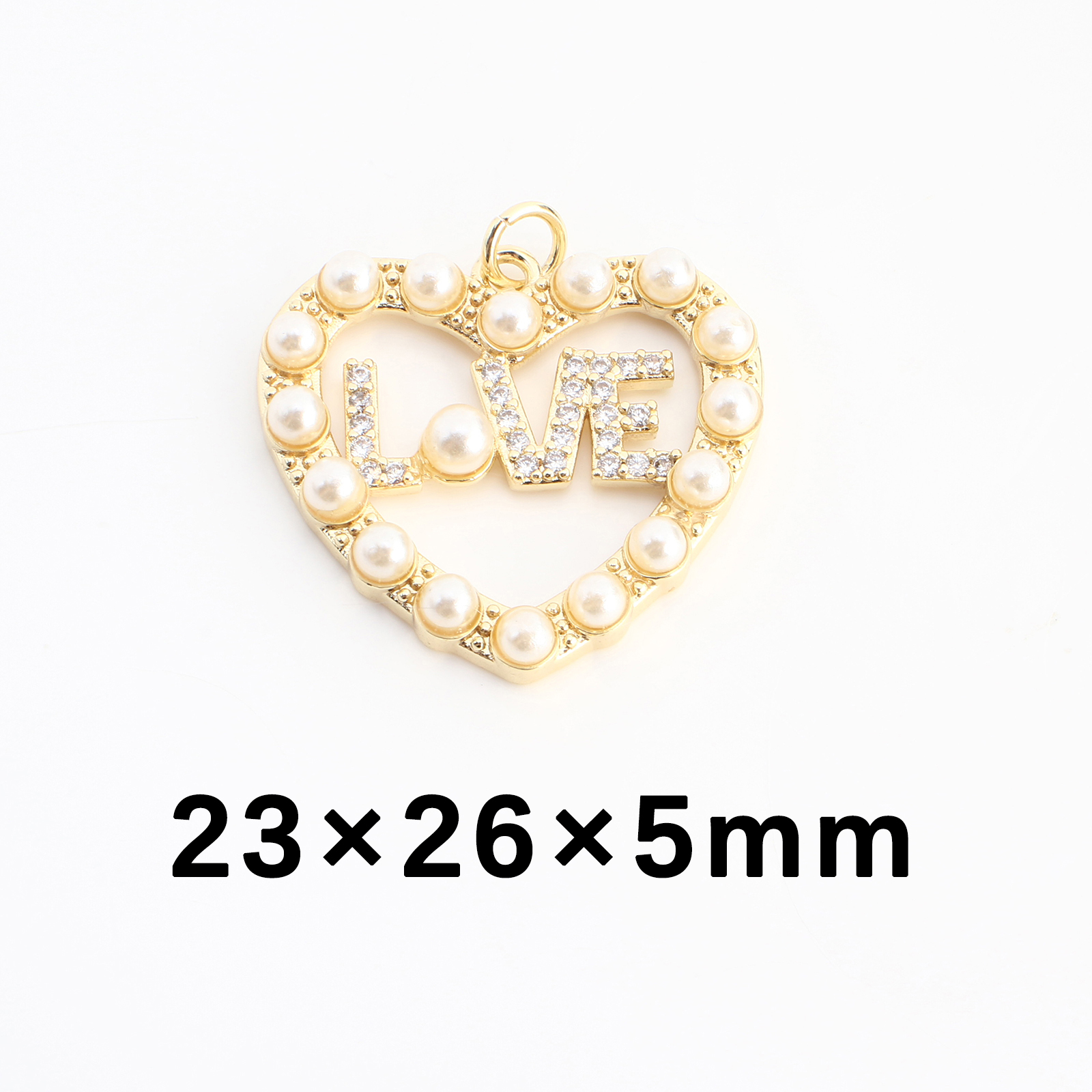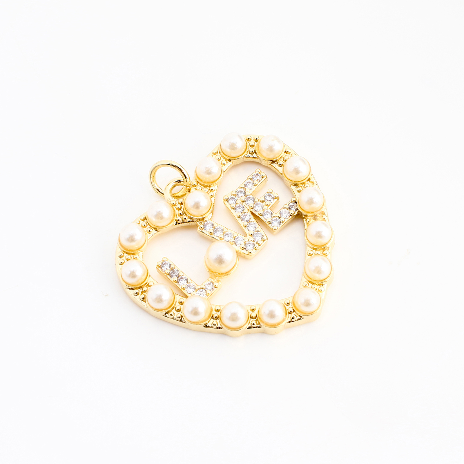 Cúbicos Circonia Colgante Latón Micro pavimenta, metal, con Perlas plásticas, Corazón, Bricolaje & micro arcilla de zirconia cúbica & hueco, dorado, 23x26x5mm, Vendido por UD