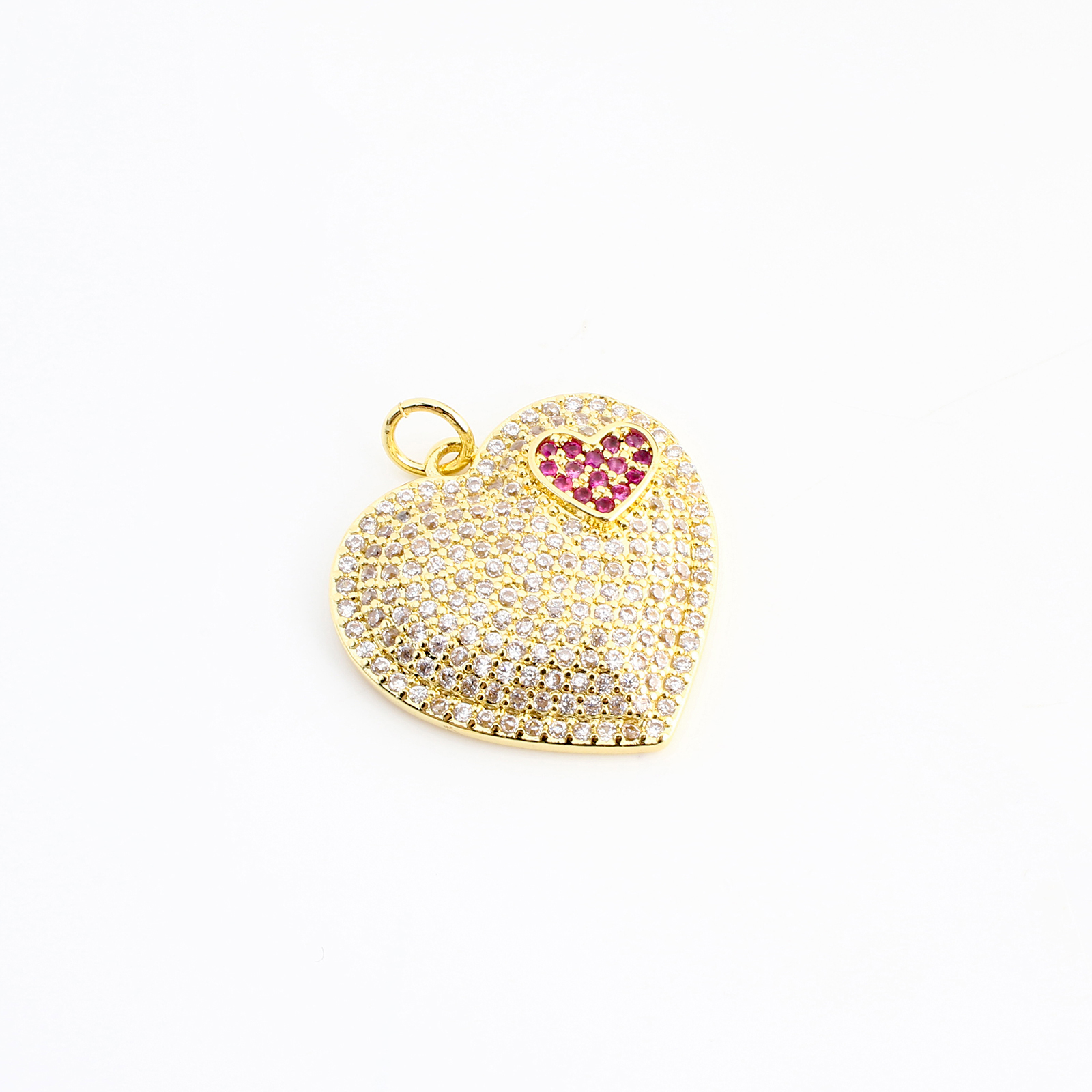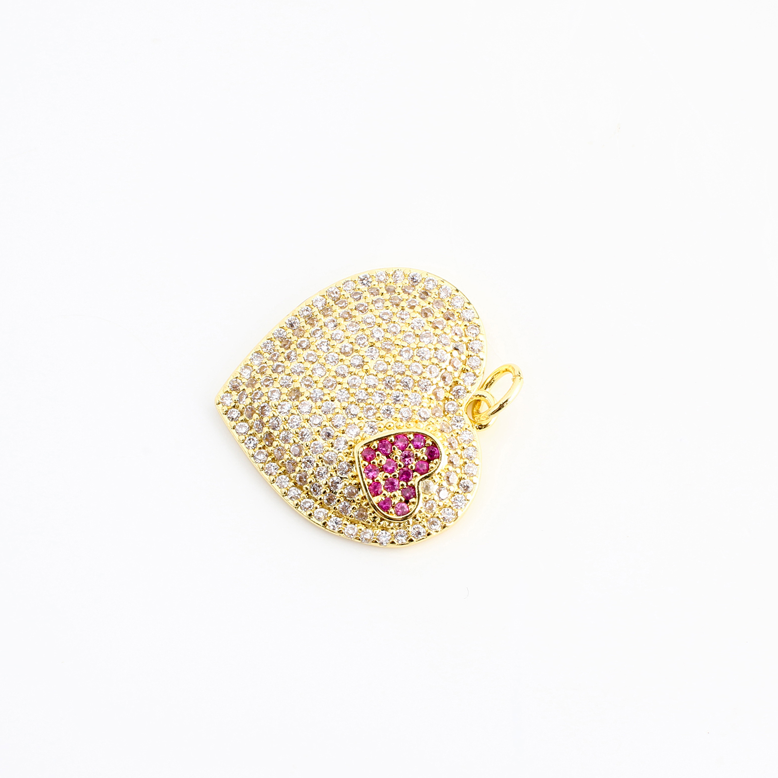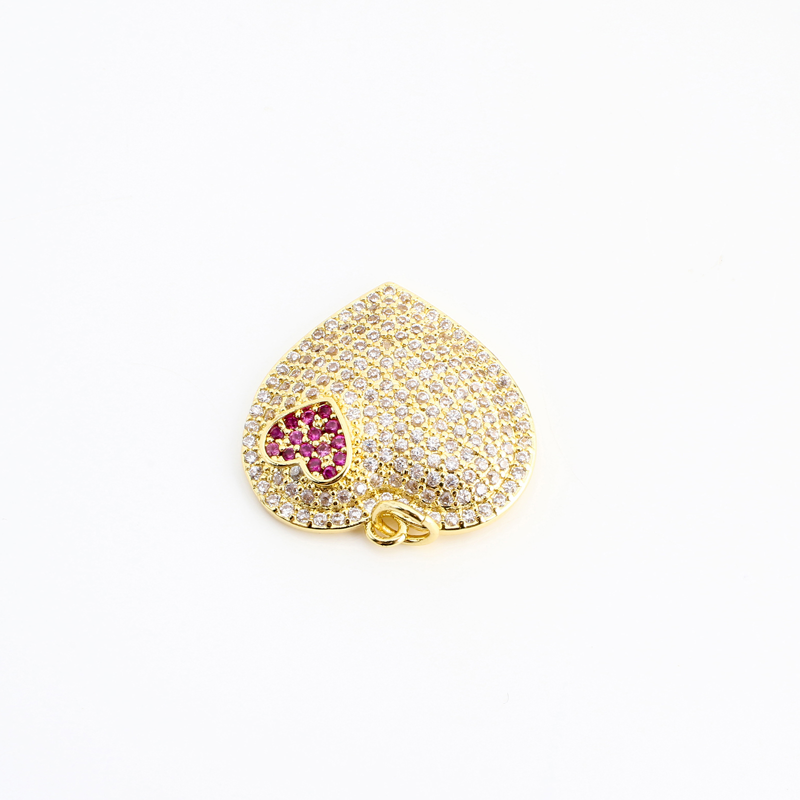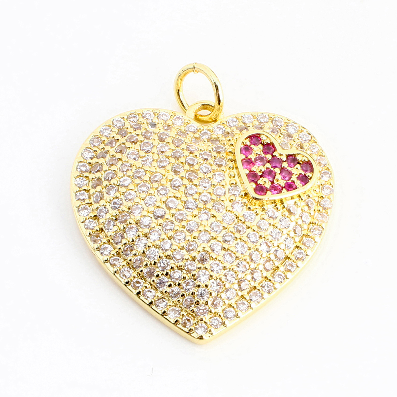 Cúbicos Circonia Colgante Latón Micro pavimenta, metal, Corazón