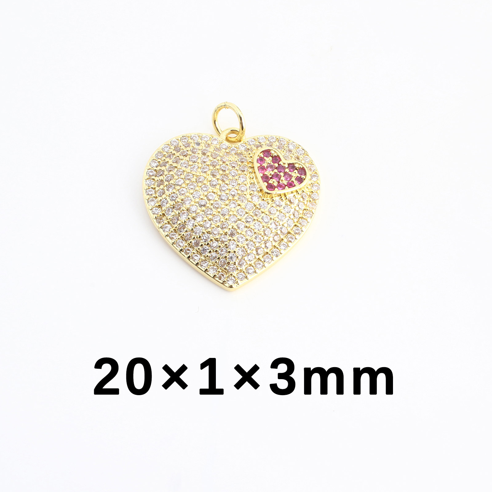 Cúbicos Circonia Colgante Latón Micro pavimenta, metal, Corazón, Bricolaje & micro arcilla de zirconia cúbica, dorado, 20x1x3mm, Vendido por UD