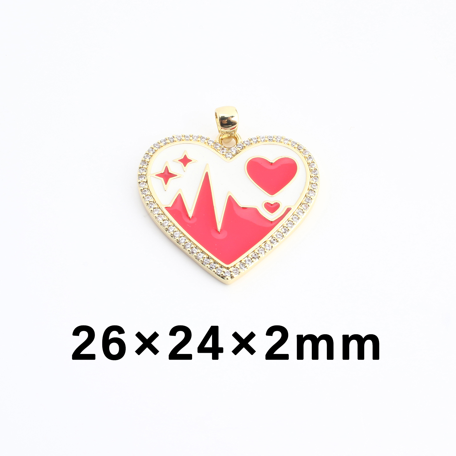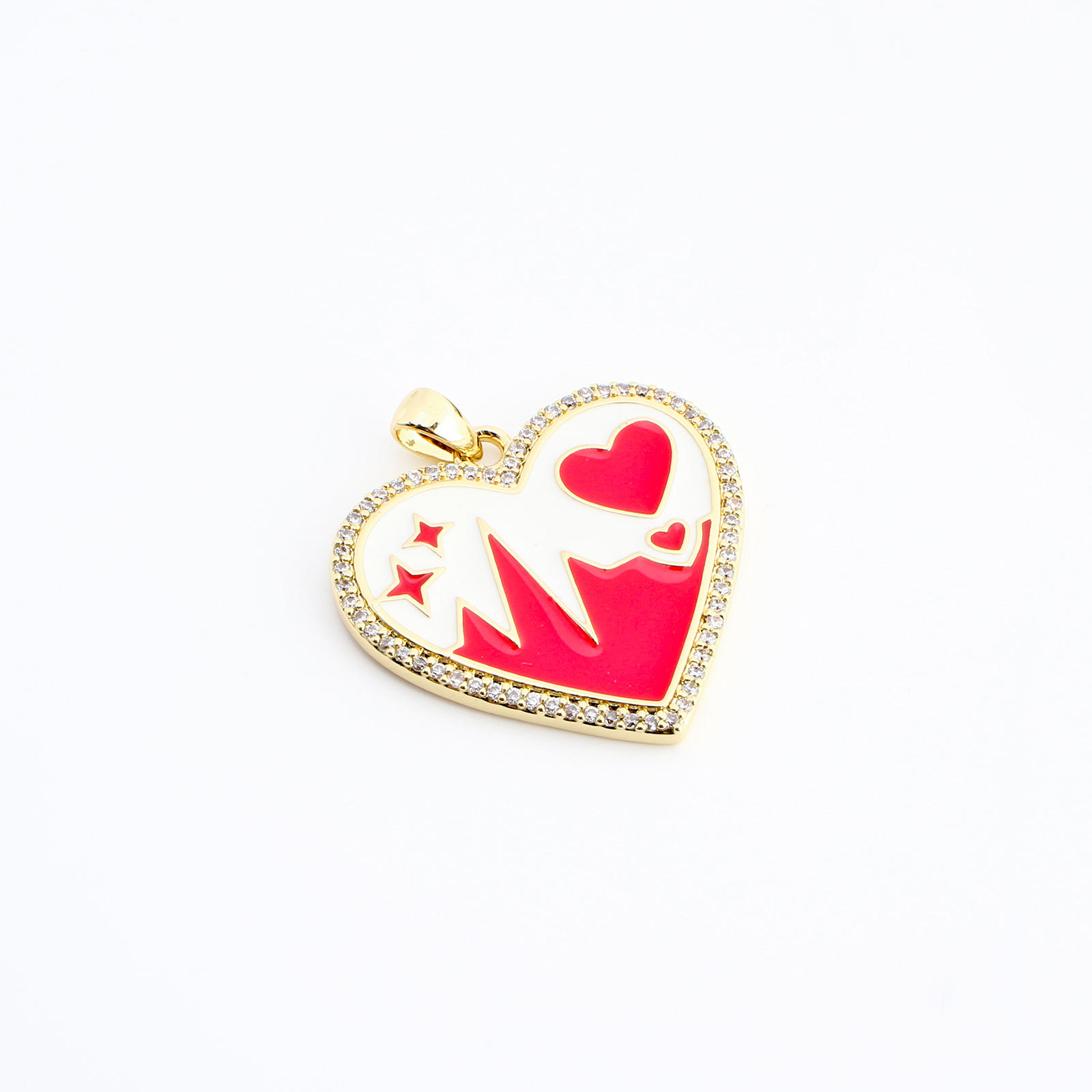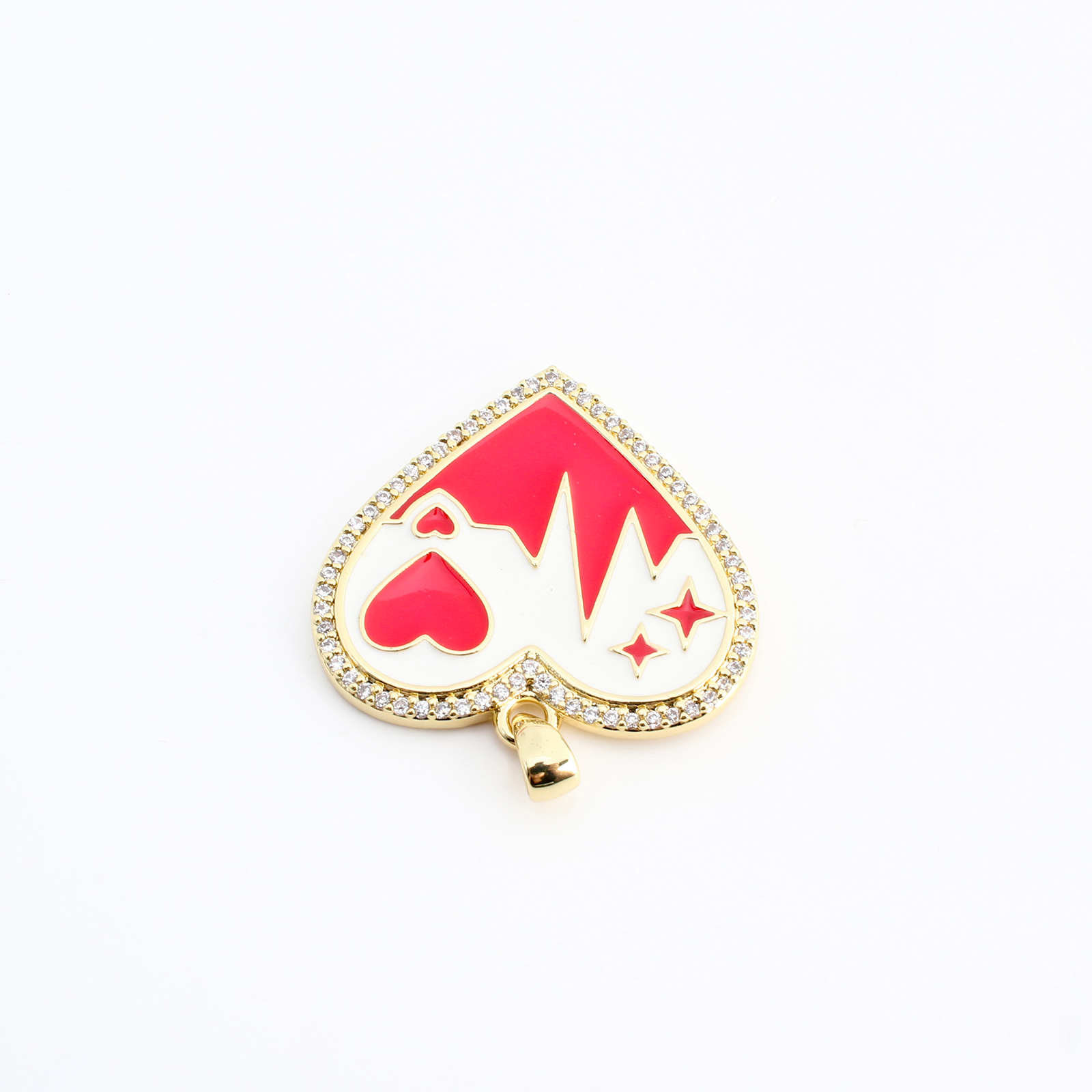 Cúbicos Circonia Colgante Latón Micro pavimenta, metal, Corazón, Bricolaje & micro arcilla de zirconia cúbica & esmalte, dorado, 26x24x2mm, Vendido por UD