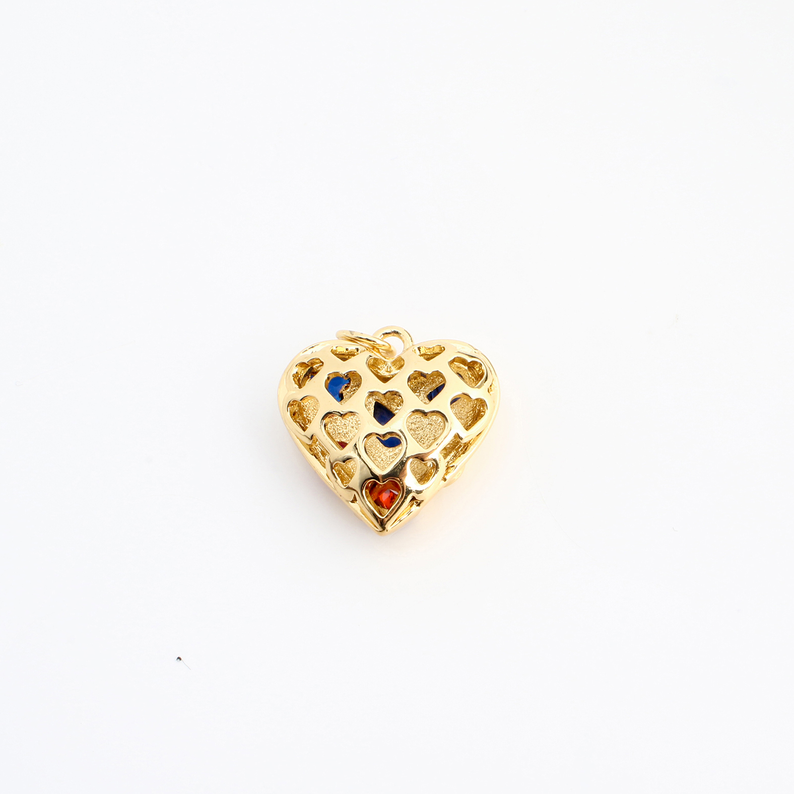 Cúbicos Circonia Colgante Latón Micro pavimenta, metal, Corazón, Bricolaje & micro arcilla de zirconia cúbica & hueco, dorado, 18x18x7mm, Vendido por UD
