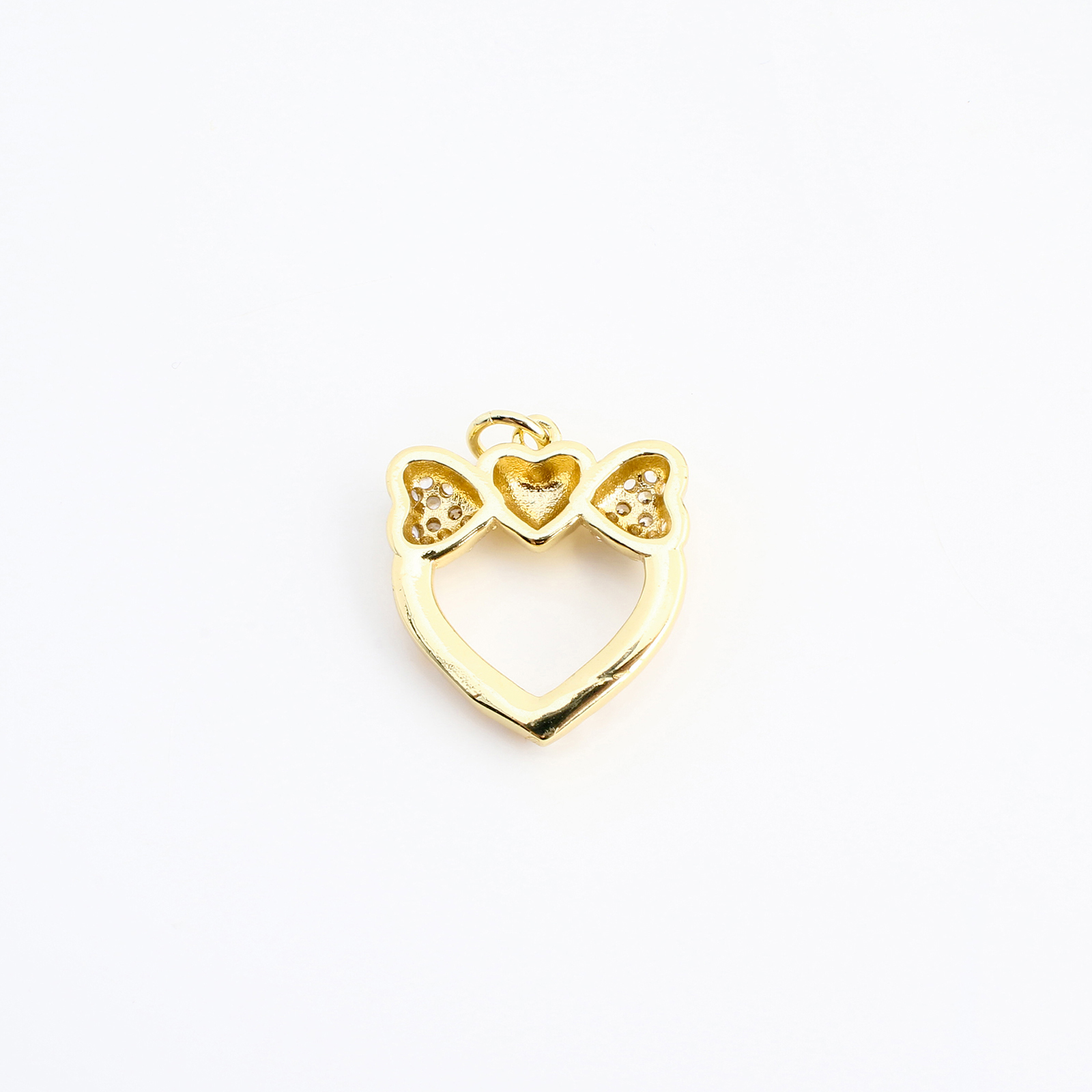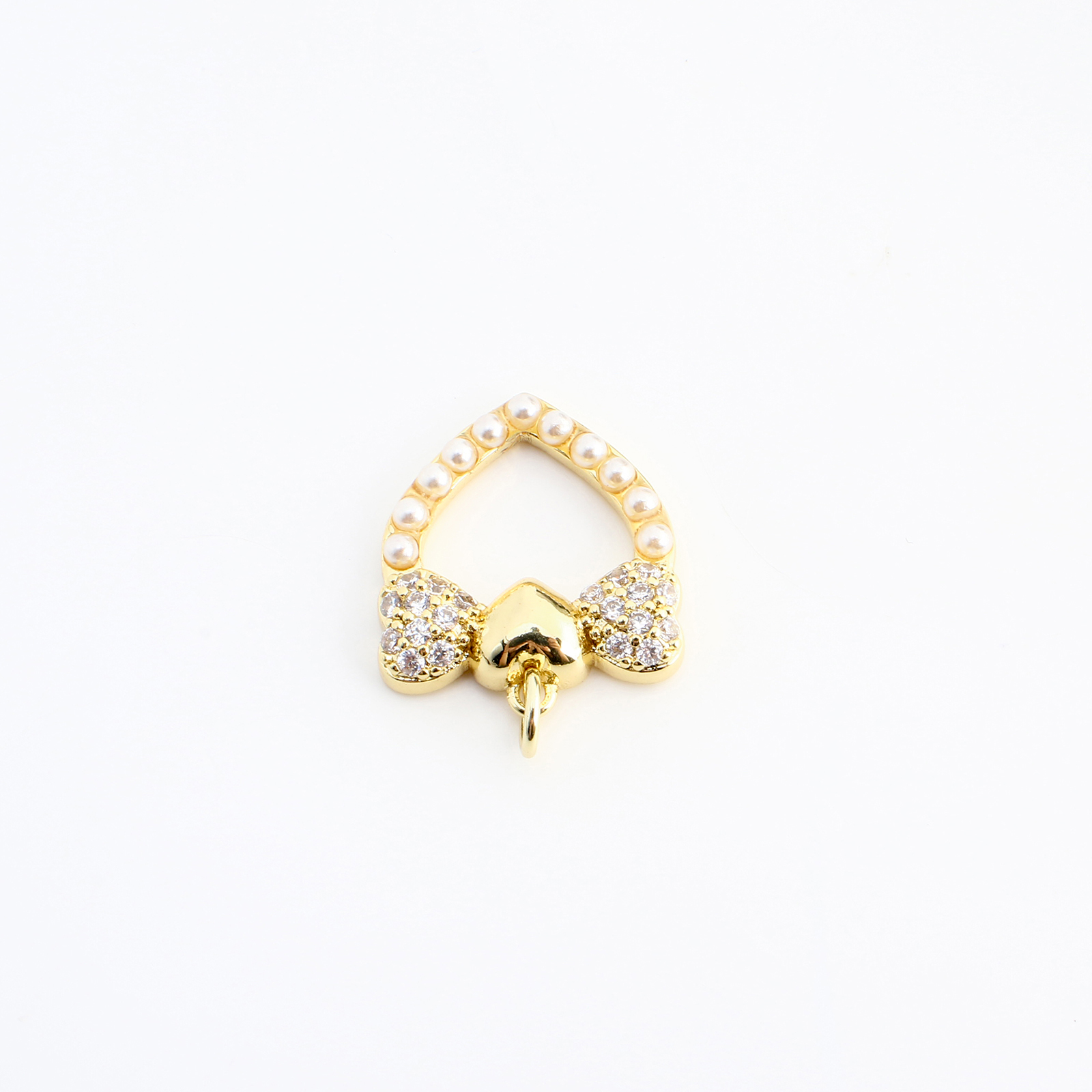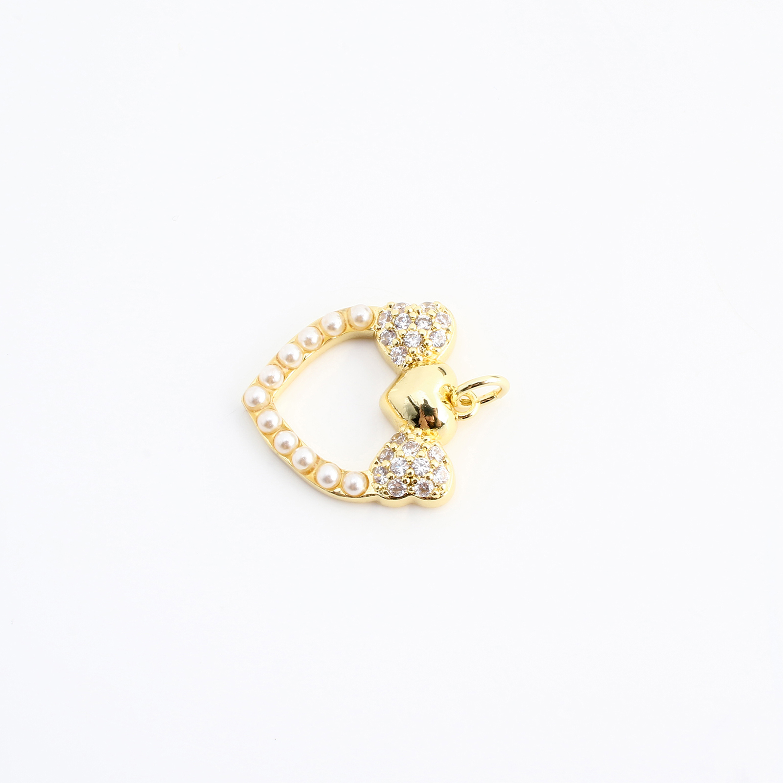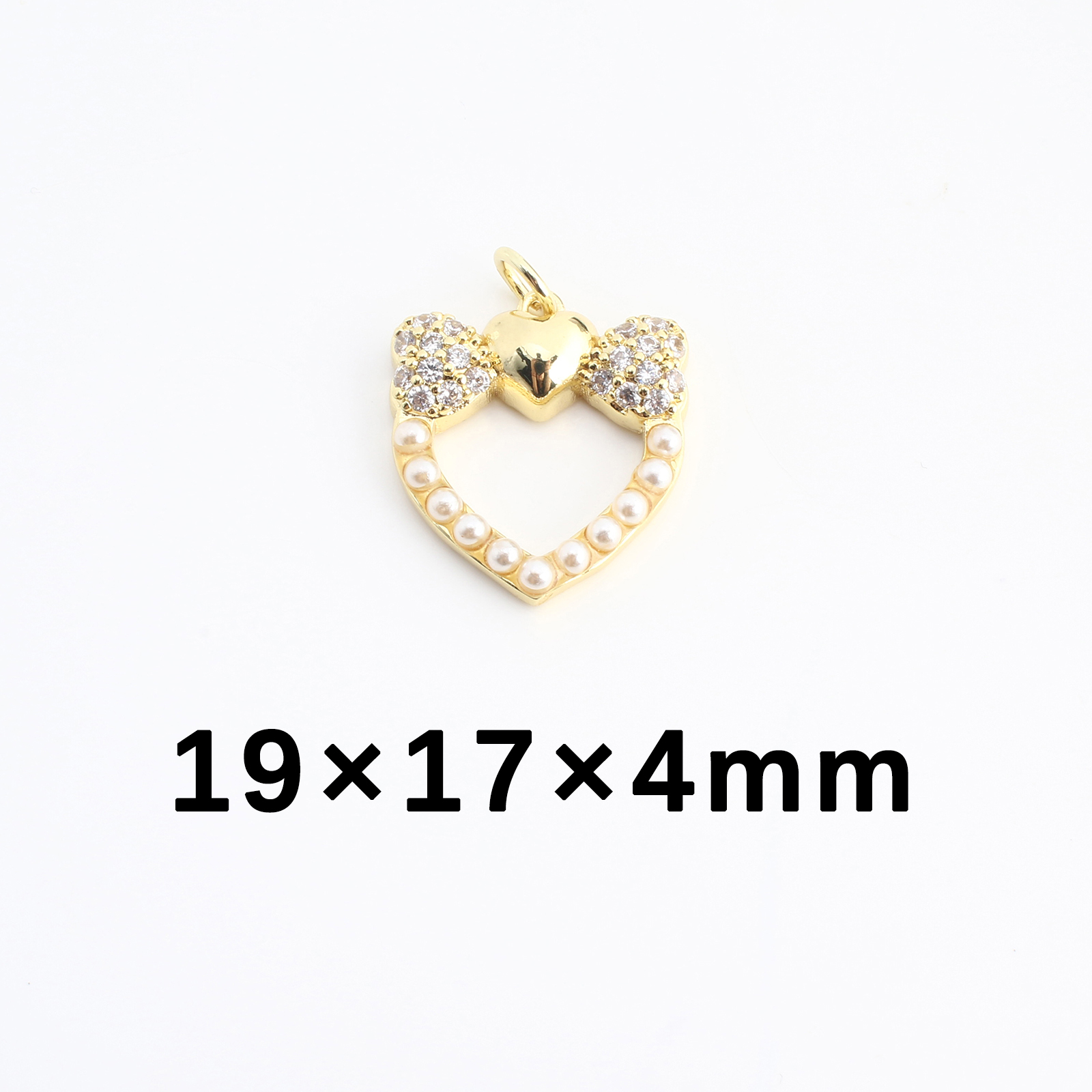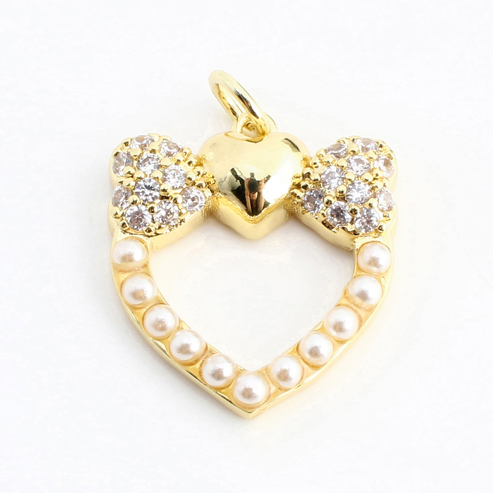 Cúbicos Circonia Colgante Latón Micro pavimenta, metal, con Perlas plásticas, Corazón, Bricolaje & micro arcilla de zirconia cúbica & hueco, dorado, 19x17x4mm, Vendido por UD