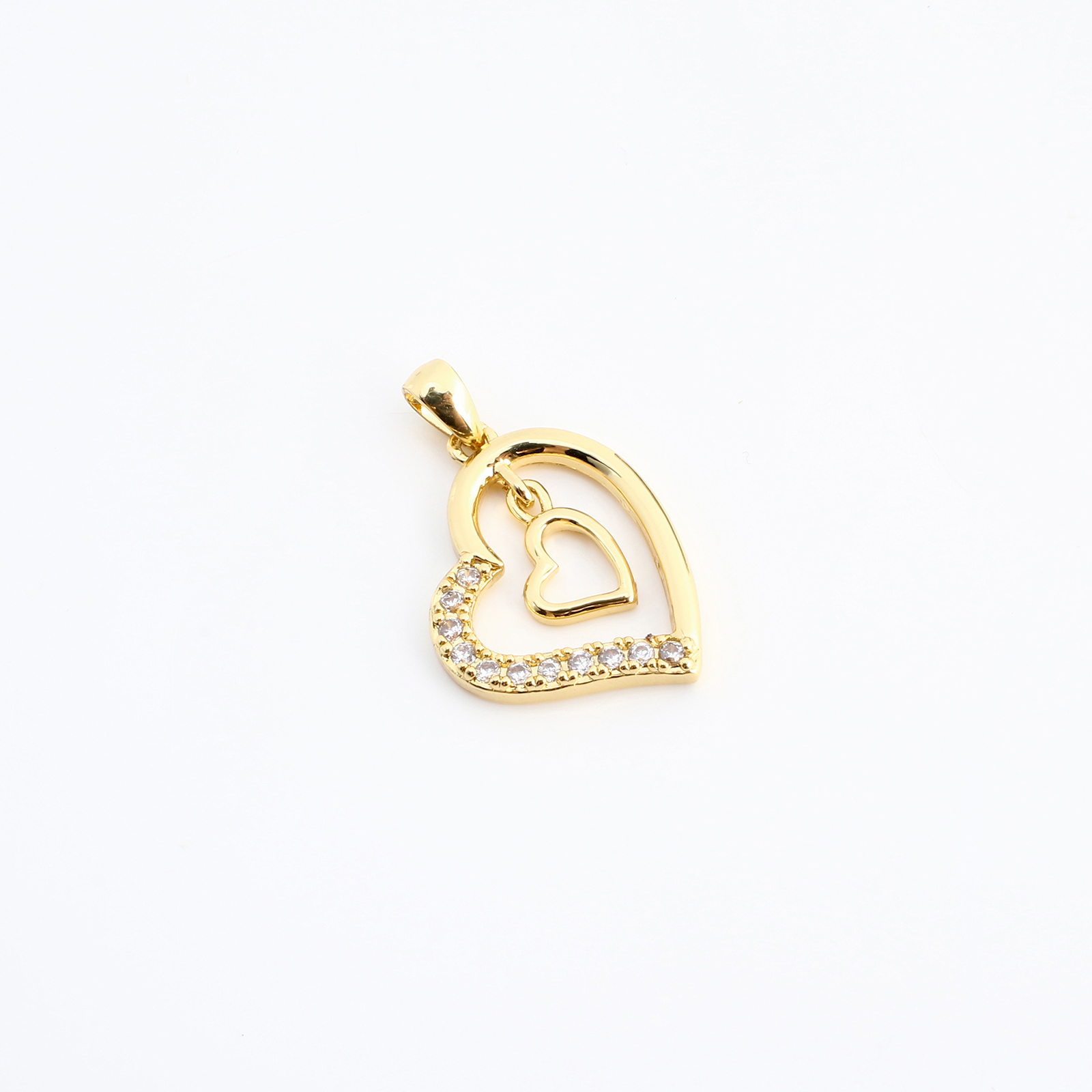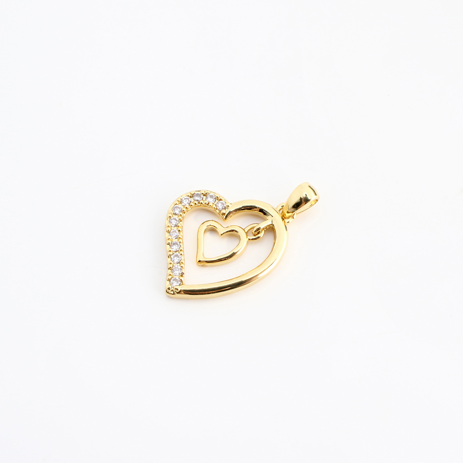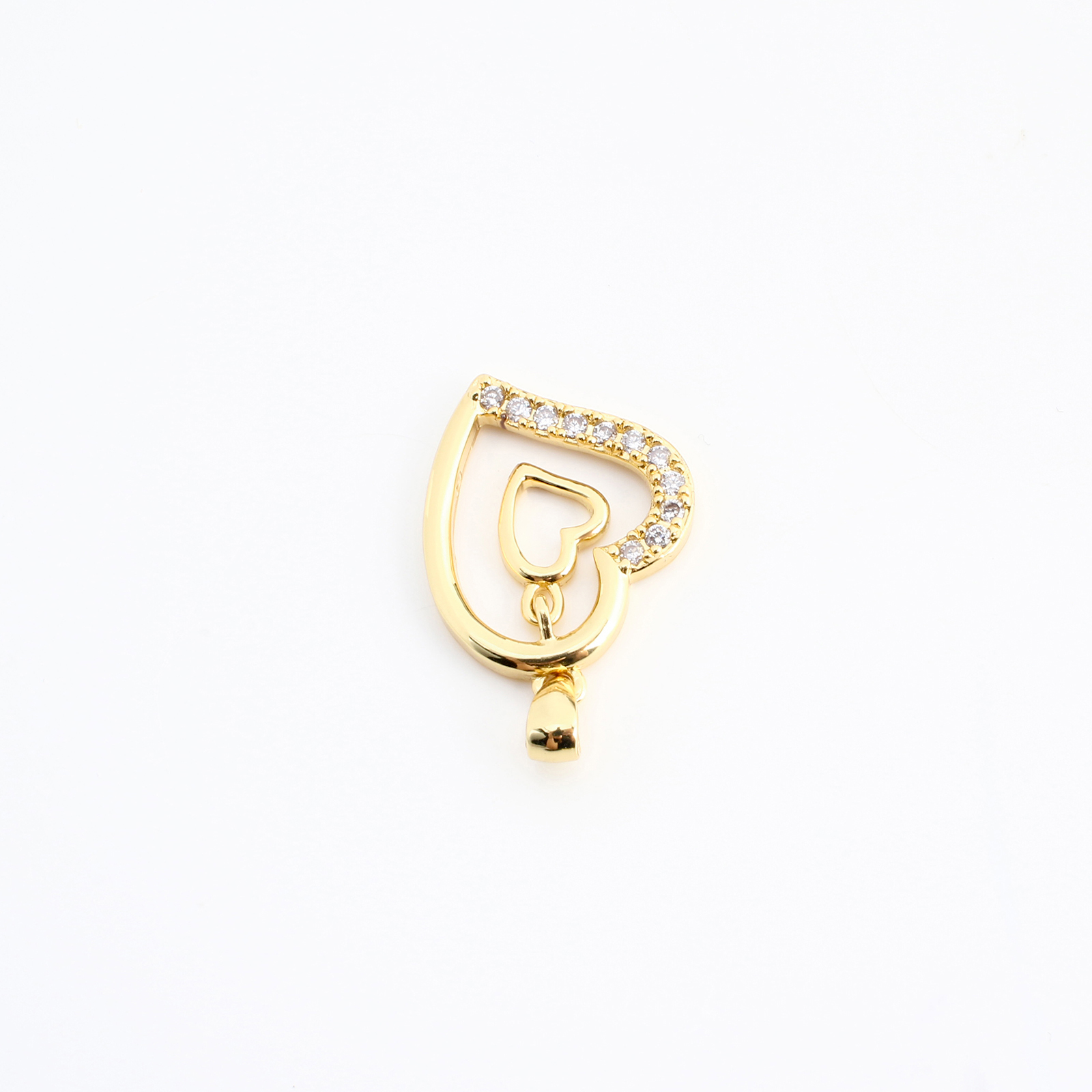 Cúbicos Circonia Colgante Latón Micro pavimenta, metal, Corazón, Bricolaje & micro arcilla de zirconia cúbica & hueco, dorado, 25x17x2mm, Vendido por UD