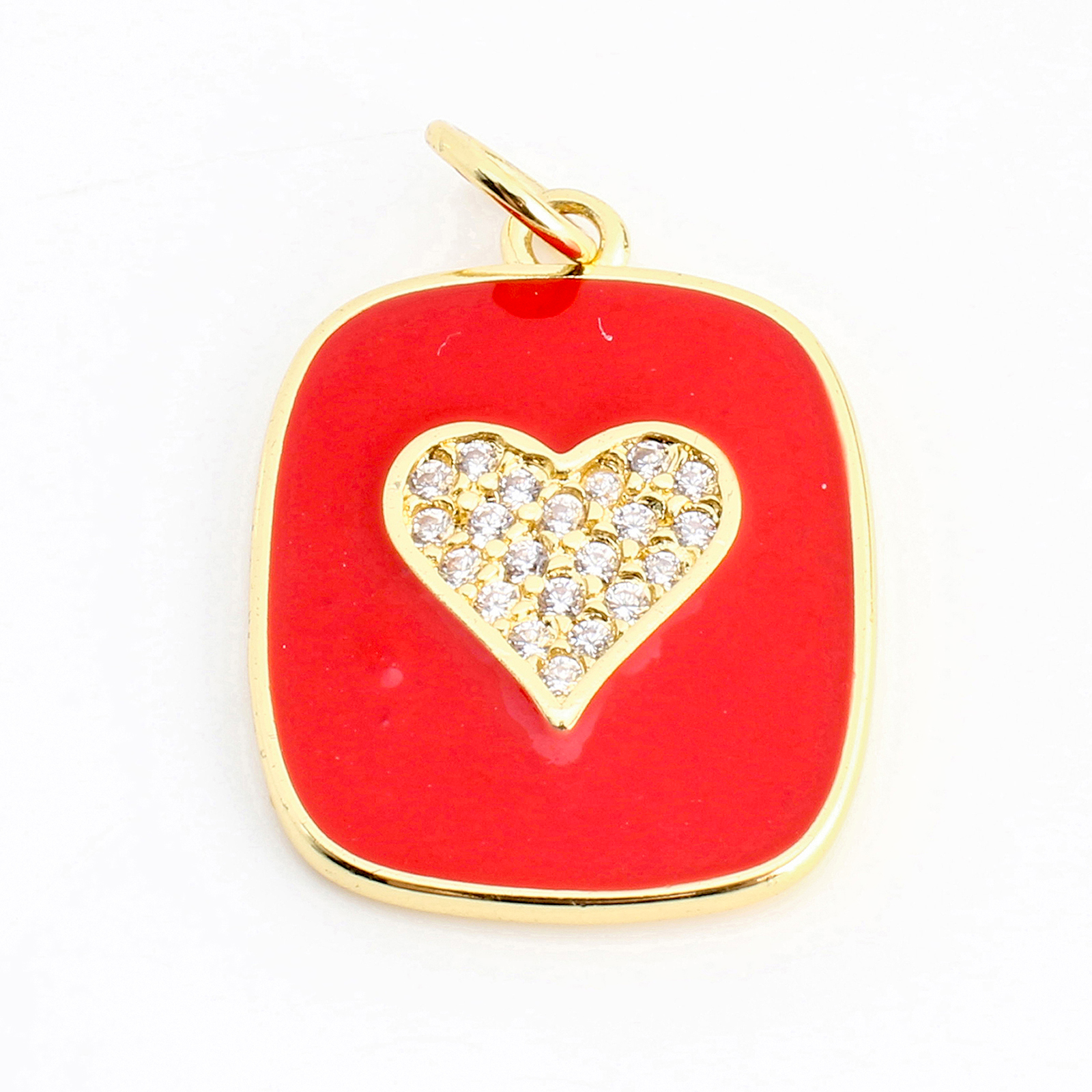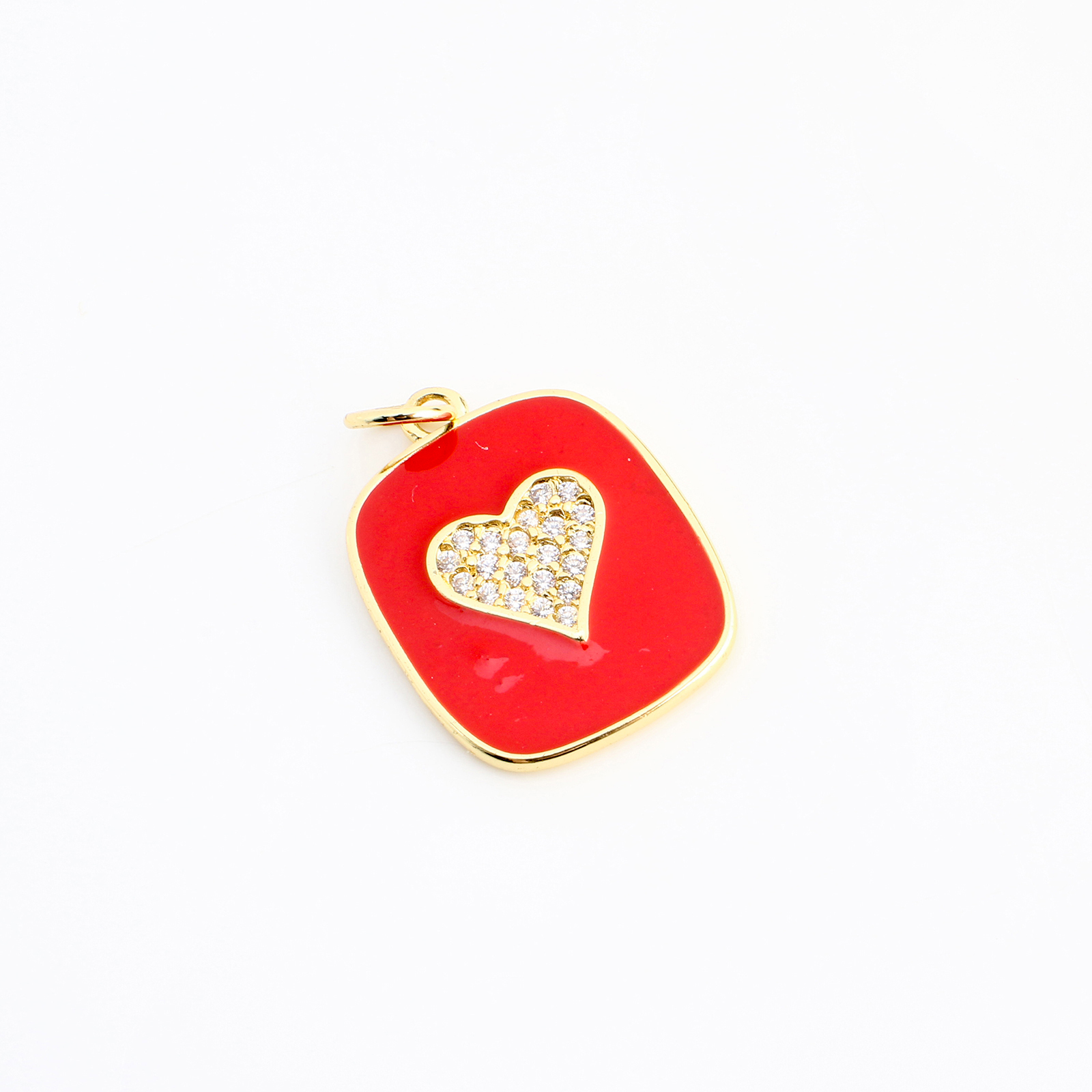Cúbicos Circonia Colgante Latón Micro pavimenta, metal, Corazón, chapado en color dorado, Bricolaje & micro arcilla de zirconia cúbica & esmalte, 19x15x1mm, Vendido por UD