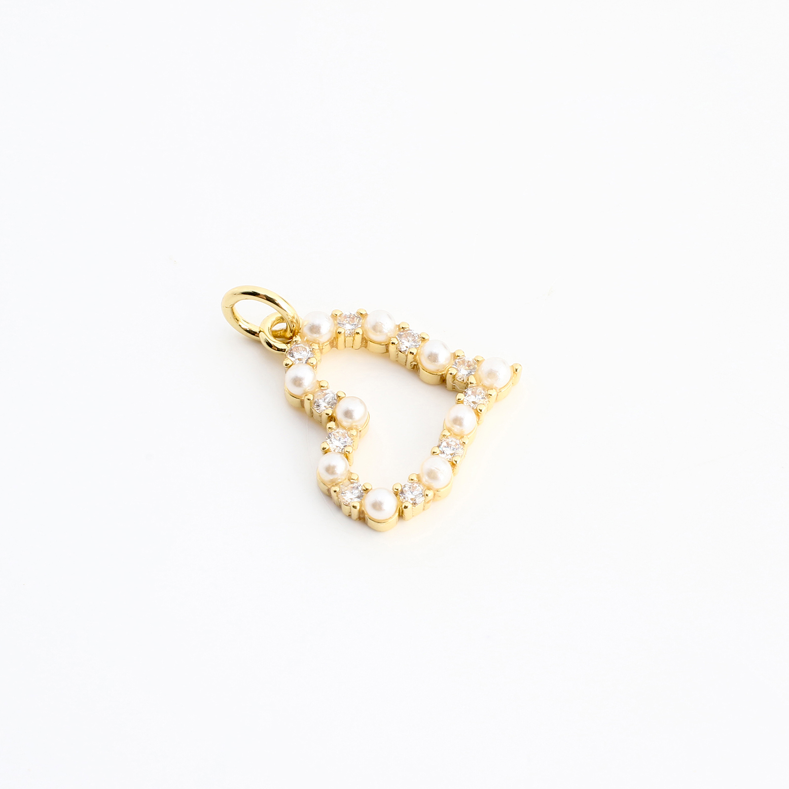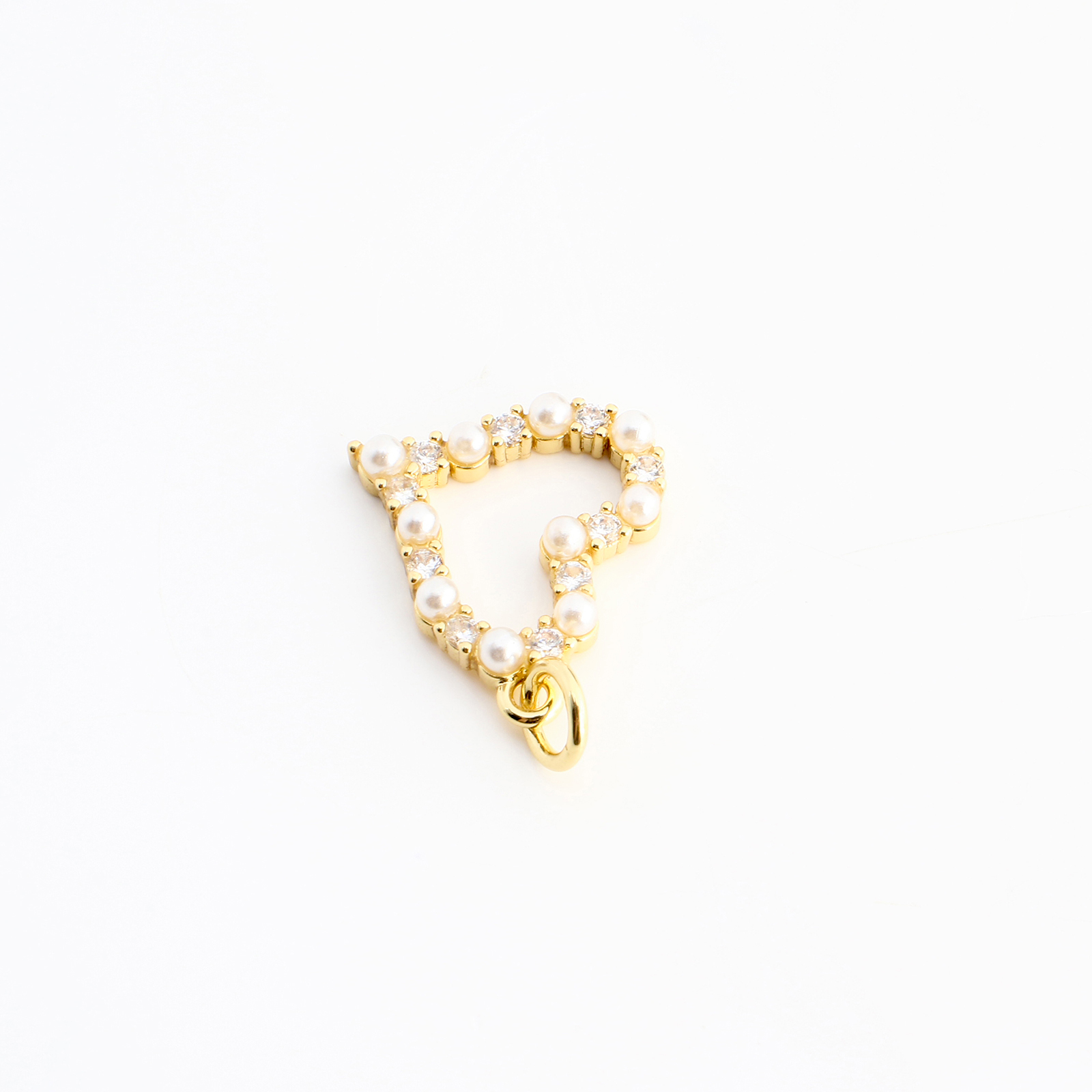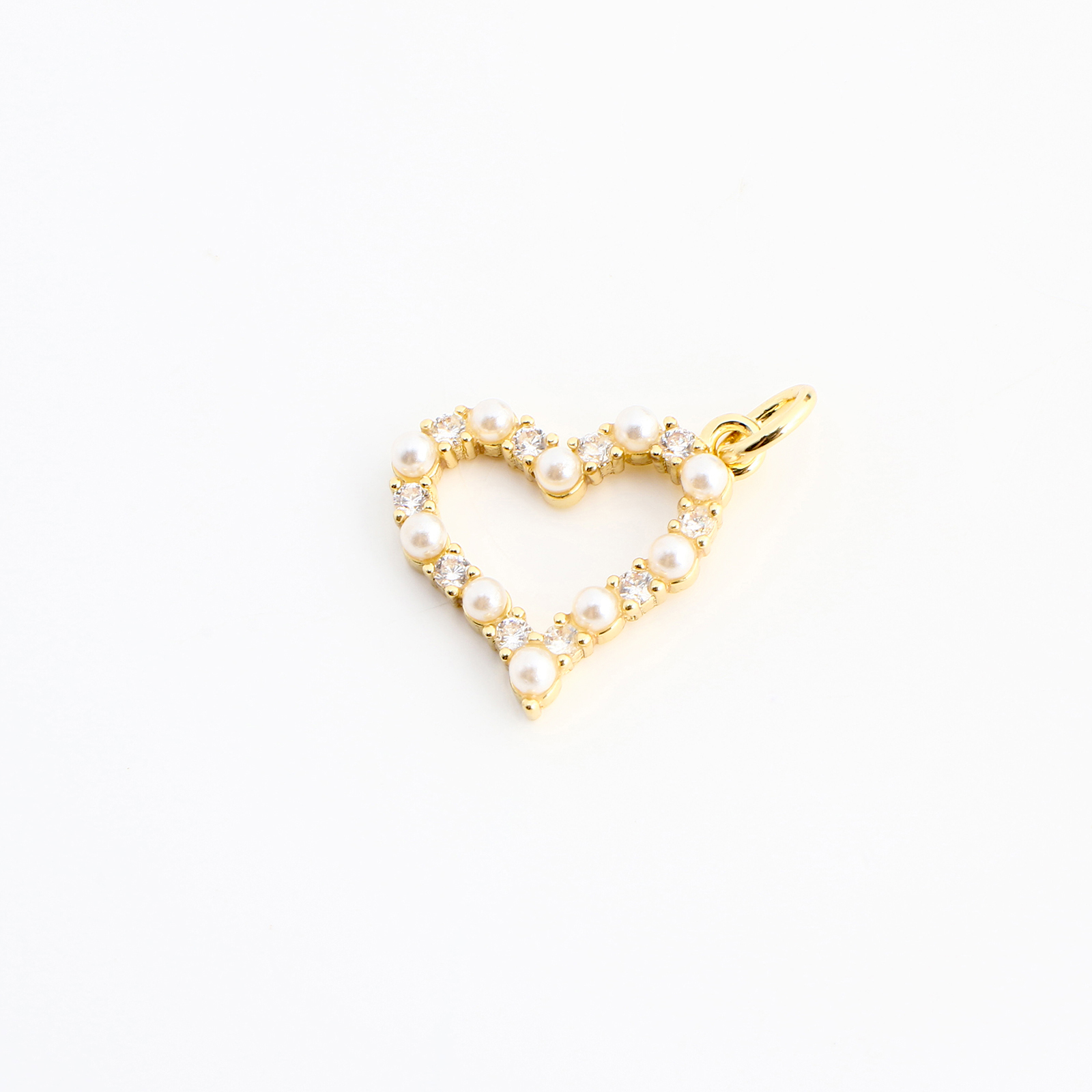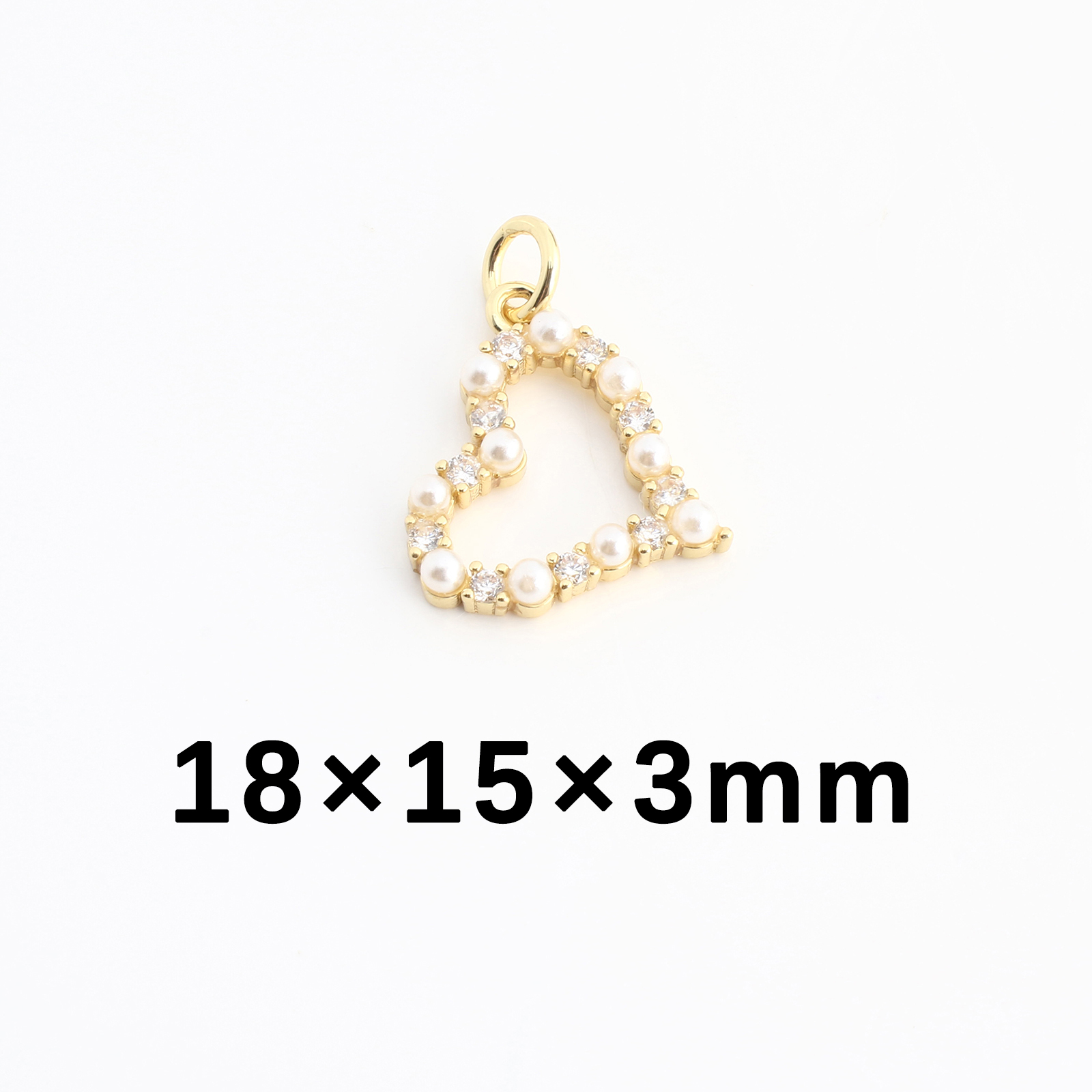 Cúbicos Circonia Colgante Latón Micro pavimenta, metal, con Perlas plásticas, Corazón, Bricolaje & micro arcilla de zirconia cúbica & hueco, dorado, 18x15x3mm, Vendido por UD