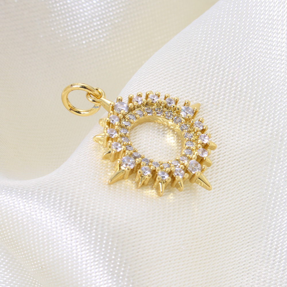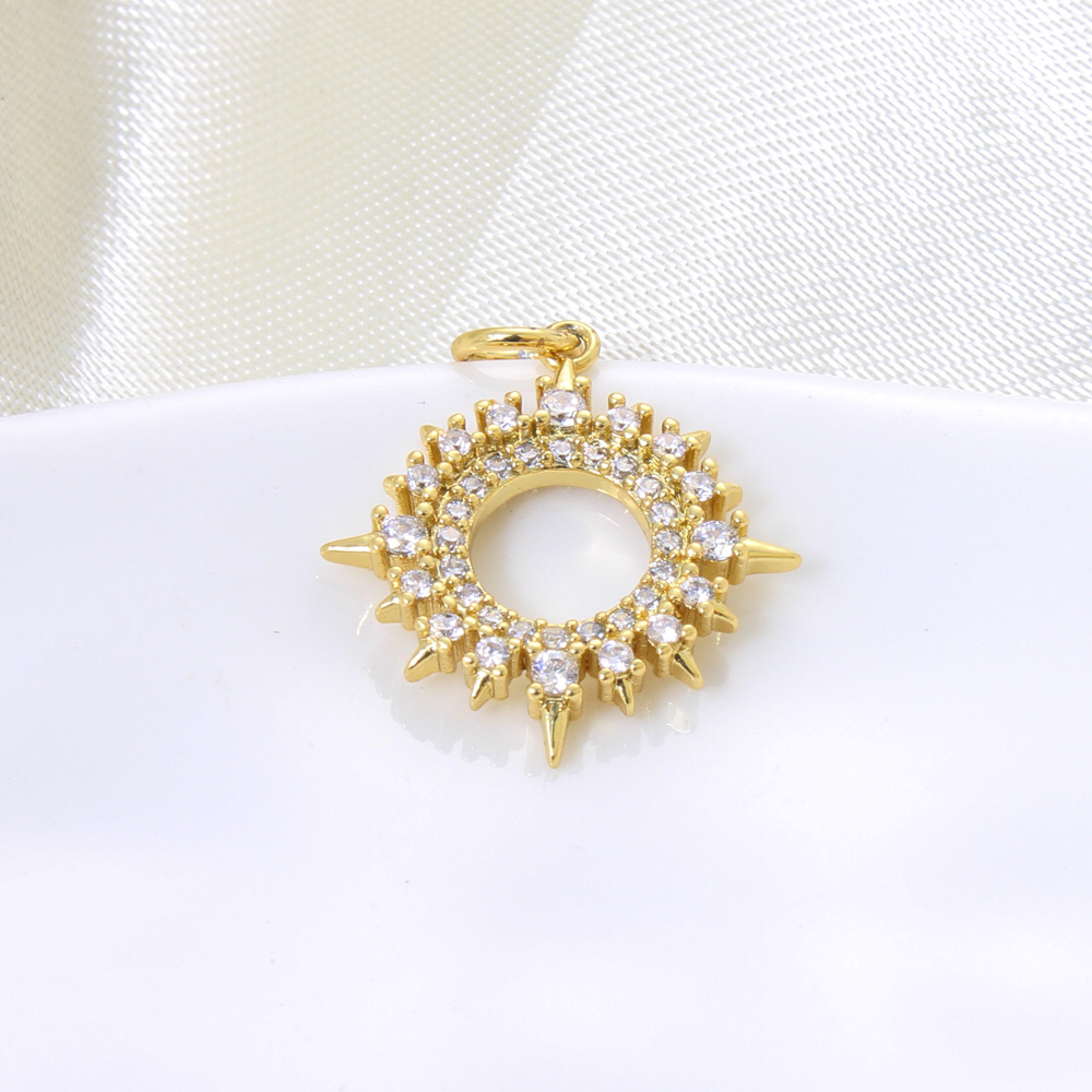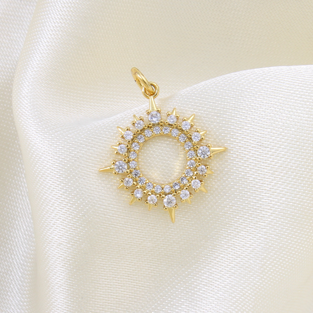 Cúbicos Circonia Colgante Latón Micro pavimenta, metal, sol, chapado, Bricolaje & micro arcilla de zirconia cúbica, más colores para la opción, libre de níquel, plomo & cadmio, 19.40x17.50x2.30mm, Vendido por UD