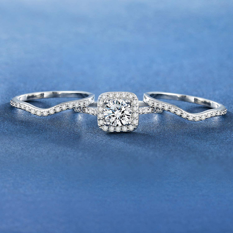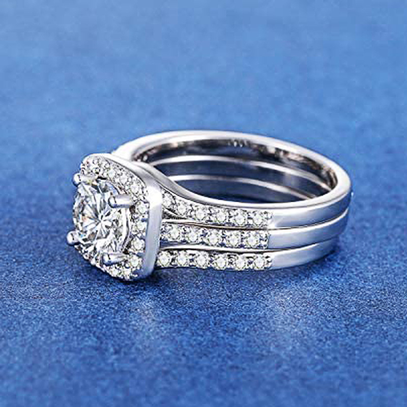 Cúbicos Circonia Micro Pave anillo de latón, metal, chapado, tres piezas & diverso tamaño para la opción & micro arcilla de zirconia cúbica & para mujer, Vendido por Set