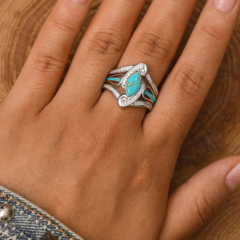 Cúbicos Circonia Micro Pave anillo de latón, metal, con Turquesa sintético, chapado, diverso tamaño para la opción & micro arcilla de zirconia cúbica & para mujer & esmalte & hueco, Vendido por UD