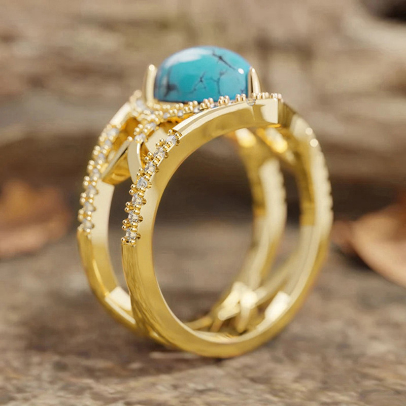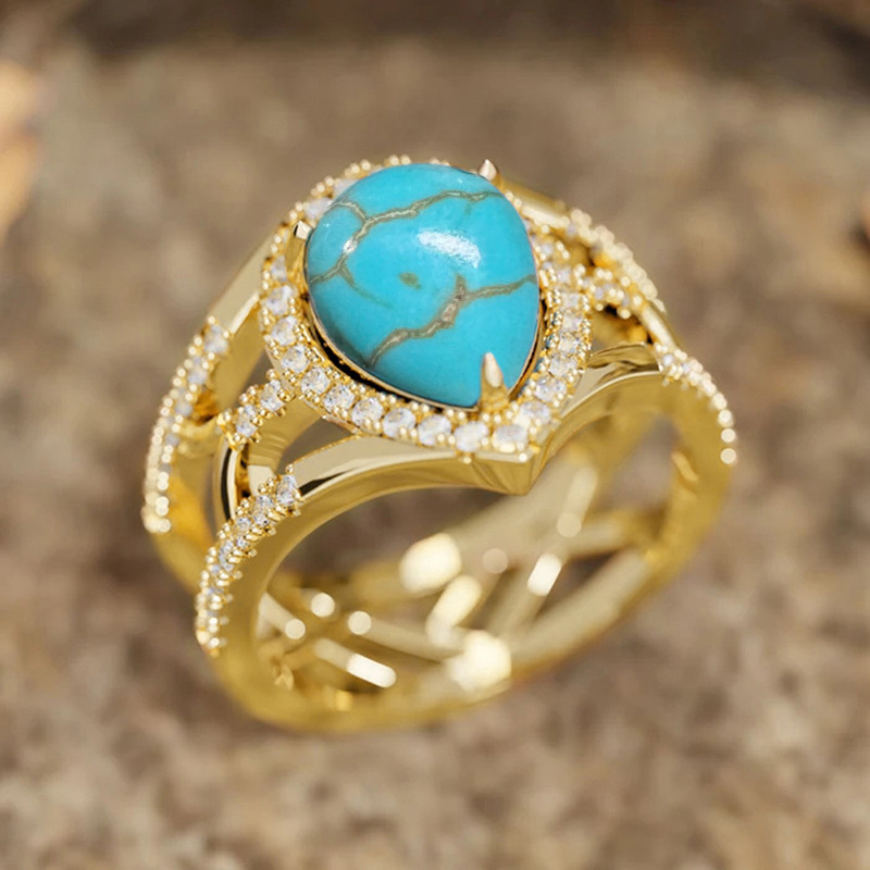 Cúbicos Circonia Micro Pave anillo de latón, metal, con Turquesa sintético, chapado, diverso tamaño para la opción & micro arcilla de zirconia cúbica & para mujer & hueco, Vendido por UD