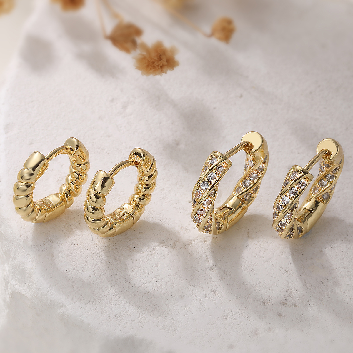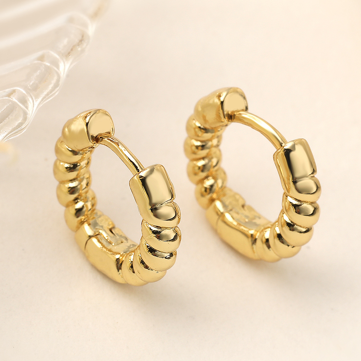 metal Huggie Pendiente aro de la gota, Cuadrado, chapado en color dorado