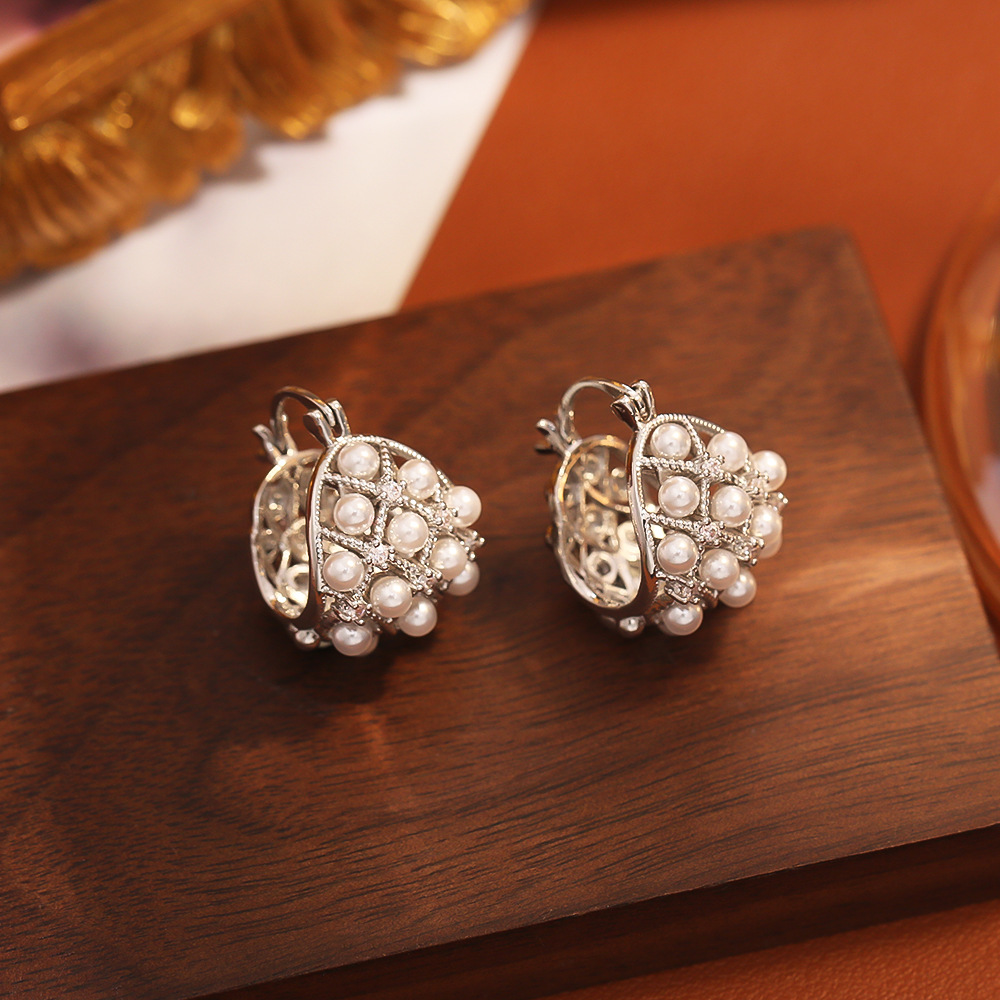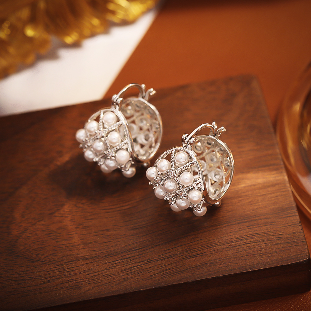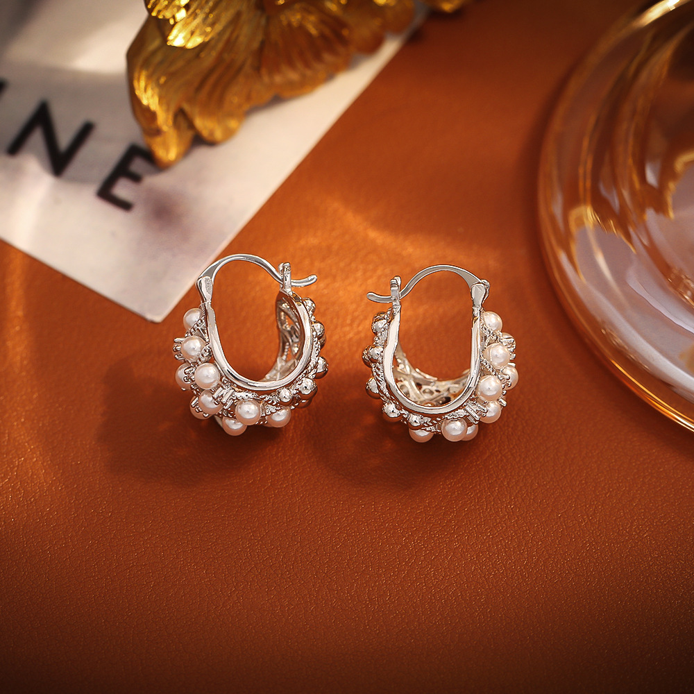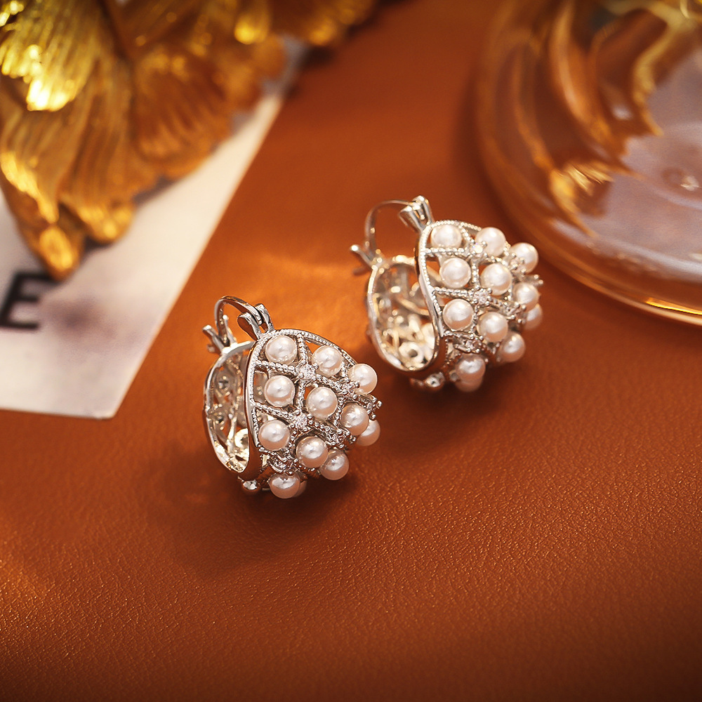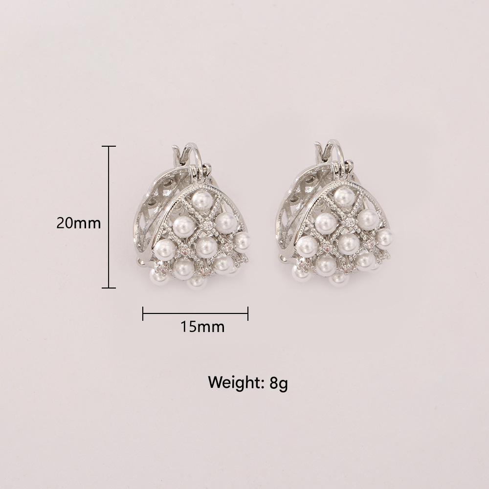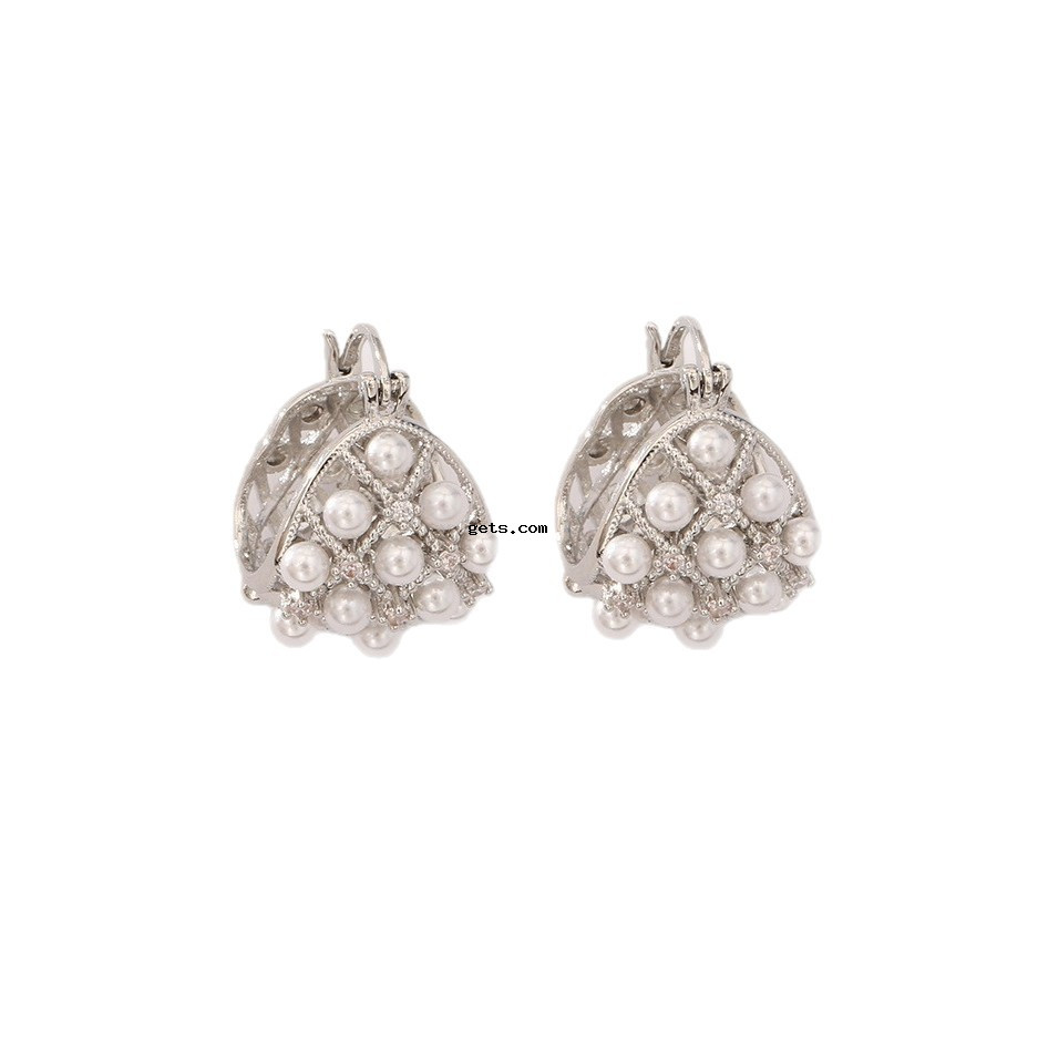 Cúbicos Circonia Pendiente Latón Micro pavimenta, metal, con Perlas plásticas, chapado, micro arcilla de zirconia cúbica & para mujer & hueco, plateado, Vendido por Par