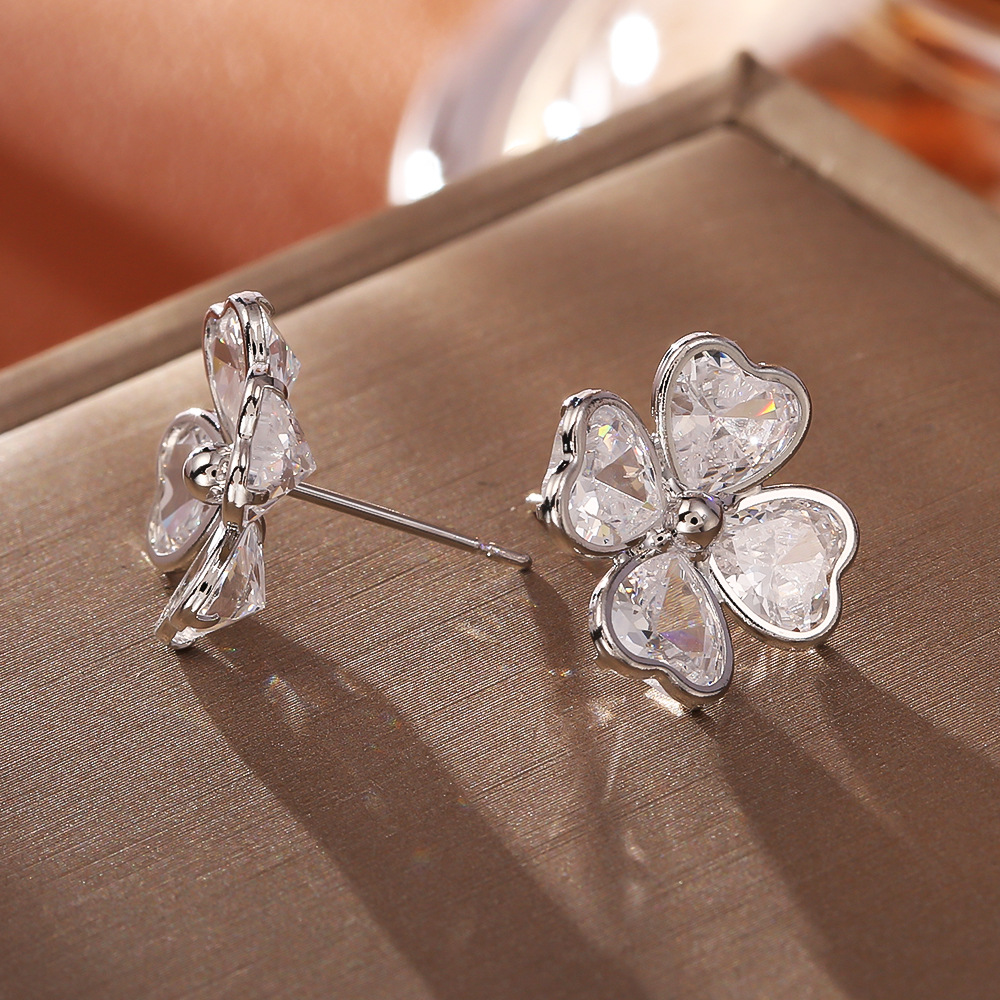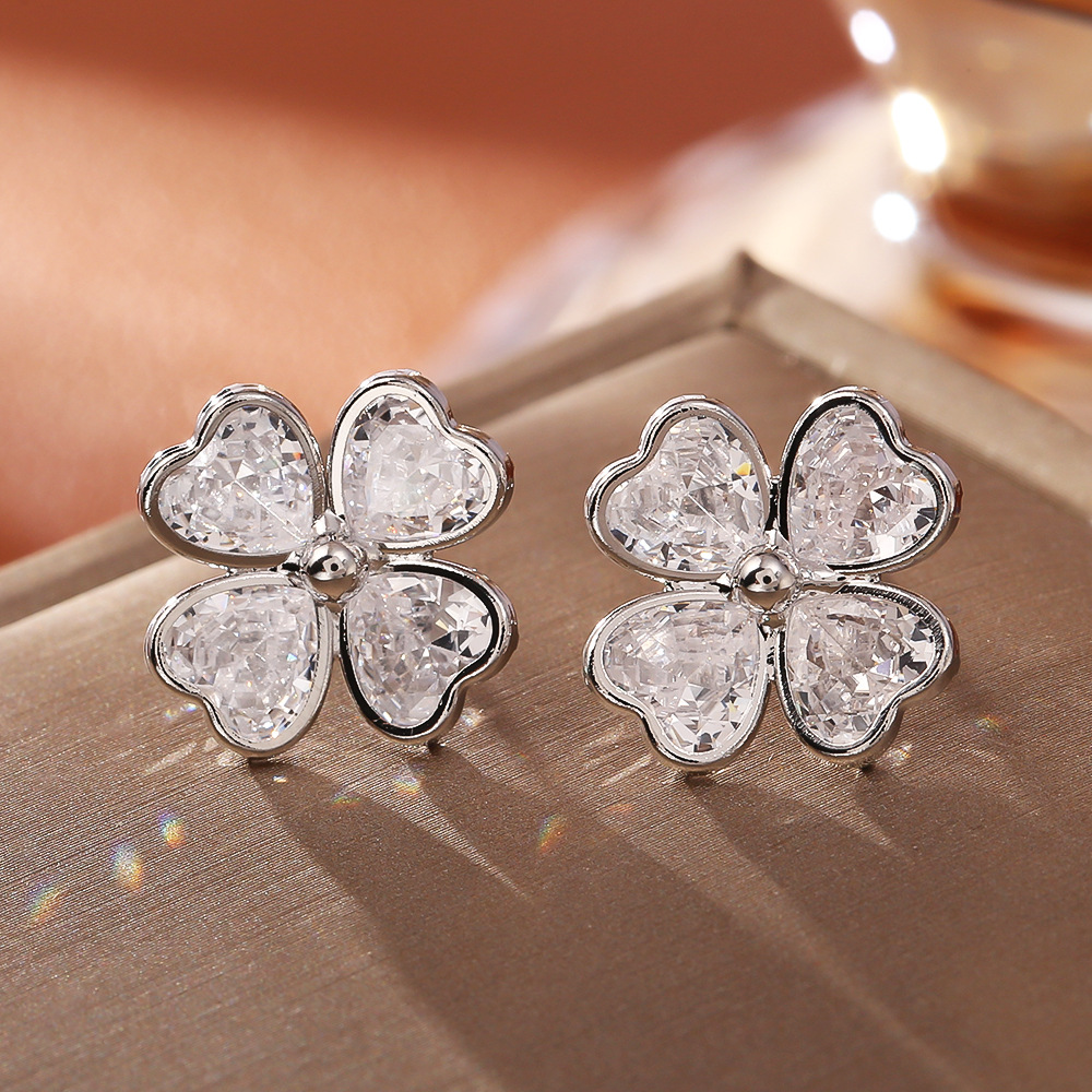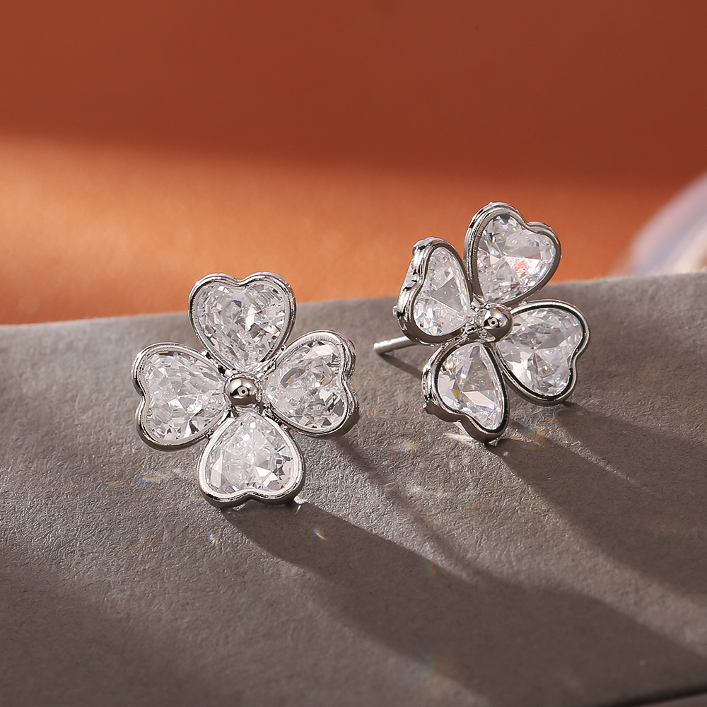 Cúbicos Circonia Pendiente Latón Micro pavimenta, metal, con cúbica circonia, Trébol de cuatro hojas, chapado, Joyería & para mujer, plateado, Vendido por Par