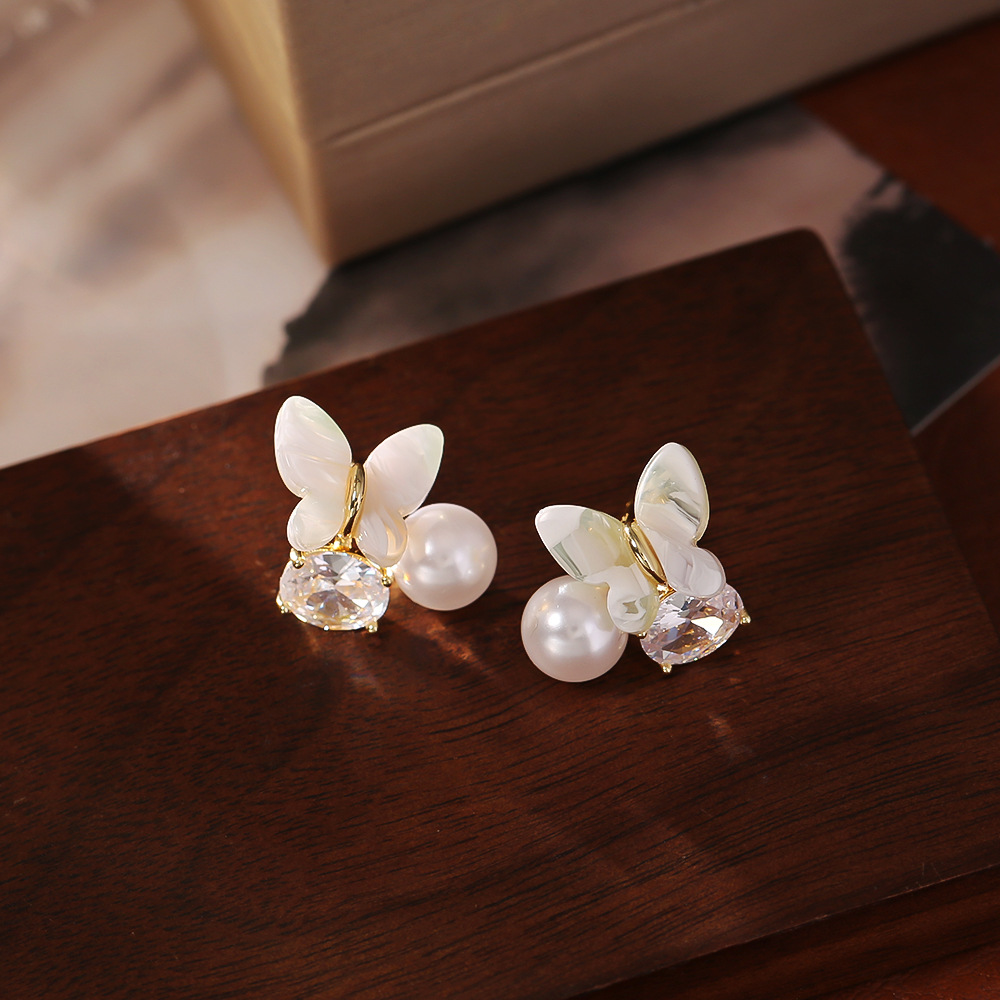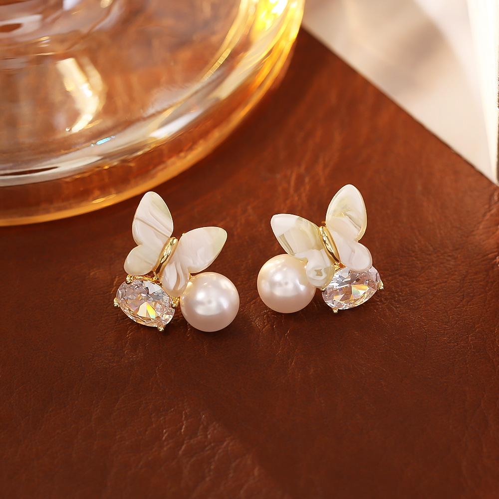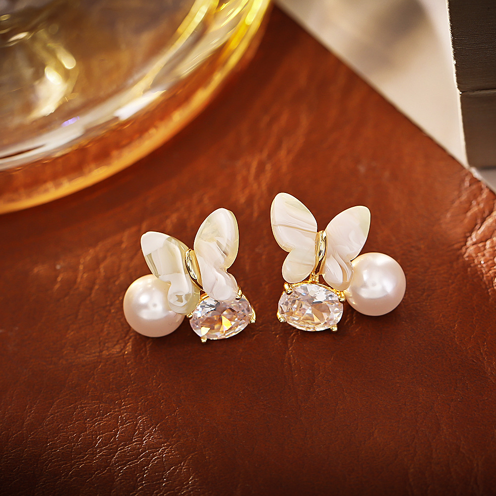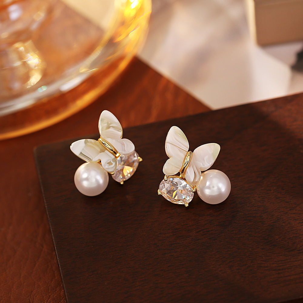 Cúbicos Circonia Pendiente Latón Micro pavimenta, metal, con Perlas plásticas, Mariposa, chapado en oro real, Joyería & micro arcilla de zirconia cúbica & para mujer, Vendido por Par