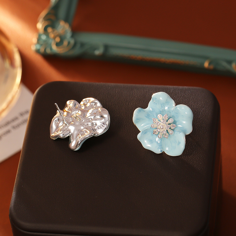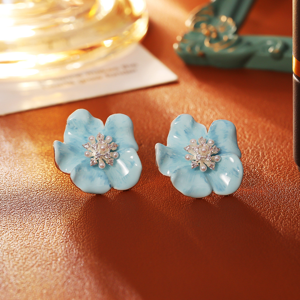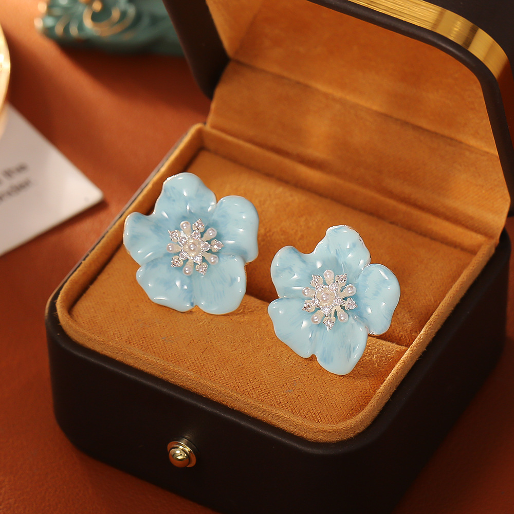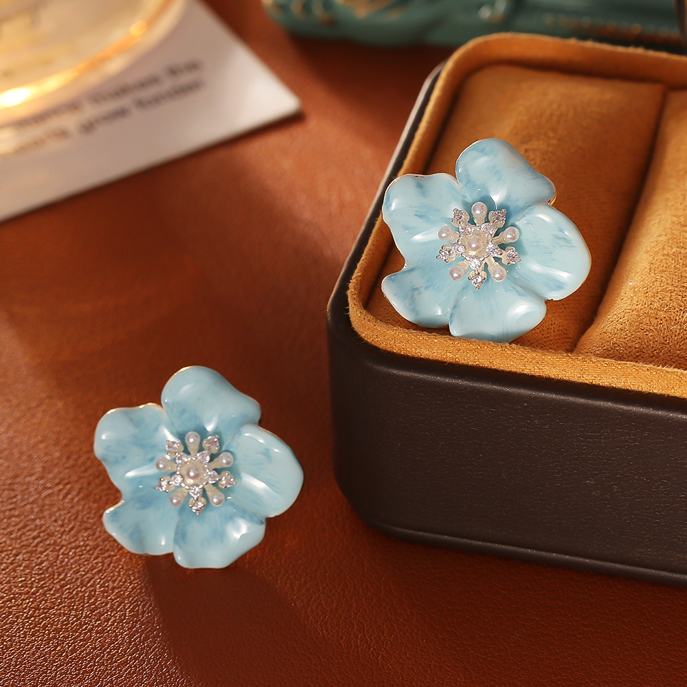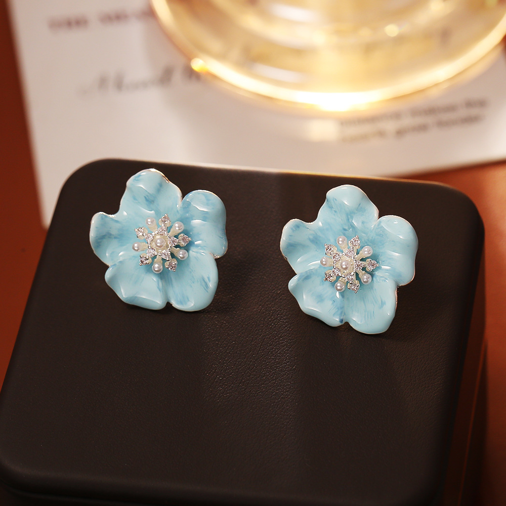 Cúbicos Circonia Pendiente Latón Micro pavimenta, metal, con Perlas plásticas, Flor, chapado, micro arcilla de zirconia cúbica & para mujer & esmalte, azul, Vendido por Par