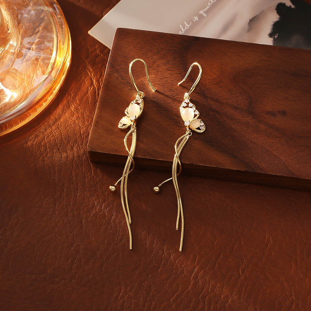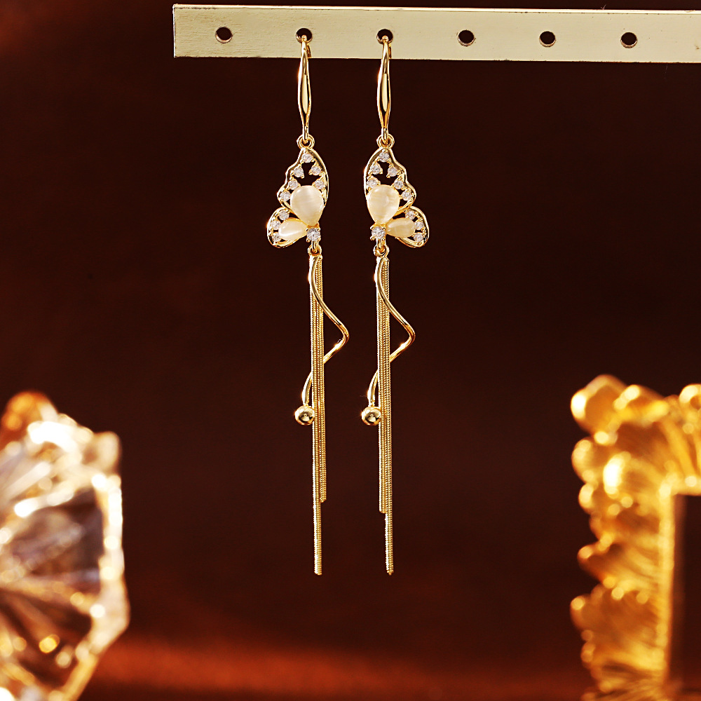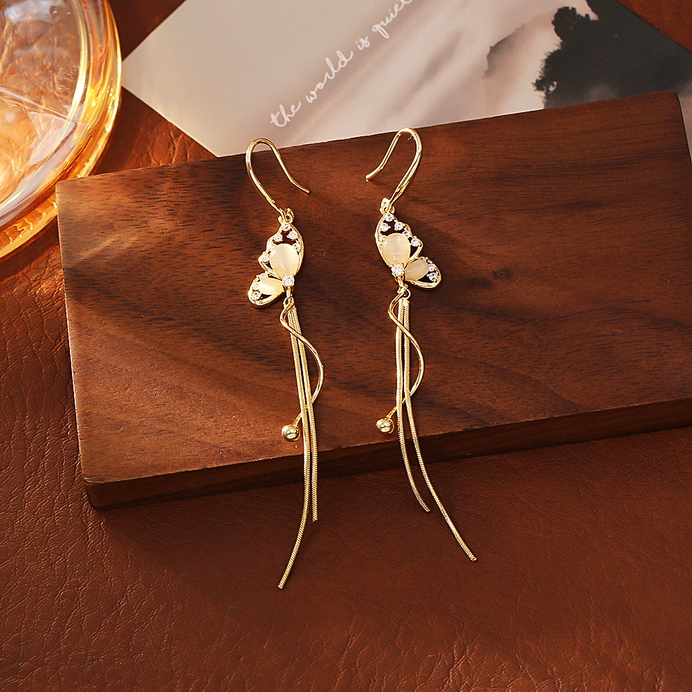 Cúbicos Circonia Pendiente Latón Micro pavimenta, metal, con Ojo de gato, chapado en oro real, Joyería & micro arcilla de zirconia cúbica & para mujer, Vendido por Par