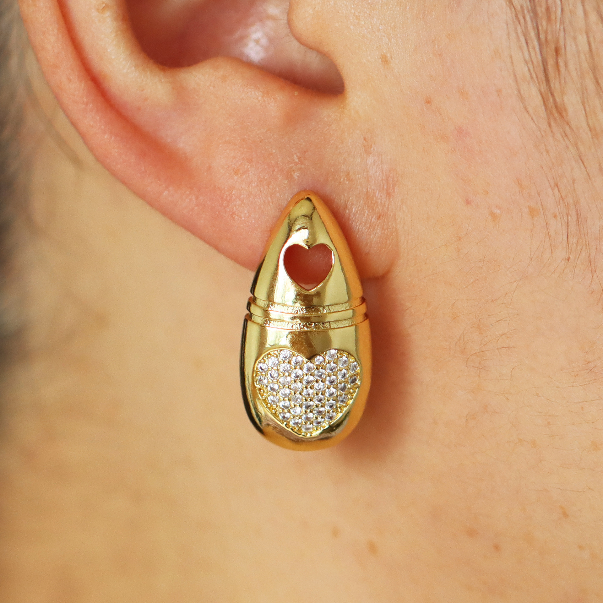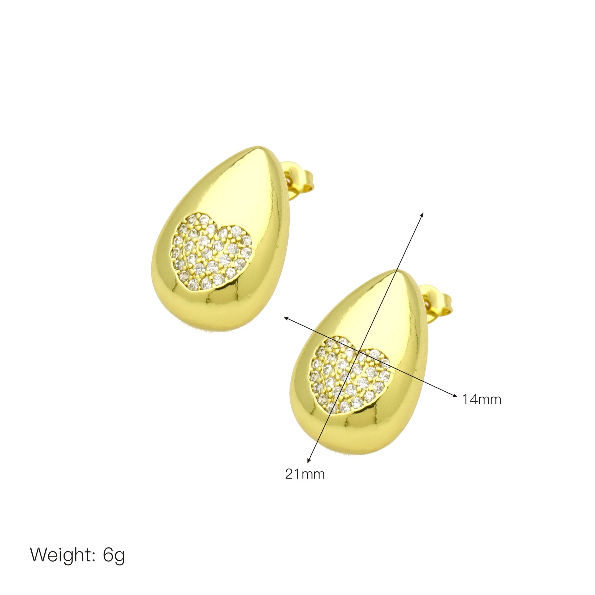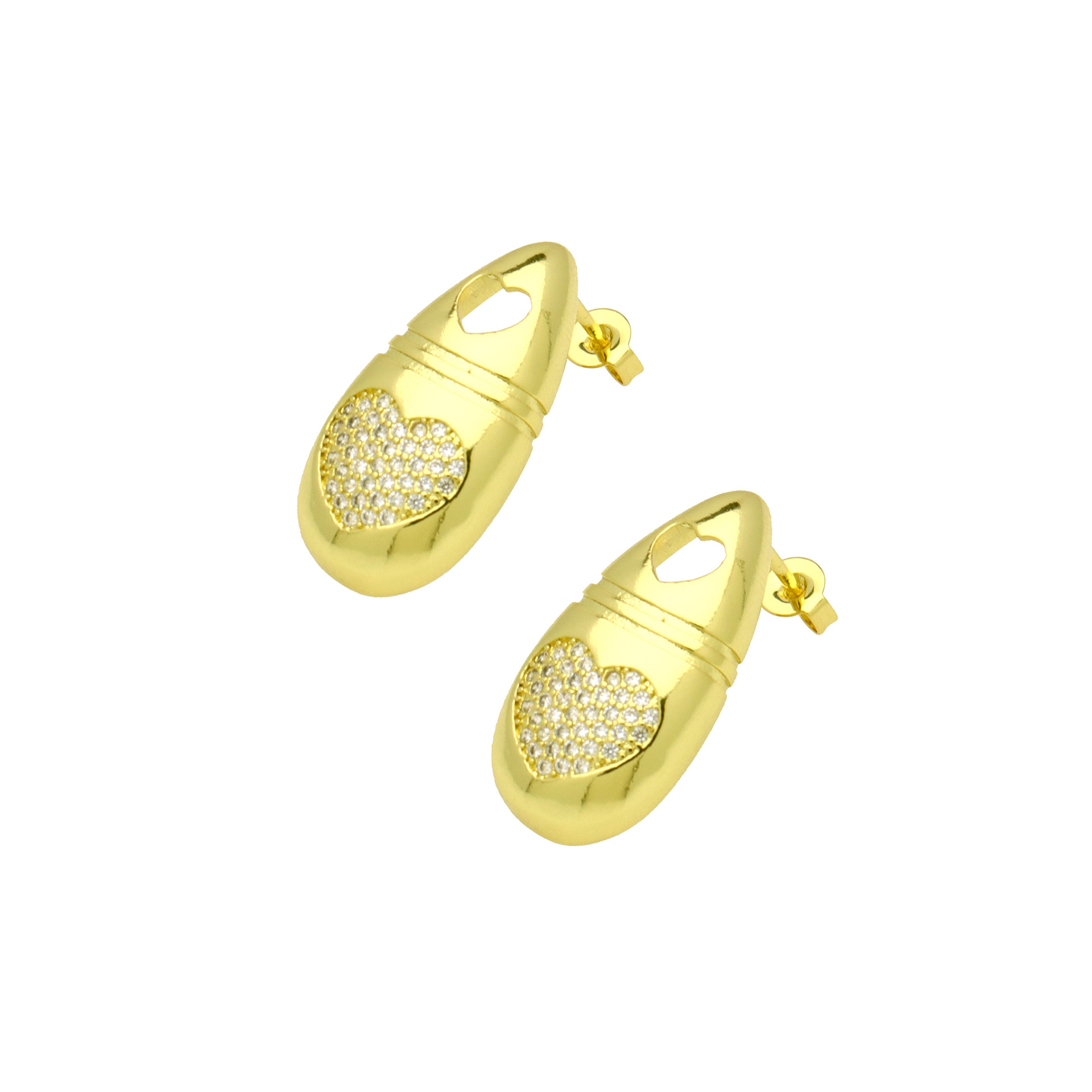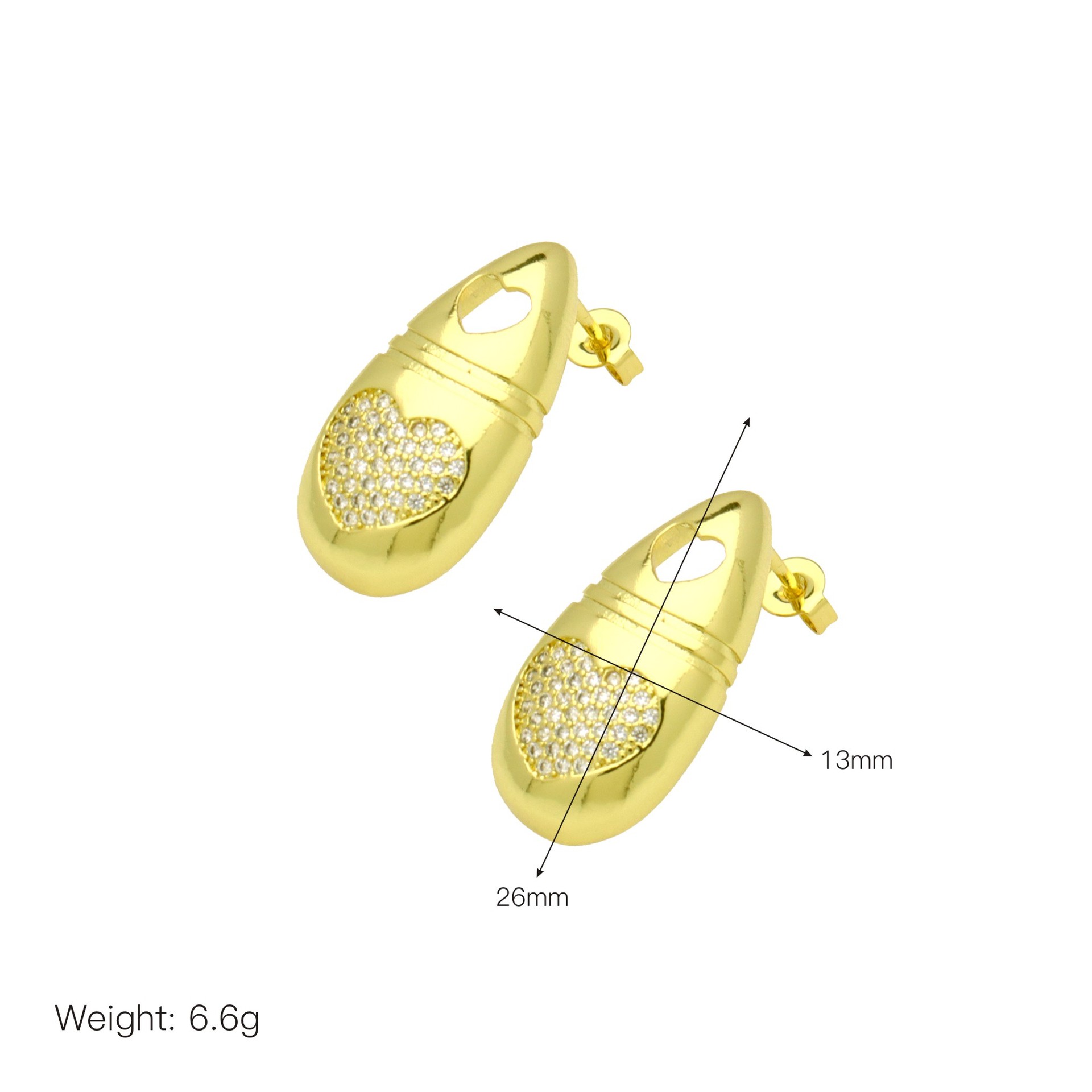 Cúbicos Circonia Pendiente Latón Micro pavimenta, metal, Corazón, chapado en color dorado, Joyería & micro arcilla de zirconia cúbica & para mujer & esmalte, más colores para la opción, libre de níquel, plomo & cadmio, 9x21mm, Vendido por Par